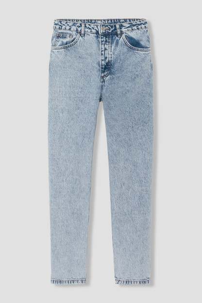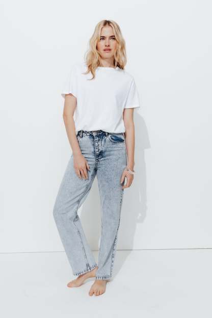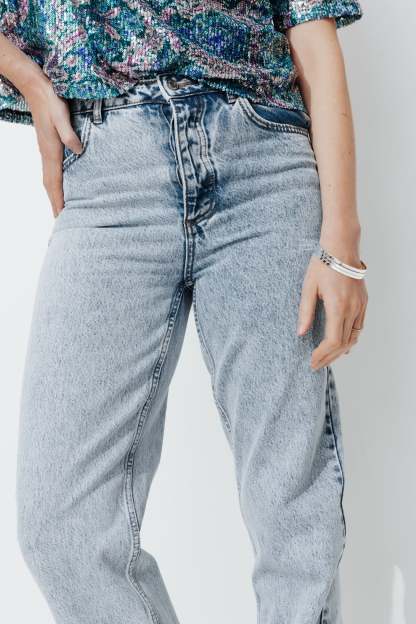 Le jean droit est un must-have, encore plus quand il est taille haute. Il nous suit partout et se prête à tous nos desiderata ! Denim authentique 100% Coton. Coupe droite et longueur standard. Prendre une taille au-dessus pour un look + boyfriend. Passants. Ouverture par bouton clou et zip métal. Rivets métal. 5 poches. Effet délavé et usé par endroit. Ce jean femme contient du coton recyclé.