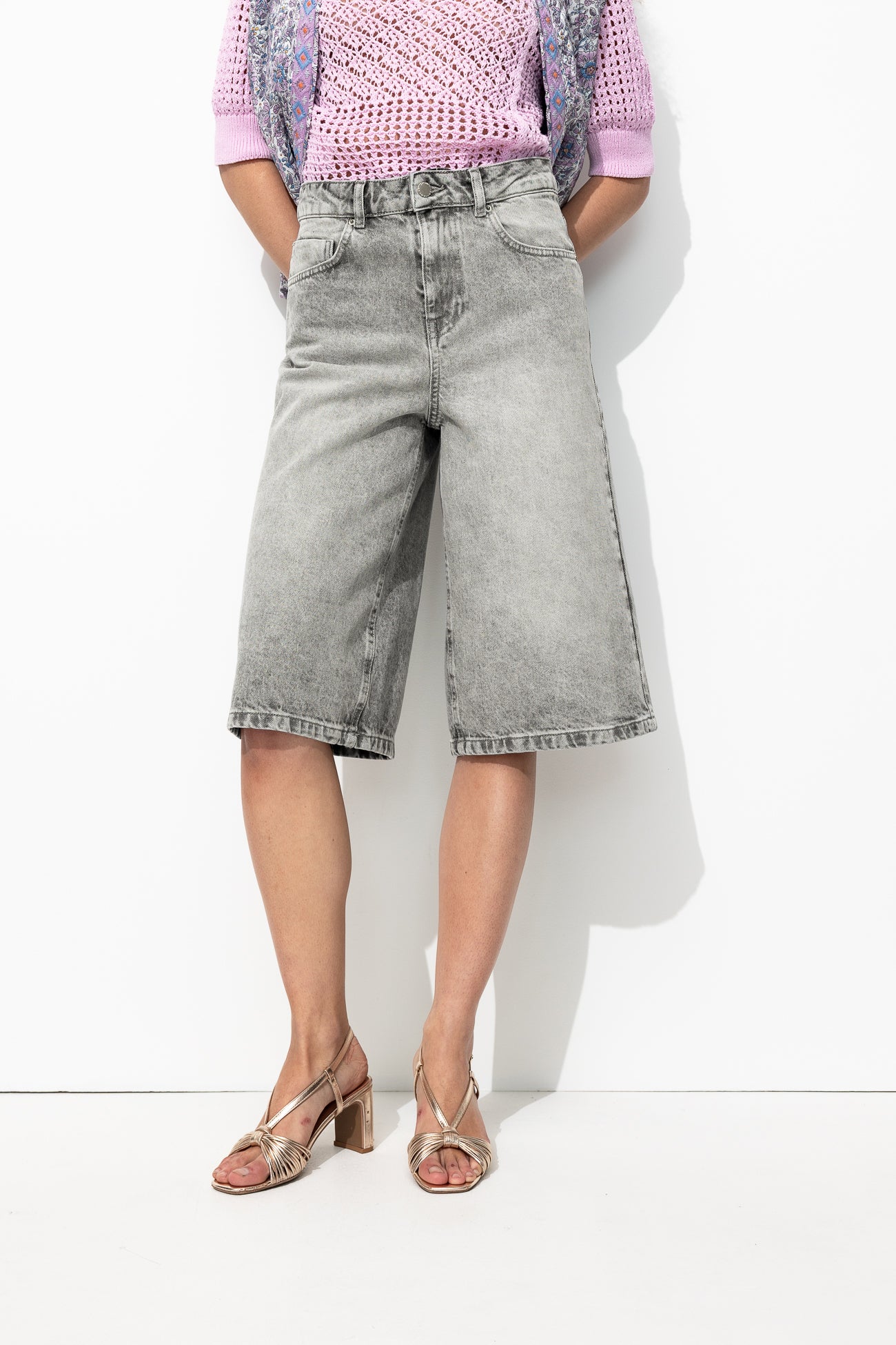 Mix entre le bermuda et la jupe-culotte... ce modèle est LA grande tendance à suivre ce printemps-été ! On l'urbanise avec des baskets. On l'upgrade avec des talons hauts. On l'emmène en vacances avec des sandales. Denim 100% coton épais et doux. Taille haute. Passants. Ouverture par bouton clou et zip métal. Rivets. 5 poches. Coutures contrastées. Ce bermuda femme contient du coton recyclé.