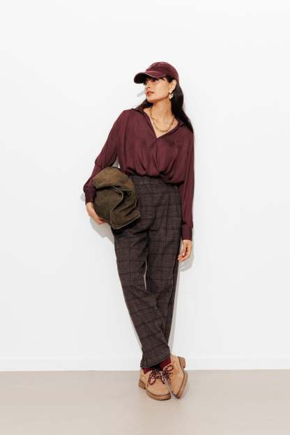 Effet cache-coeur & toucher soyeux... le romantisme monte d'un cran avec cette blouse unie. A aimer avec un jean ou un pantalon de tailleur. A réchauffer avec une veste à carreaux ou un long manteau. Coupe droite. Col à revers. Décolleté V. Manches longues, poignets boutonnés. Base droite devant. Base plus longue et arrondie dans le dos. Cette chemise femme contient des fibres recyclées.