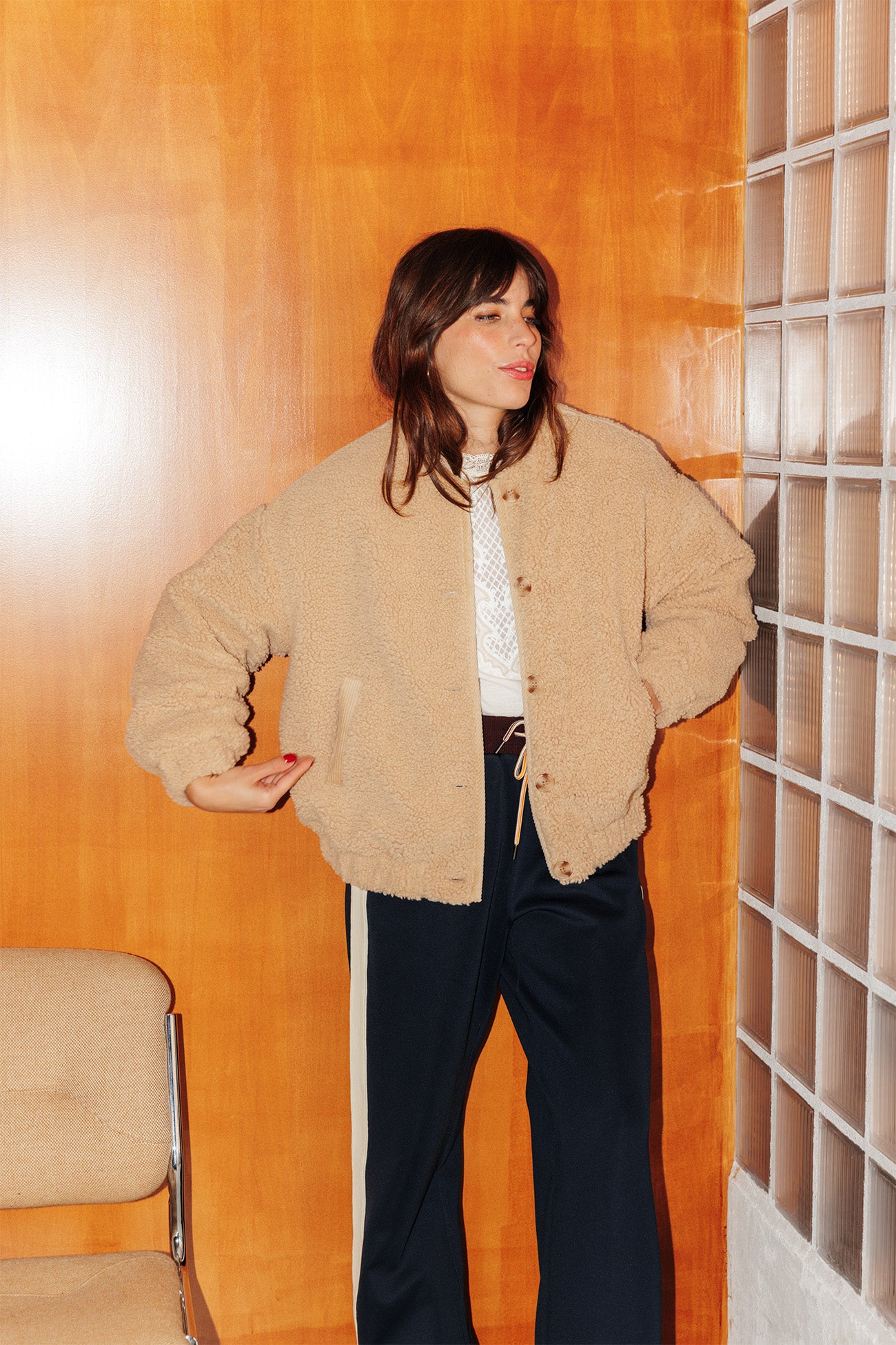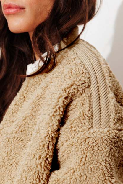 Moumoute bien chaude à l'extérieur, tissu matelassé tout doux à l'intérieur... on vous le dit tout de go, ce blouson oversize est le manteau doudou parfait pour l'automne-hiver ! Col rond côtelé. Ouverture boutonnée. Emmanchures descendues. Manches longues. Poignets élastiqués. 2 poches. Empiècements côtelés ton sur ton en détail. Base élastiquée. Ce manteau femme contient des fibres recyclées.