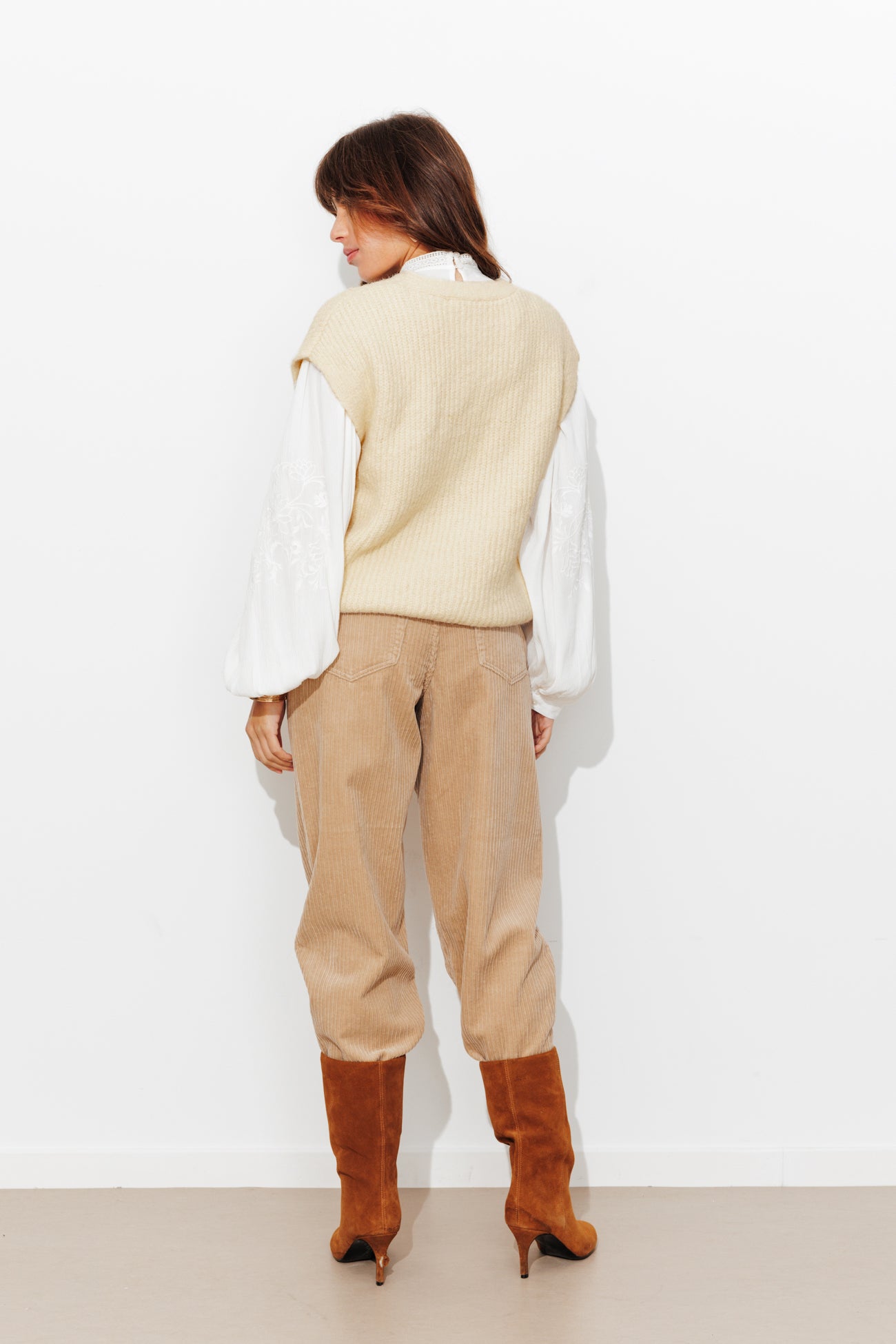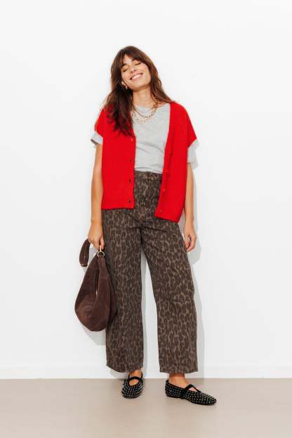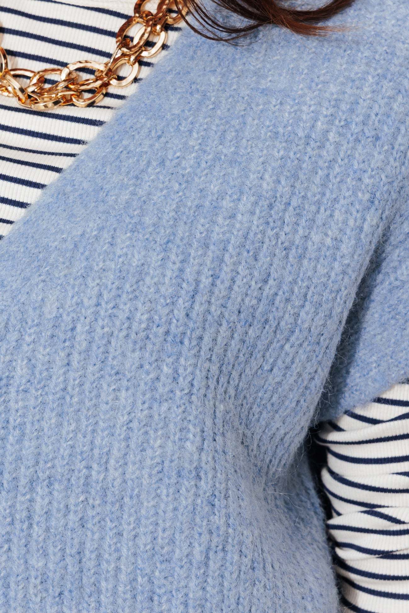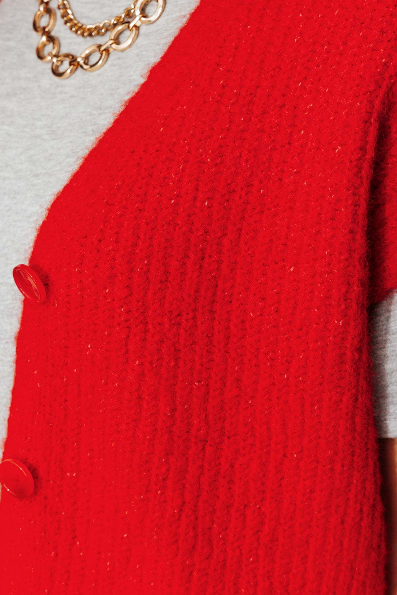 On a tout intérêt à se faire du bien, à avoir chaud et ajouter une dose de cocoon dans nos journées automne-hiver... c'est bon pour tout : le style & le moral ! Démonstration avec ce cardigan sans manches super moelleux ! Maille côtelée et fluffy enrichie en laine. Coupe oversize. Col V. Ouverture boutonnée. Emmanchures américaines. Base droite. Ce gilet femme contient des fibres recyclées.