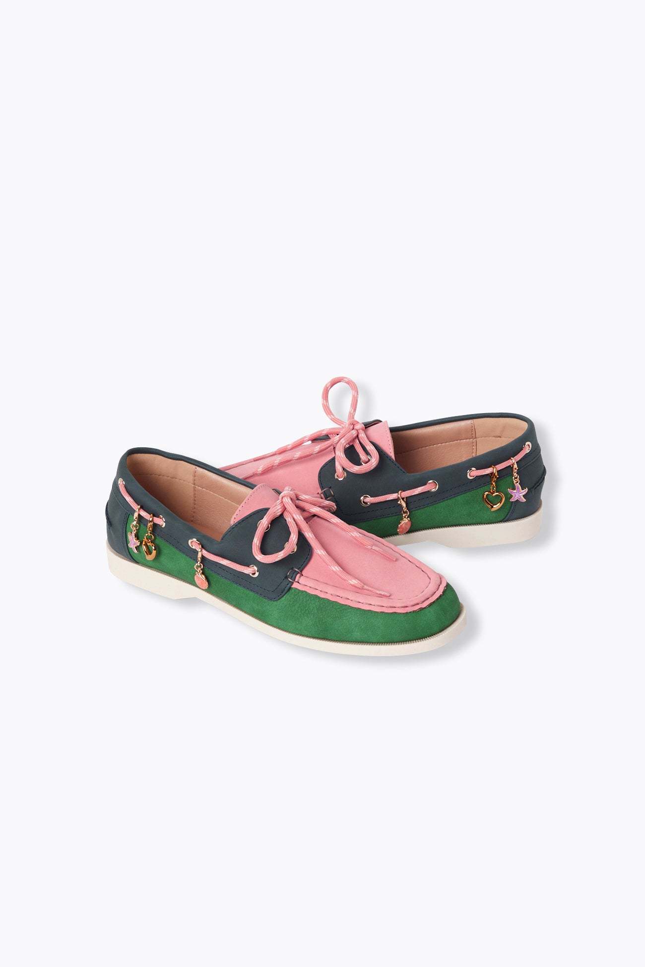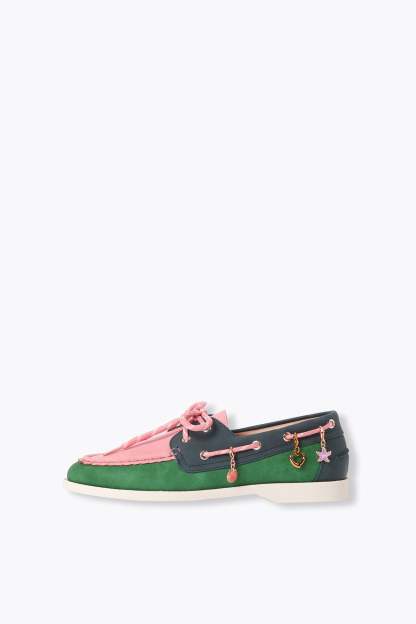 Icône du vestiaire des marins soucieux de ne pas glisser sur le pont de leur navire... le mocassin bateau se fait une place de plus grande dans les dressings féminins. Elles prennent ici des couleurs et se laissent twister par des breloques "charm's" amovibles (fermoir métal). Lacets ronds. Bout rond. Semelle intérieure moussée pour plus de confort à la marche. Belle idée-cadeau.