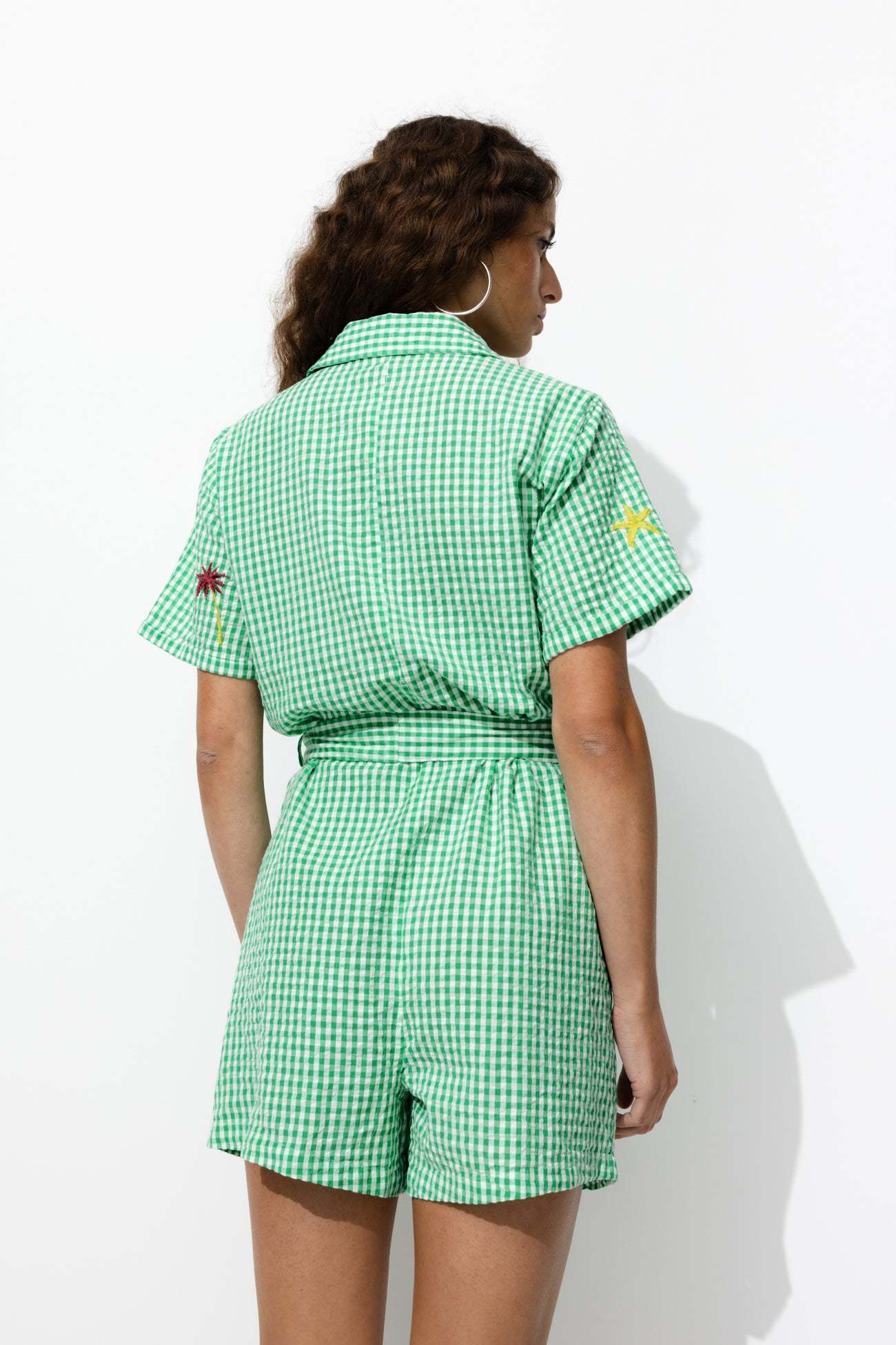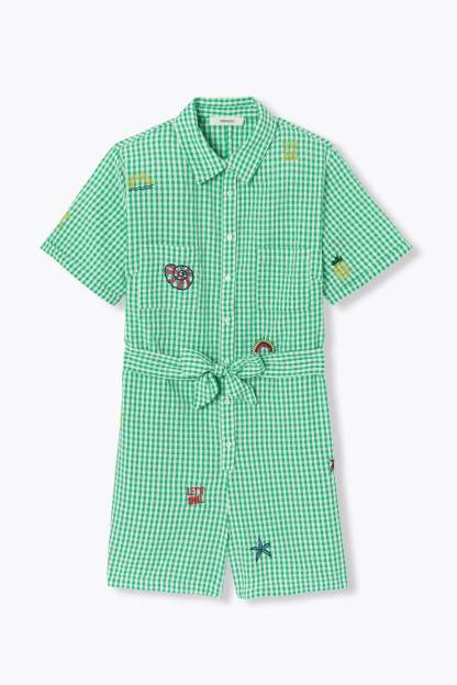 Combishort à carreaux brodés
