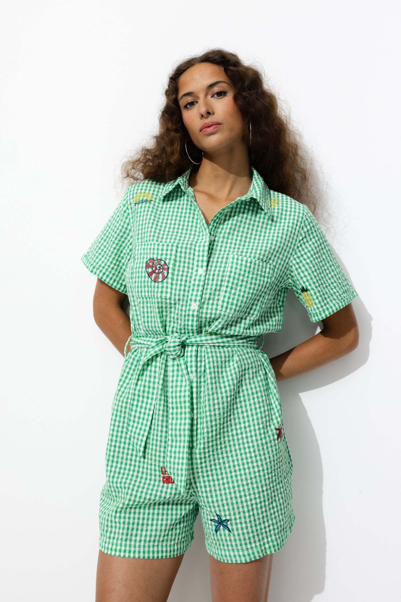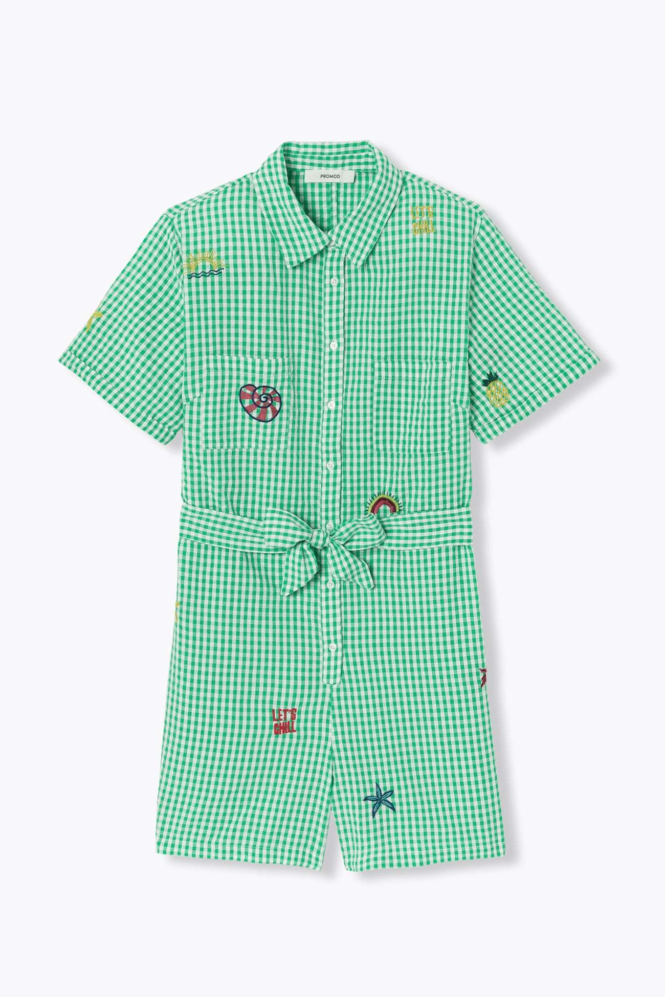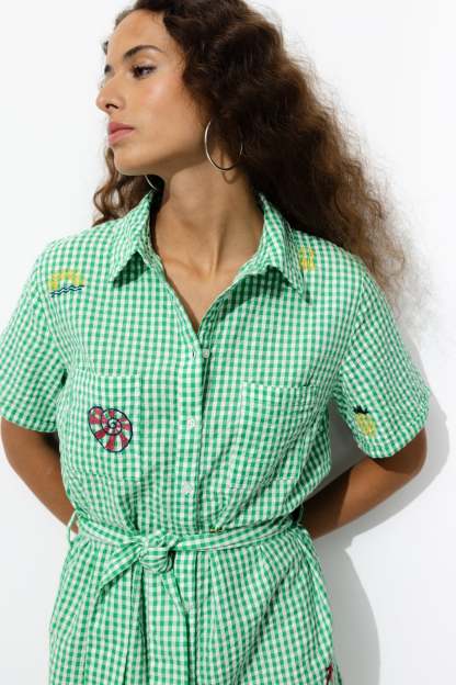 Chaque broderie est une raison supplémentaire de cliquer ! La cotonnade gaufrée est douce. Coupe oversize. Carreaux en fils teints. Col chemise. Ouverture boutonnée devant. 2 poches poitrine. Manches courtes. Ceinture à nouer (amovible). Cette combi femme contient du coton issu de l'agriculture biologique, cultivé sans pesticides, ni engrais chimiques, ni OGM afin de préserver la biodiversité.