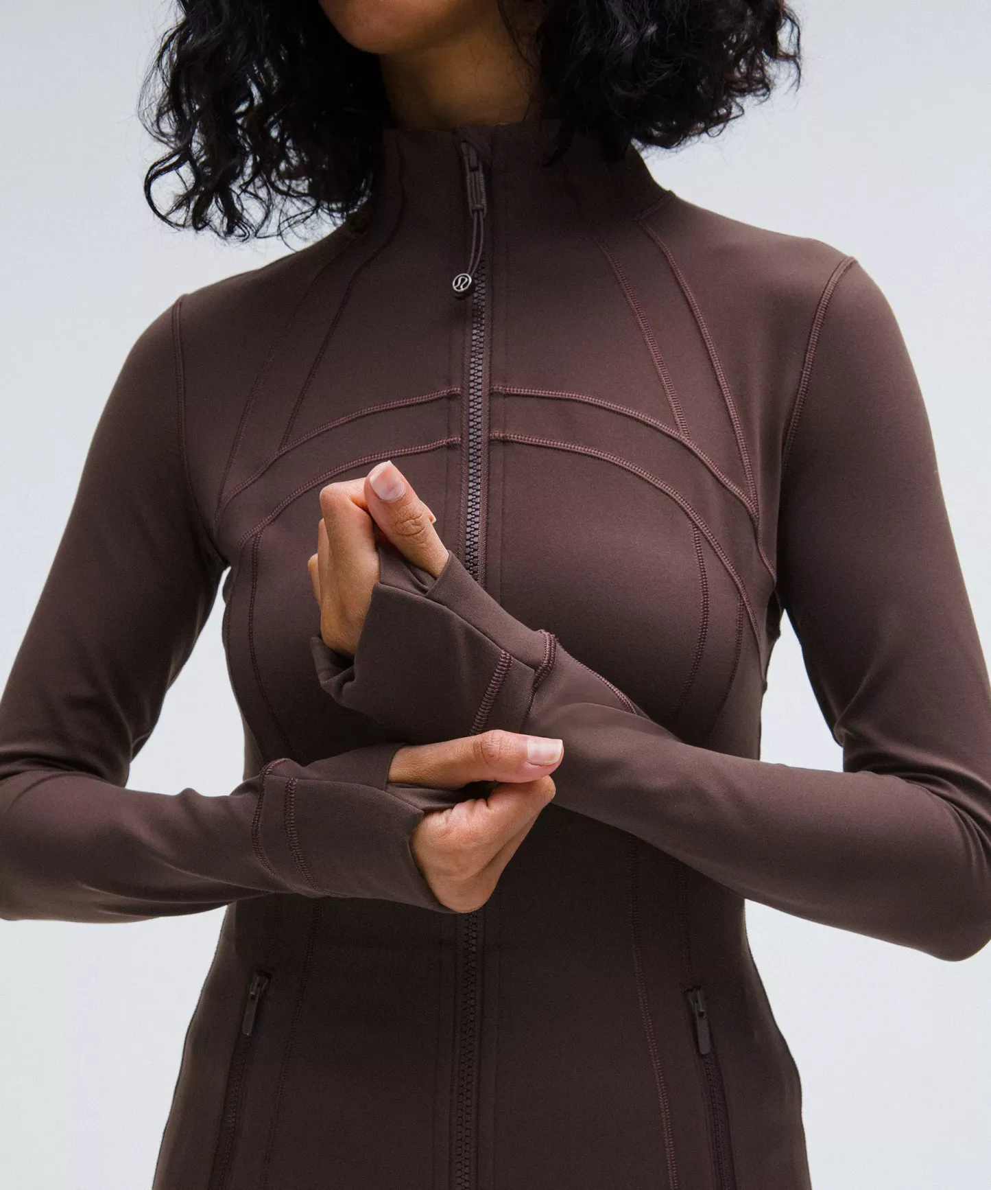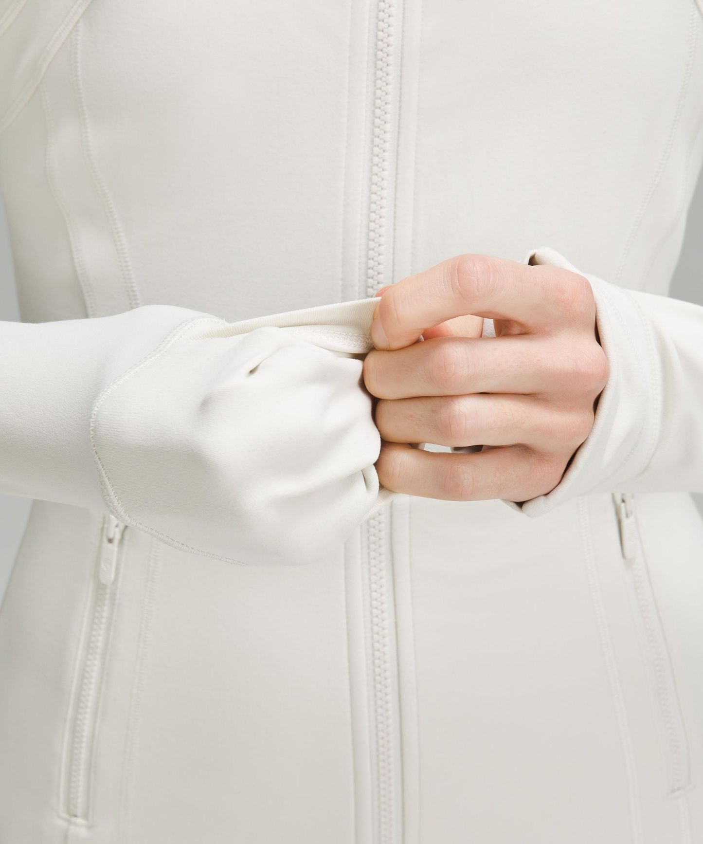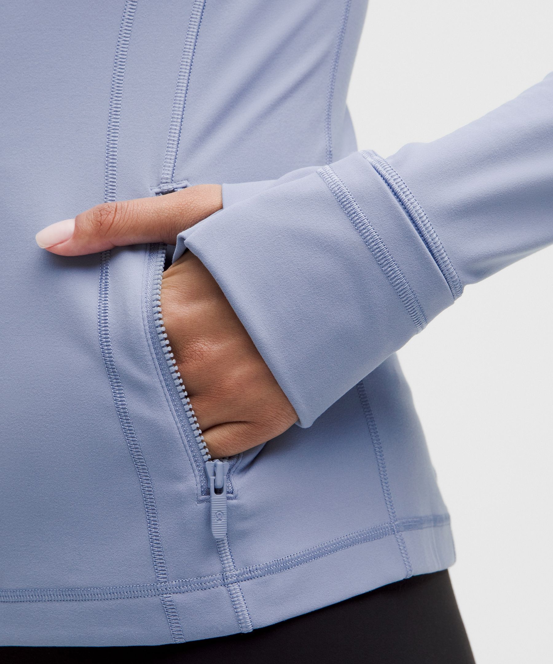 - Elastic zipper pull doubles as an emergency hair tie