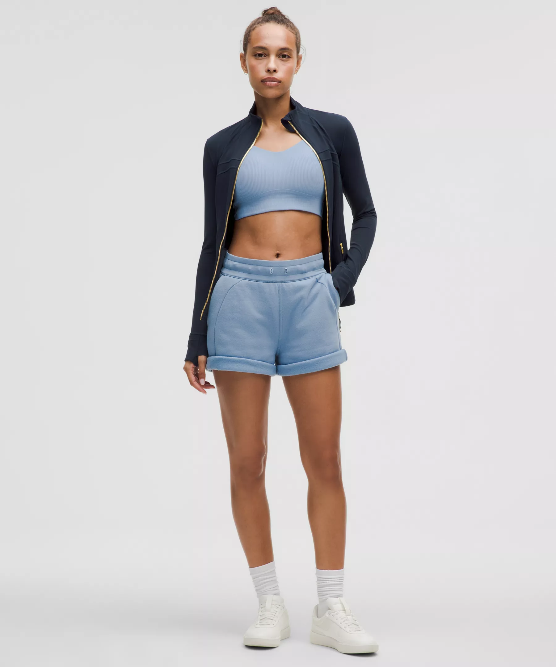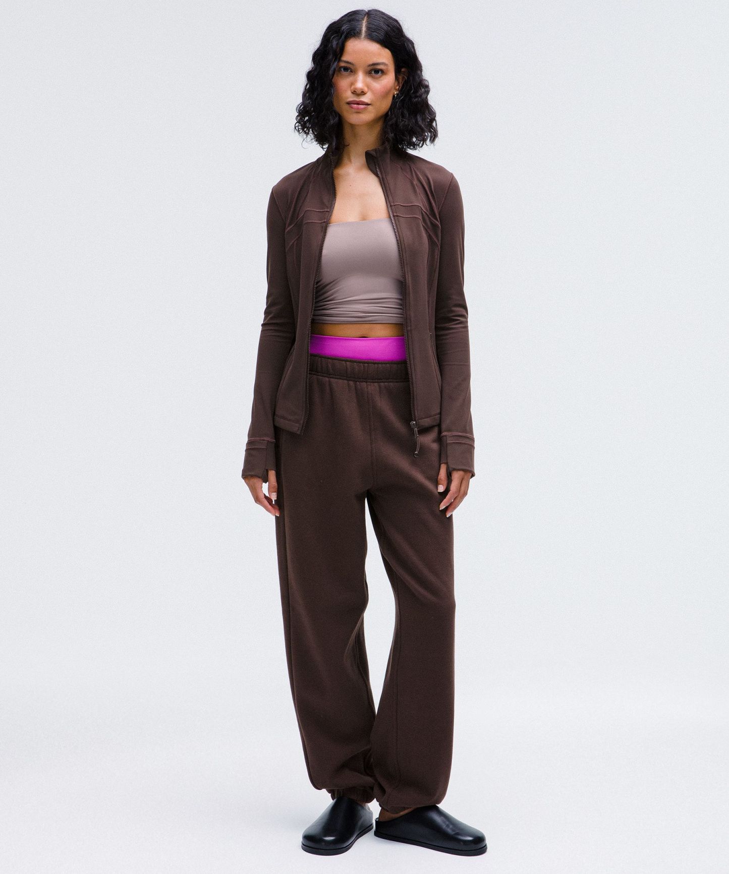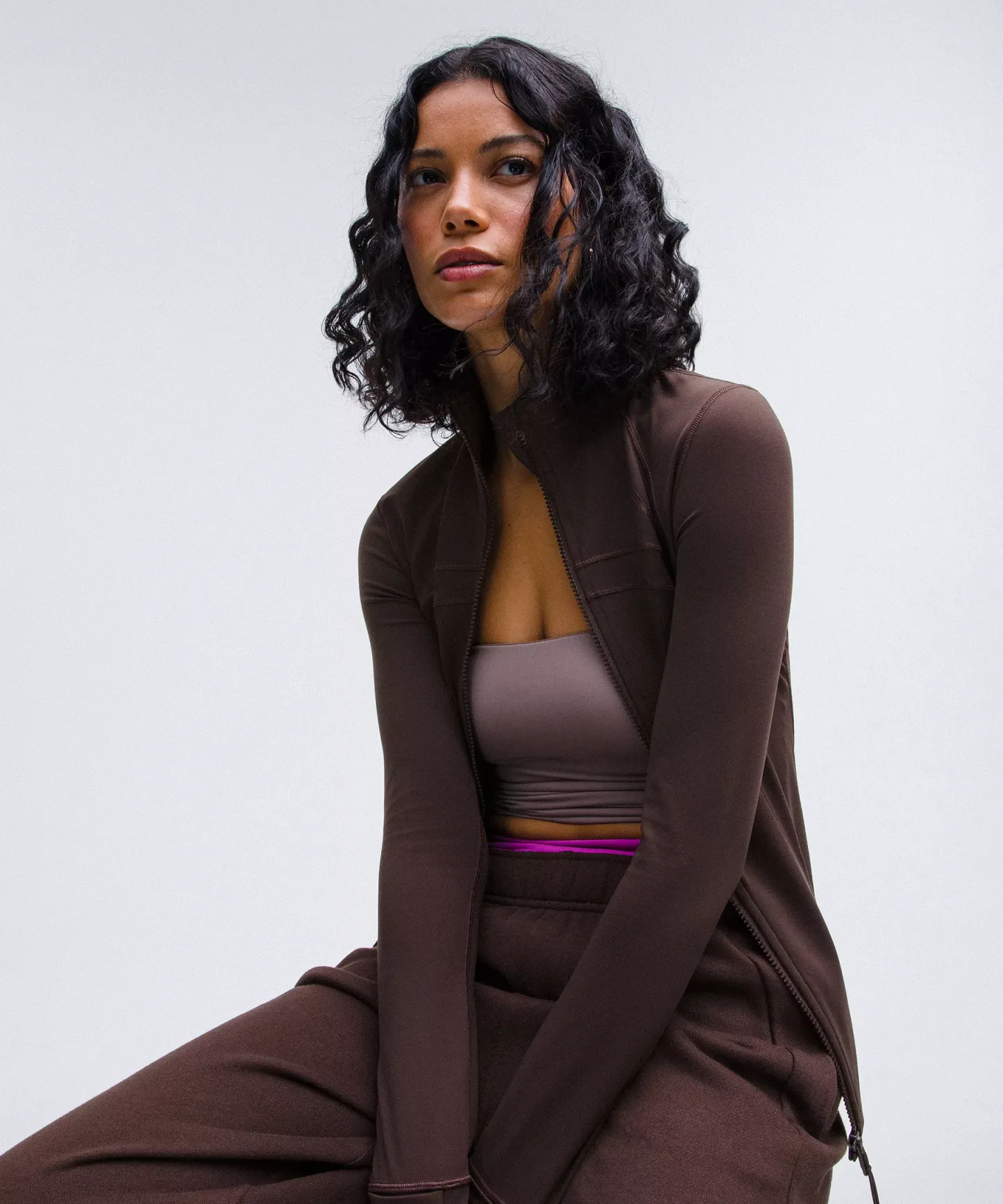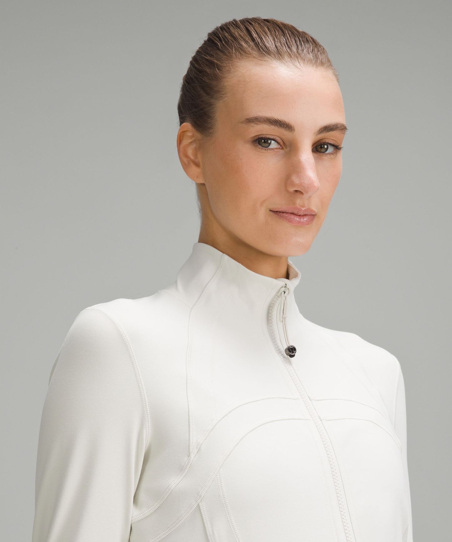 - Elastic zipper pull doubles as an emergency hair tie