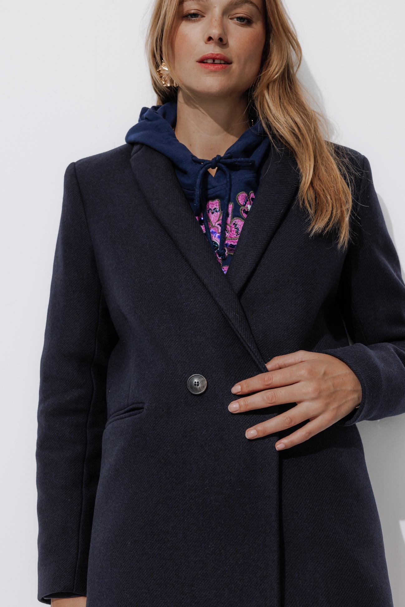 dont principale 30% laine recyclée, doublure 40% polyester recyclé, doublure manches 45% polyester recyclé