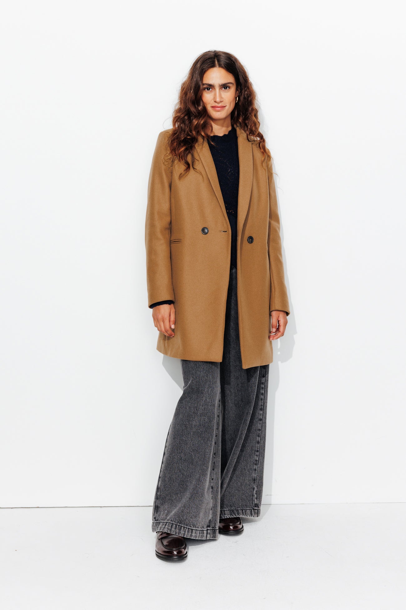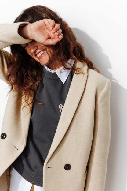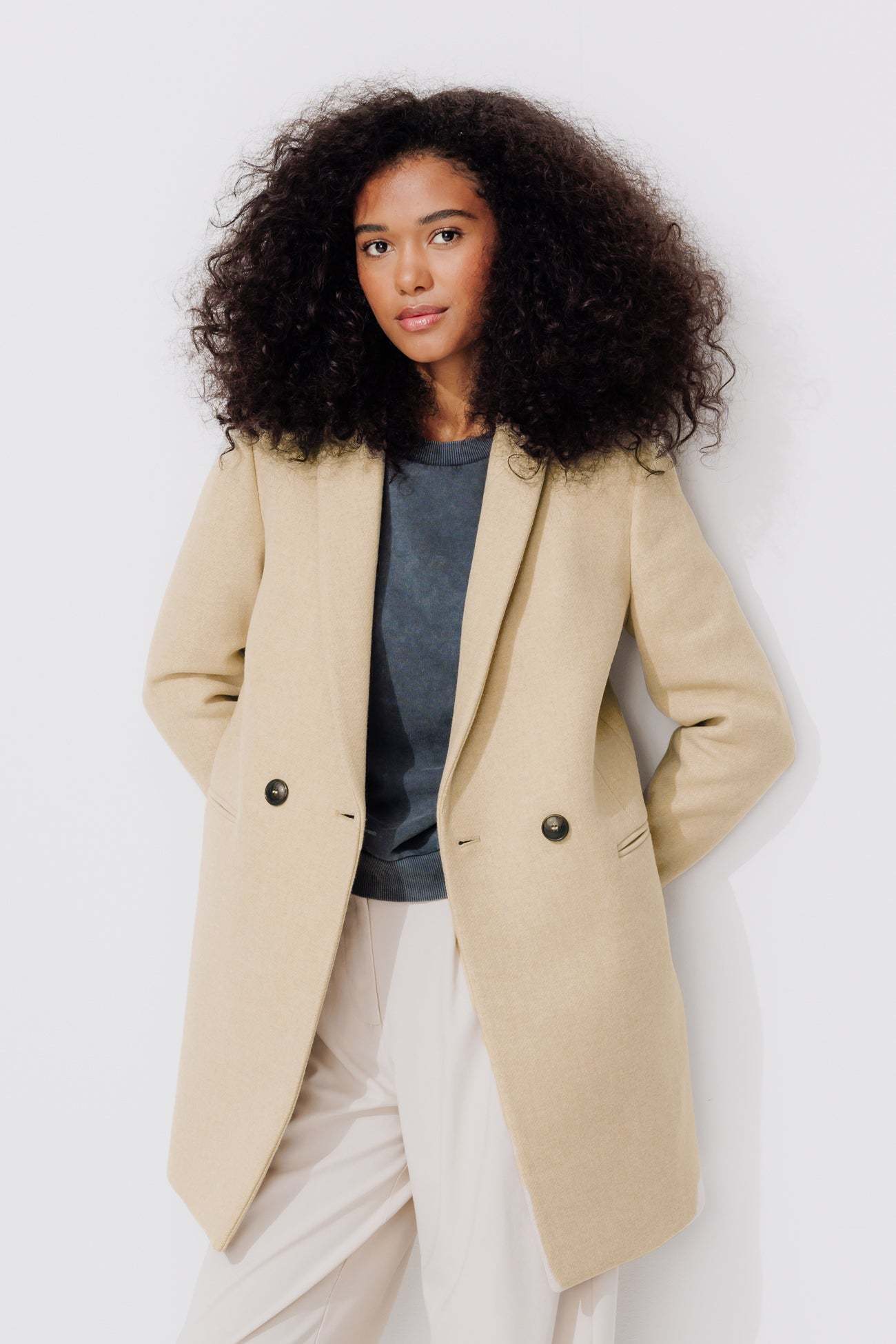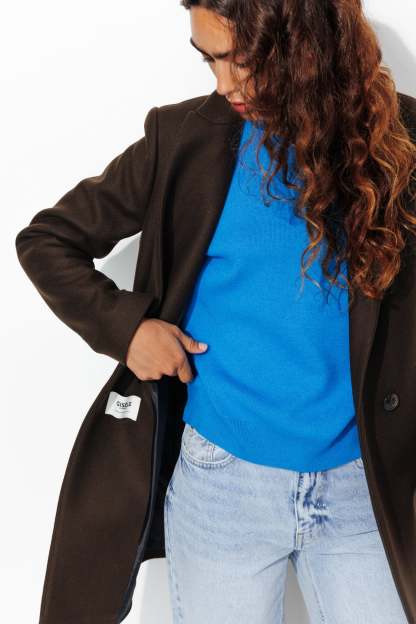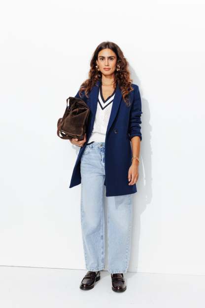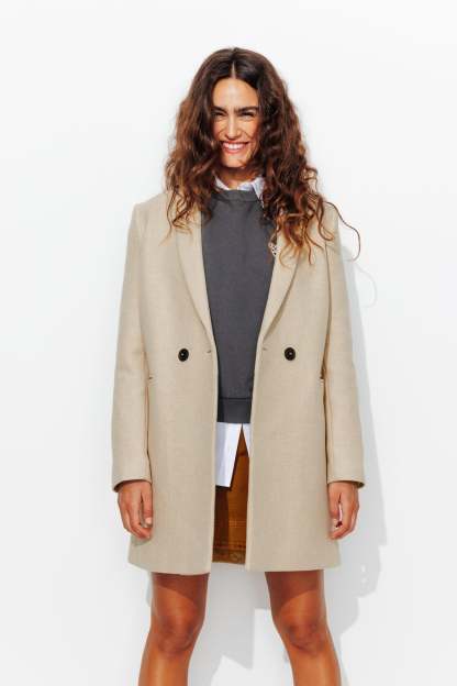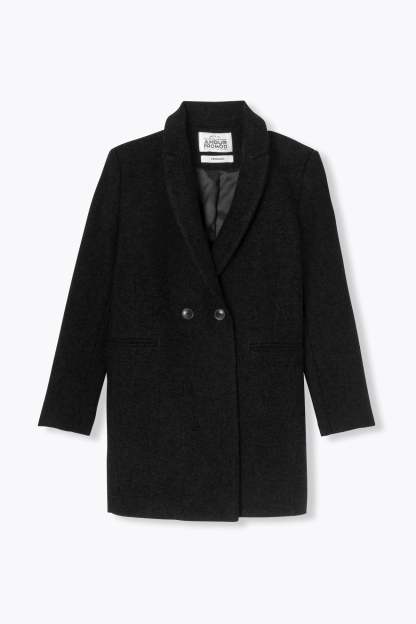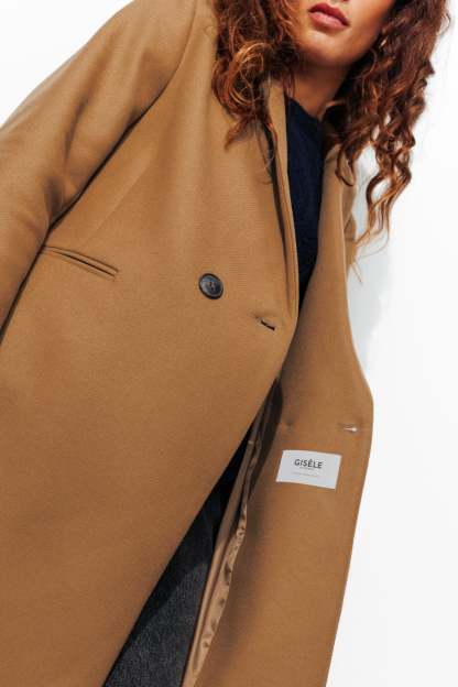 COLLECTION ICONIQUE (griffe collector). GISELE c'est un manteau en laine mélangée, must-have du vestiaire automne-hiver, toutes générations confondues ! On aime son allure urbaine. On le choisit ajusté ou surtaillé. Coupe droite. Col tailleur. Fermeture croisée, double boutonnage. 2 poches. Epaulettes. Manches longues. Fente d'aisance. Ce manteau femme contient des fibres et de la laine recyclées.