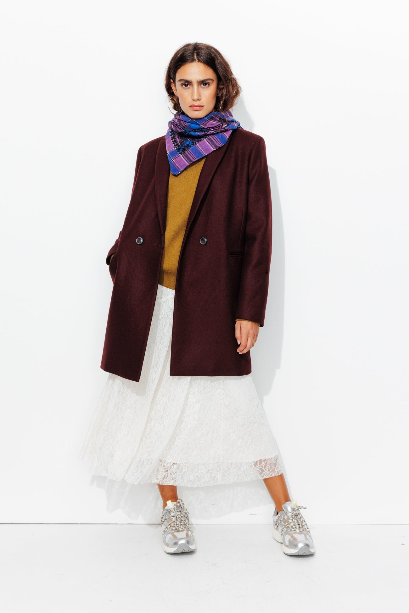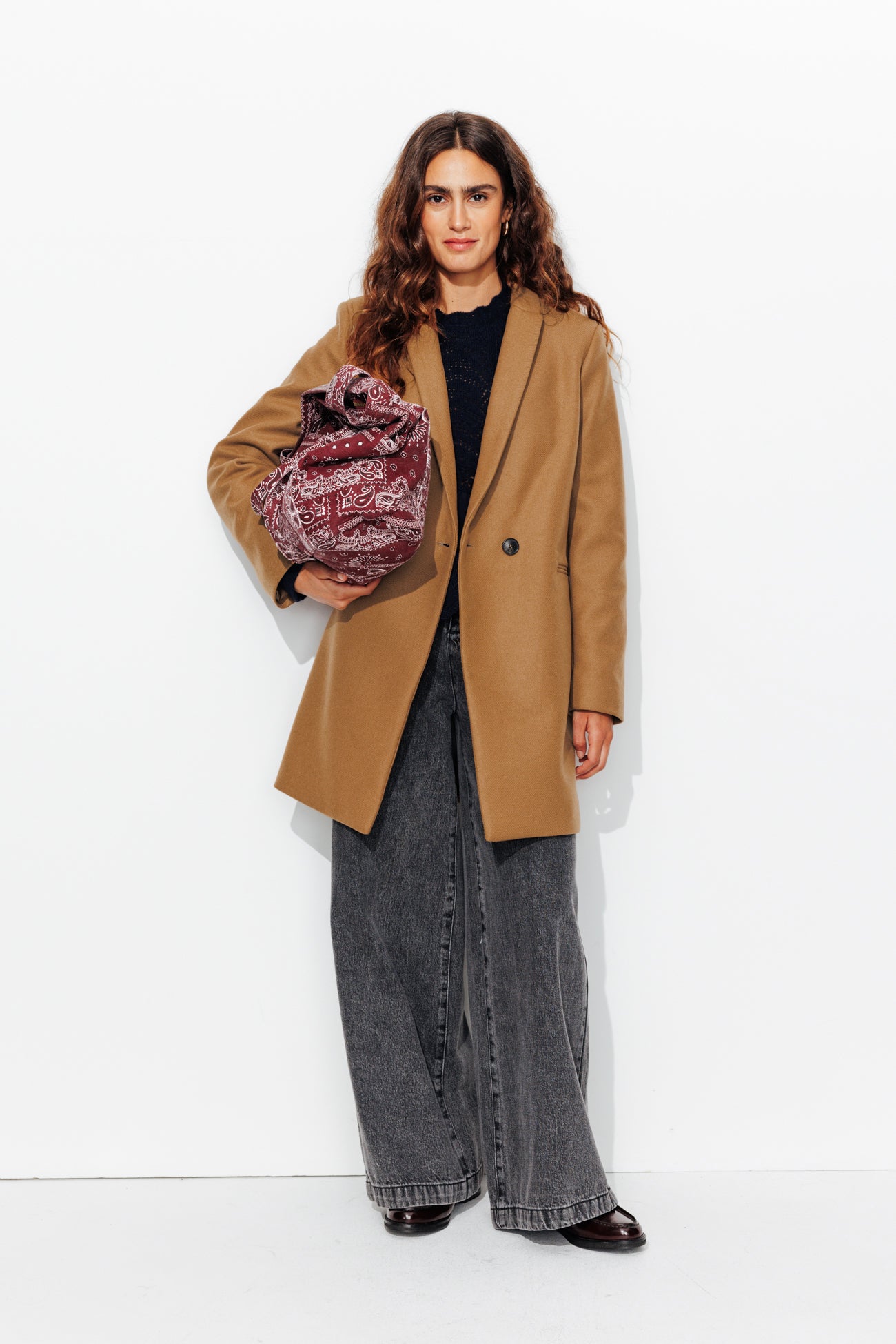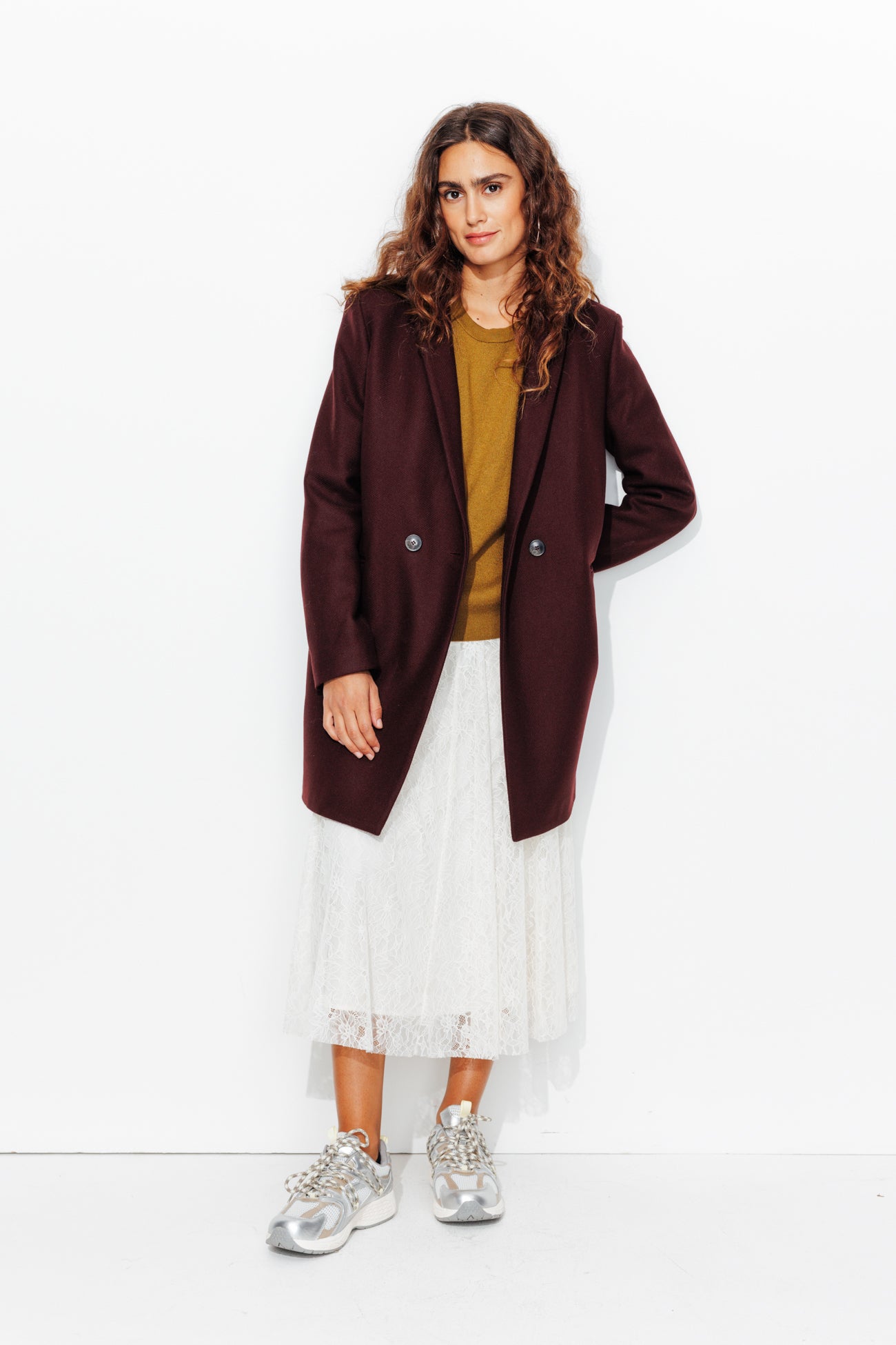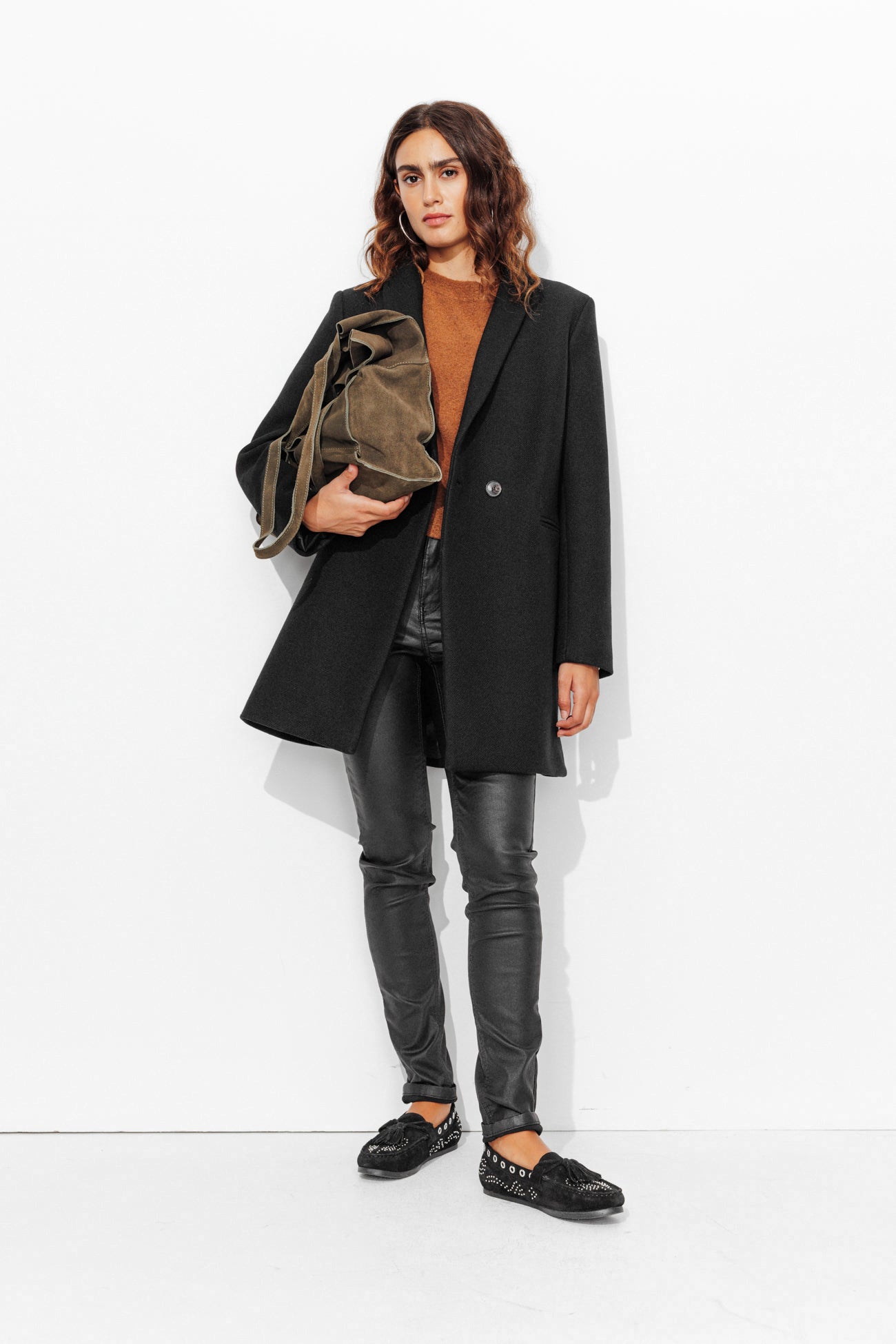 COLLECTION ICONIQUE (griffe collector). GISELE c'est un manteau en laine mélangée, must-have du vestiaire automne-hiver, toutes générations confondues ! On aime son allure urbaine. On le choisit ajusté ou surtaillé. Coupe droite. Col tailleur. Fermeture croisée, double boutonnage. 2 poches. Epaulettes. Manches longues. Fente d'aisance. Ce manteau femme contient des fibres et de la laine recyclées.