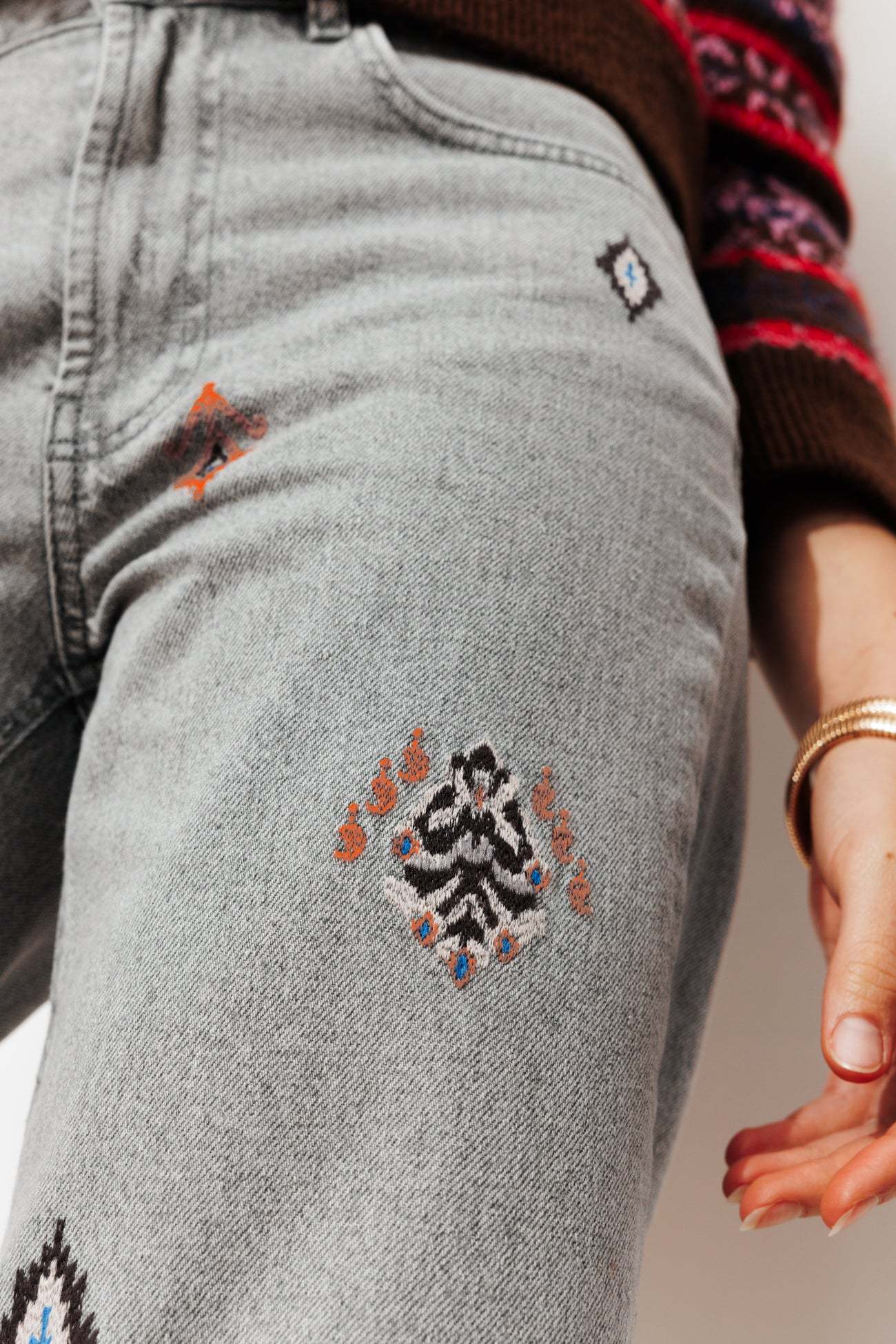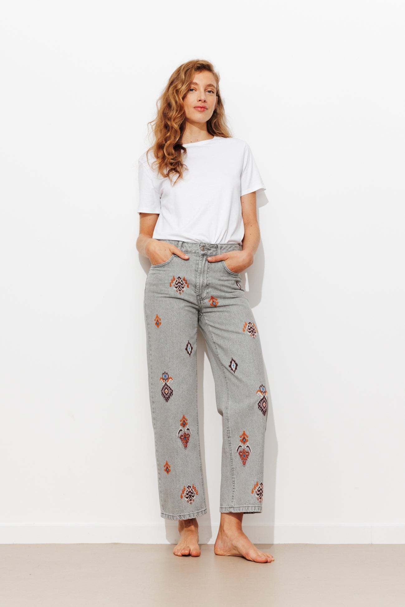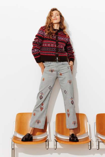 Jean droit brodé Femme