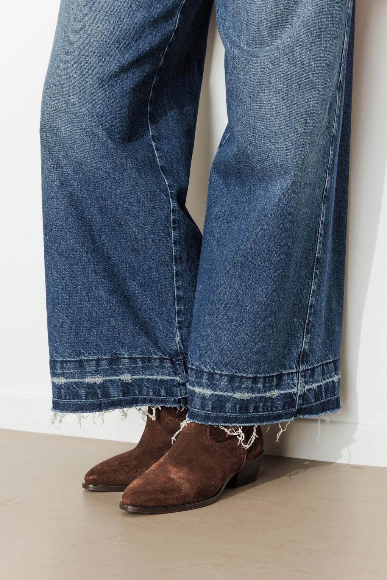 Dégaine workwear, avec son ourlet défait délavé. Pile dans l'air du temps, ce jean très large se porte loose sur les hanches ou ceinturé. Denim délavé, doux et épais. Coupe extra-large. Ouverture par bouton clou et zip métal. Passants. 4 poches. Bas de jambes à ourlet décousus (peut être raccourci facilement). Ce jean femme contient du coton recyclé et du coton issu de l'agriculture biologique.