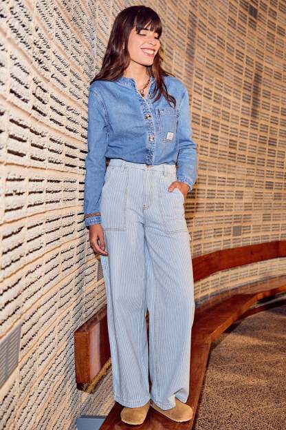 Jean large rayé Femme