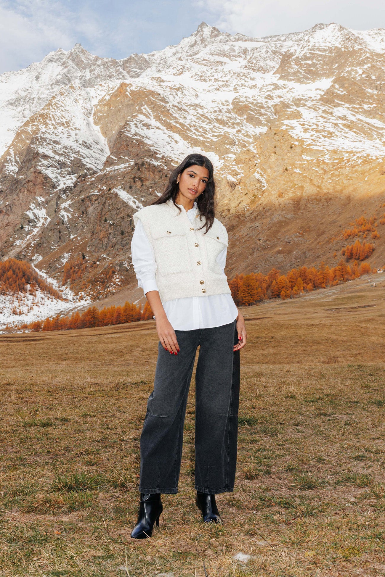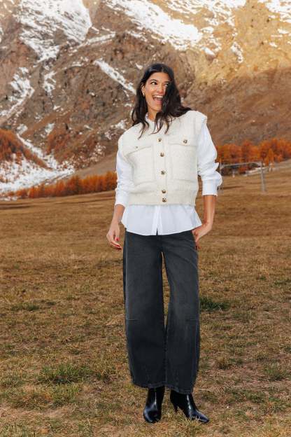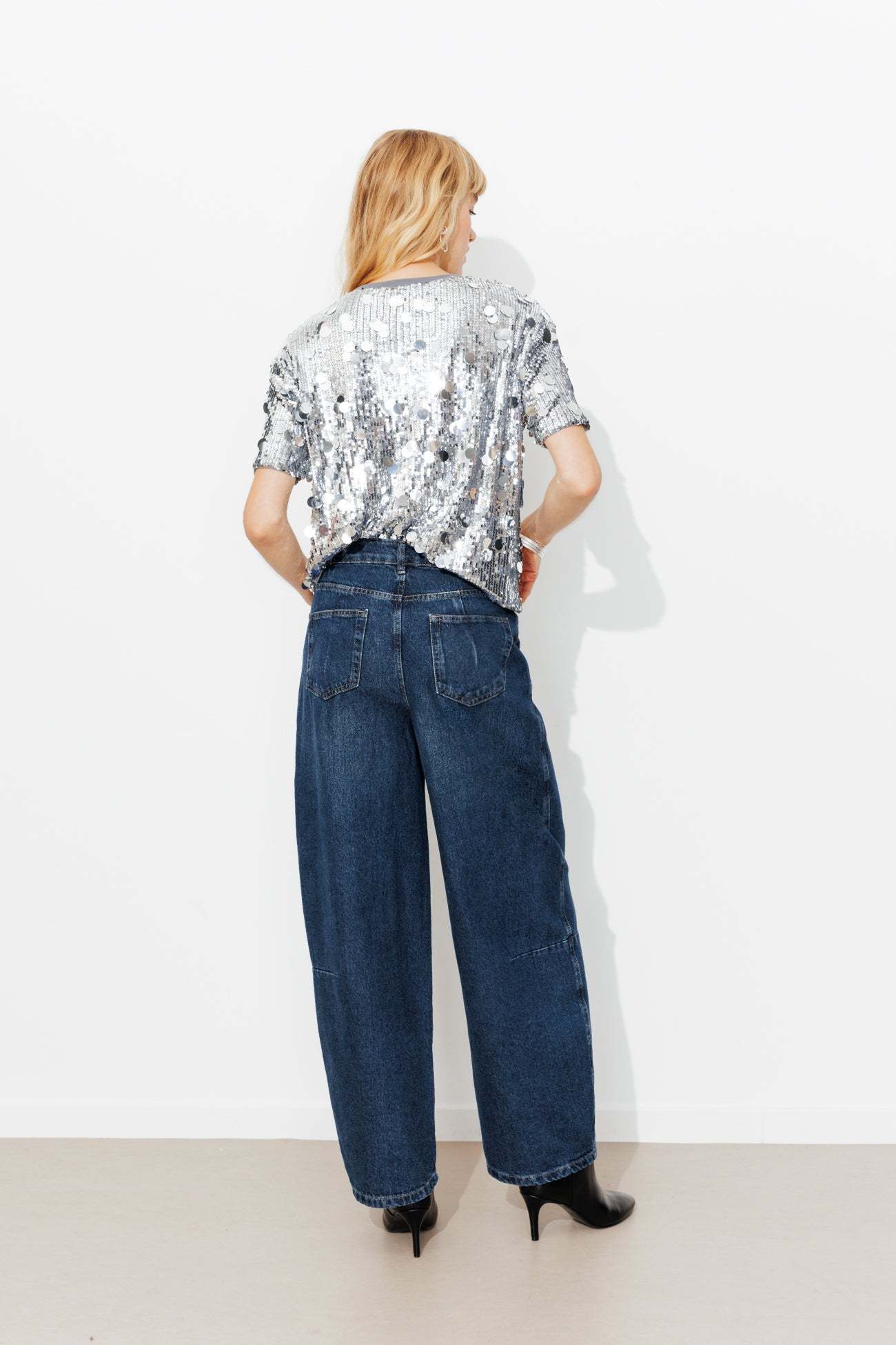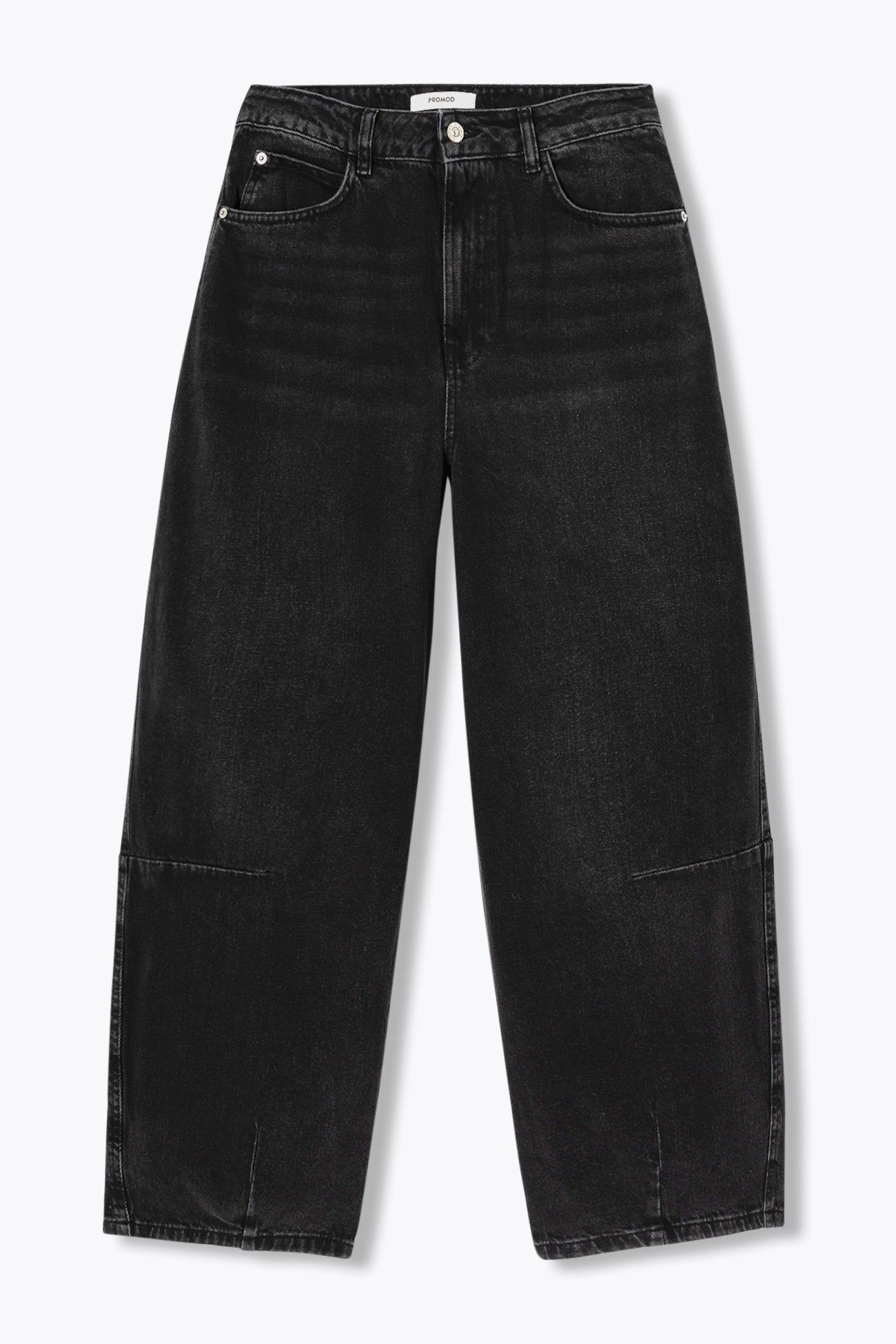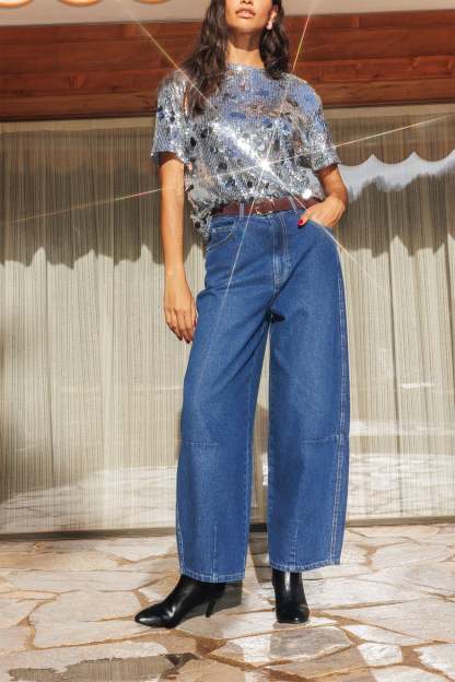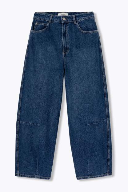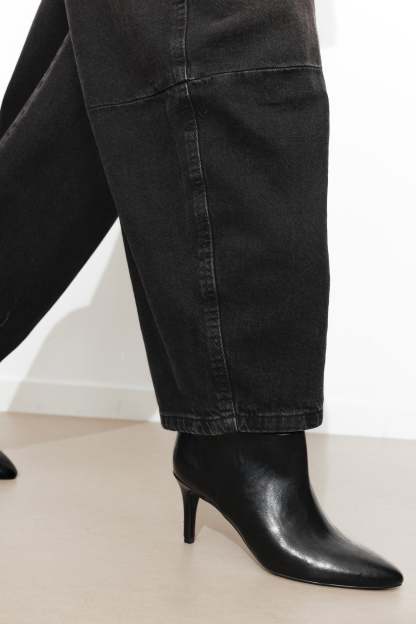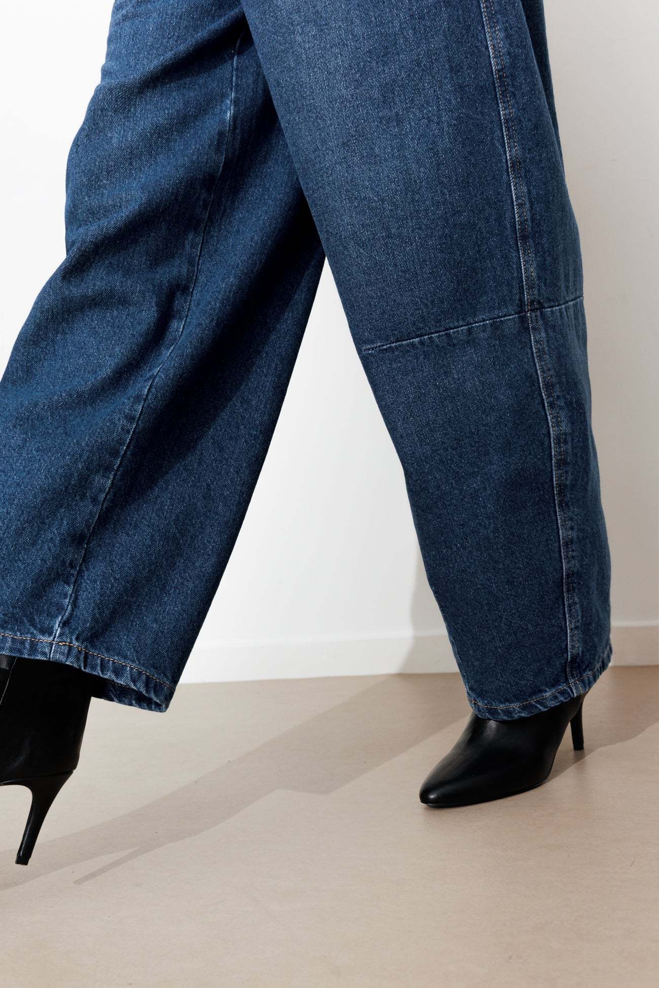 Ce jean est en train de devenir viral : tout le monde l'aime, on le veut toutes ! On l'élance avec des talons. On le dynamise avec des baskets. On le porte avec une veste dans l'open space ou un top à paillettes le soir. Coupe barrel. Denim 100% coton, sans stretch. Taille haute. Longueur cheville. Passants. Ouverture par bouton clou et zip métal. 5 poches. Rivets métal. Contient du coton recyclé.
