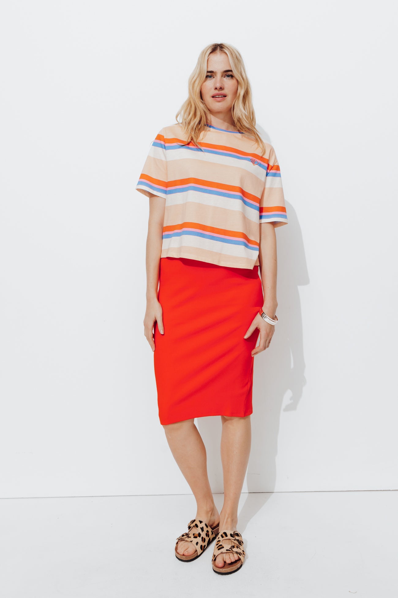 Toute simple & facile à coordonner. Cette jupe crayon en jersey côtelé a tout pour plaire ! Coupe ajustée et extensible. Taille élastiquée. Base droite. Fente d'aisance dos. Base droite. Finition surpiquée. Contient du coton issu de l'agriculture biologique. Douce et absorbante, cette matière naturelle est cultivée sans pesticides, ni engrais chimiques, ni OGM afin de préserver la biodiversité.