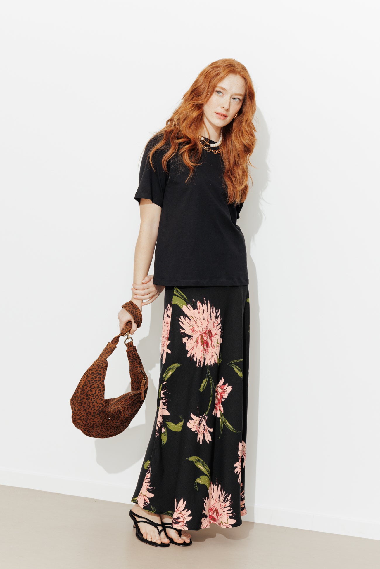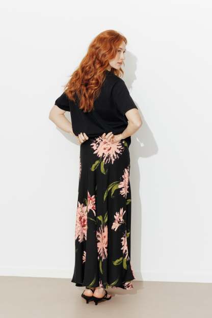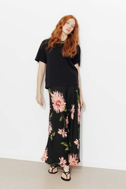 Cette jupe mi-longue est une belle façon de prouver au monde entier le grand pouvoir des fleurs ! Elle traverse les saisons, portée en collants ou jambes nues, en bottes ou en sandales. A mixer avec un top noir ou un pull fin. A twister avec des bijoux et un beau sac à main. Viscose fluide et crêpée, agréable à porter. Coupe évasée. Taille élastiquée cachée. Base arrondie. Finition piquée. Ce motif redessiné par Laura - notre illustratrice textile - est une création unique Promod.