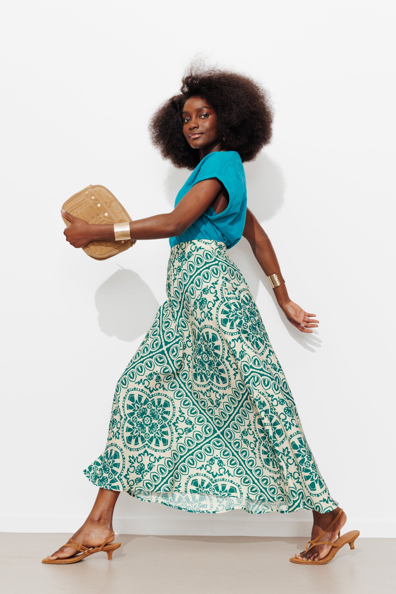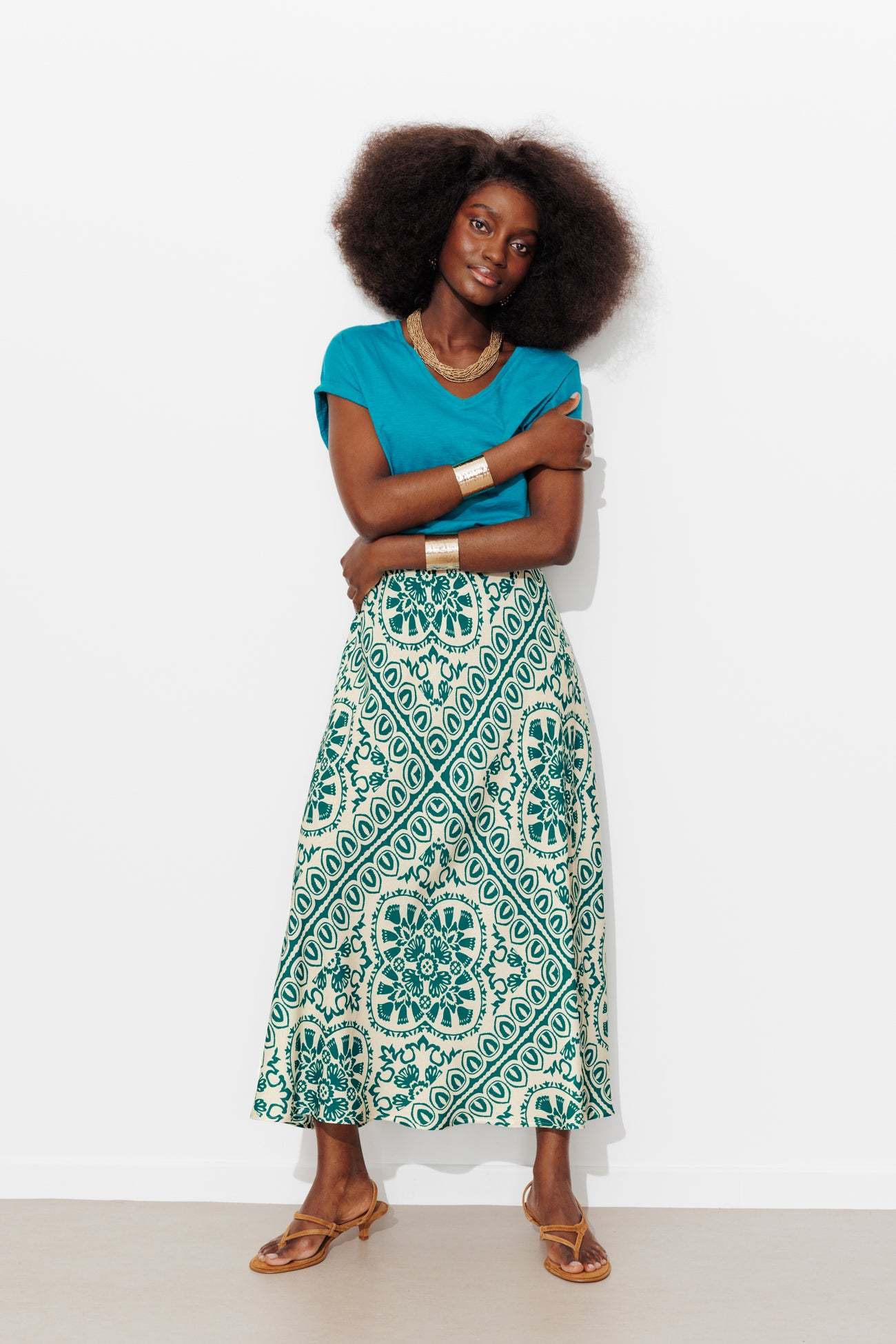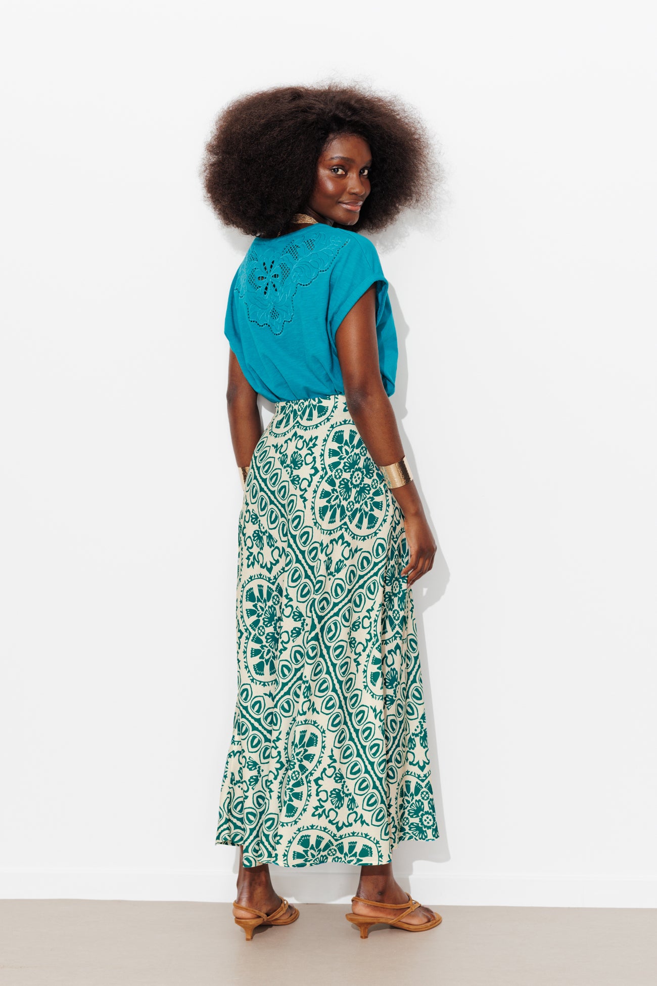 Le motif est très visuel. Le mouvement est libre comme l'air. Cette jupe mi-longue imprimée est faite pour vous donner envie de danser, avec ou sans musique, pour une fête en particulier ou pour embellir la vie de tous les jours. Tissu doux et fluide. Motifs imprimés all over. IMPRIME MAISON : redessinés par Laura, notre illustratrice textile, ces motifs sont une création originale PROMOD. Coupe très évasée. Taille élastiquée cachée. Base arrondie. Finition piquée. Cette jupe femme est en 100% viscose issue de pulpe de bois provenant de forêts gérées.