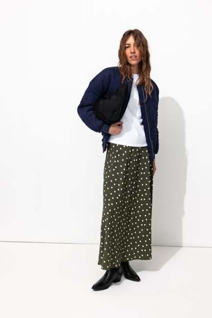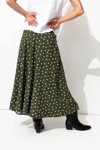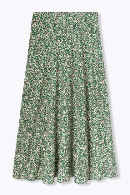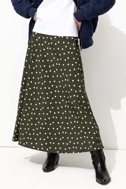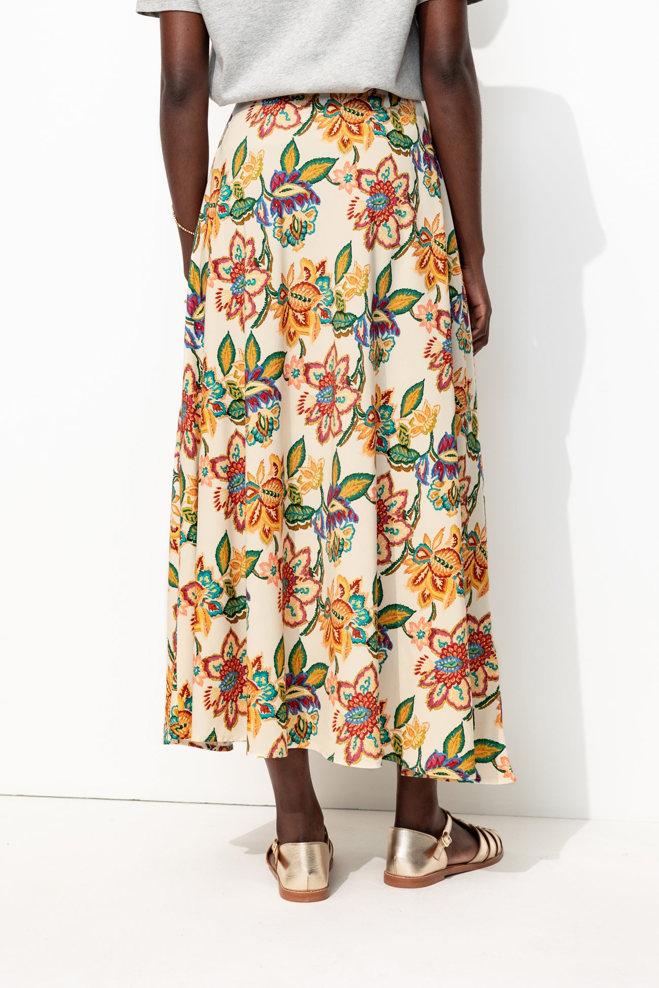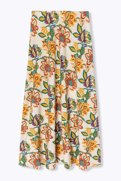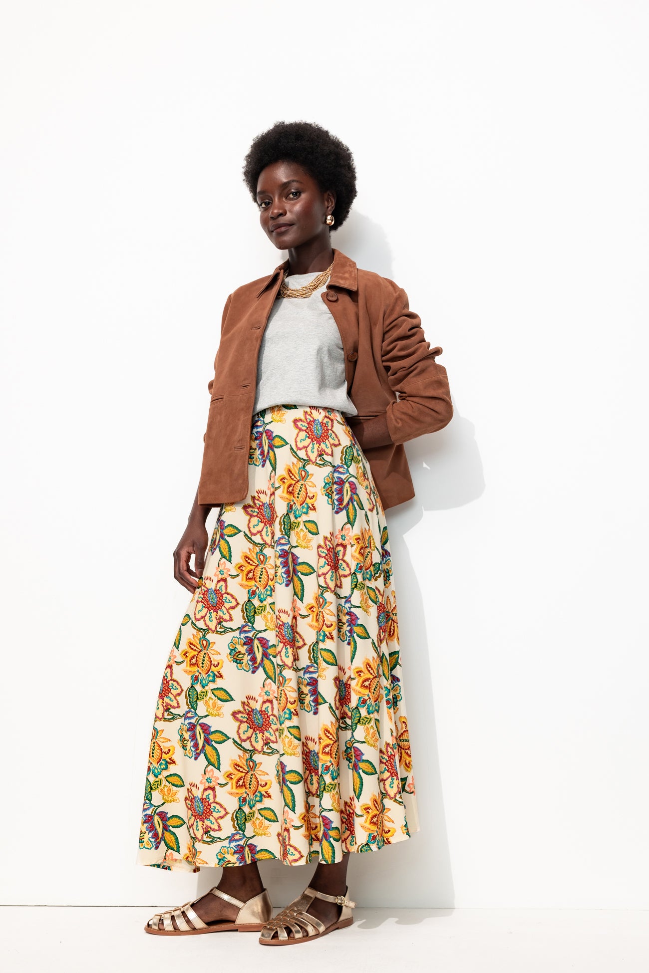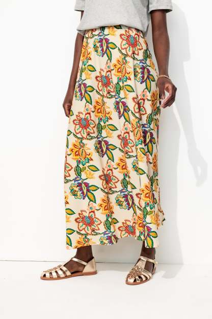 Dessiné par Laura - notre illustratrice textile - ce motif est une création originale PROMOD !Cette jupe mi-longue et évasée traverse les saisons et suit le rythme de nos vies ! Avec ou sans collants. Elle aime le mouvement... perpétuel ! Tissu doux et léger. Taille élastiquée cachée. Base arrondie. Finition piquée. Cette jupe est en 100% viscose issue de pulpe de bois provenant de forêts gérées