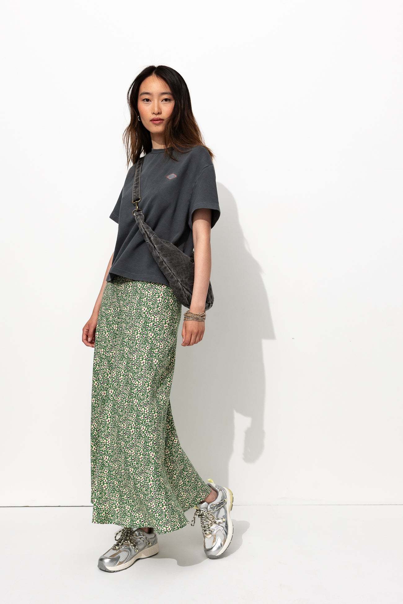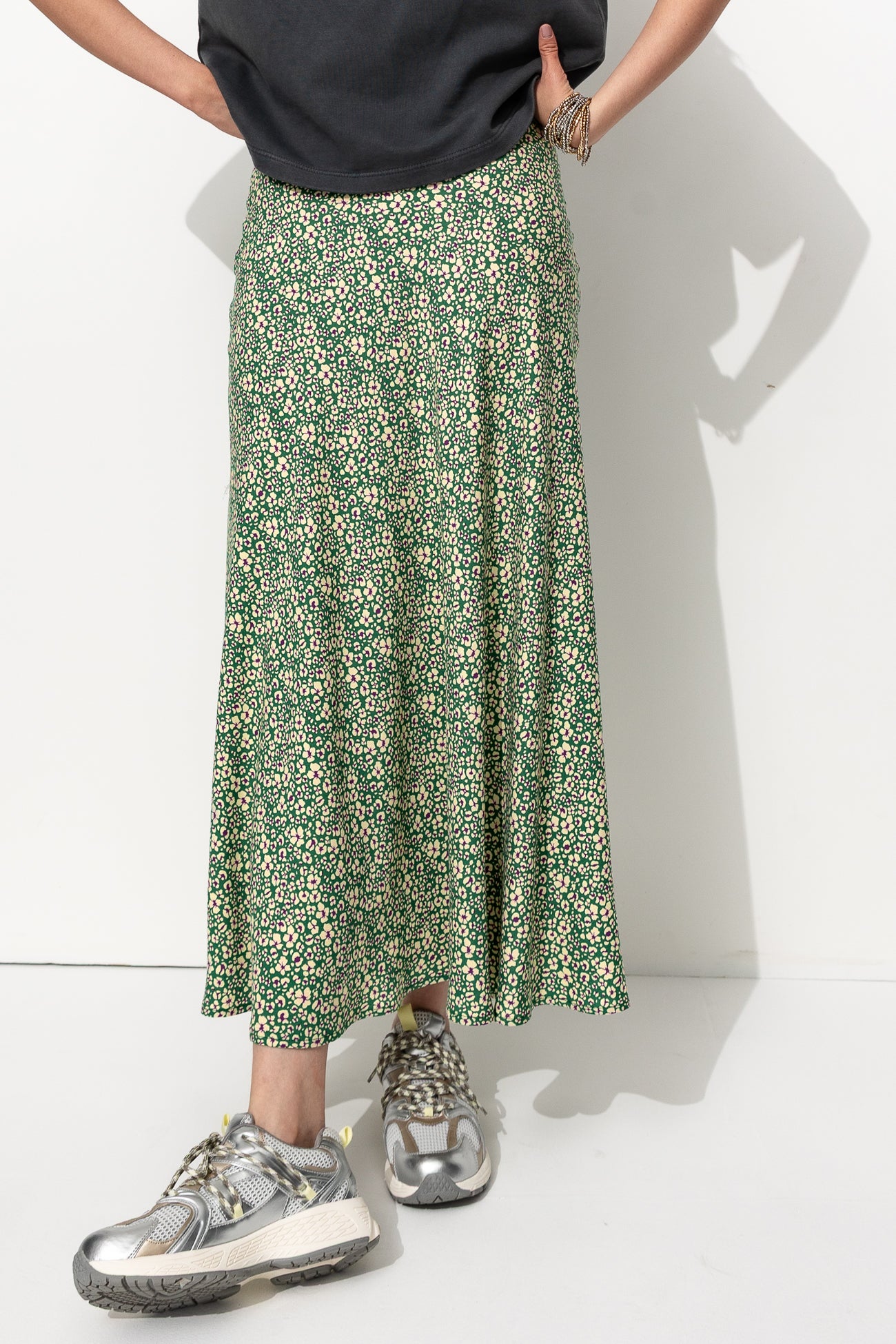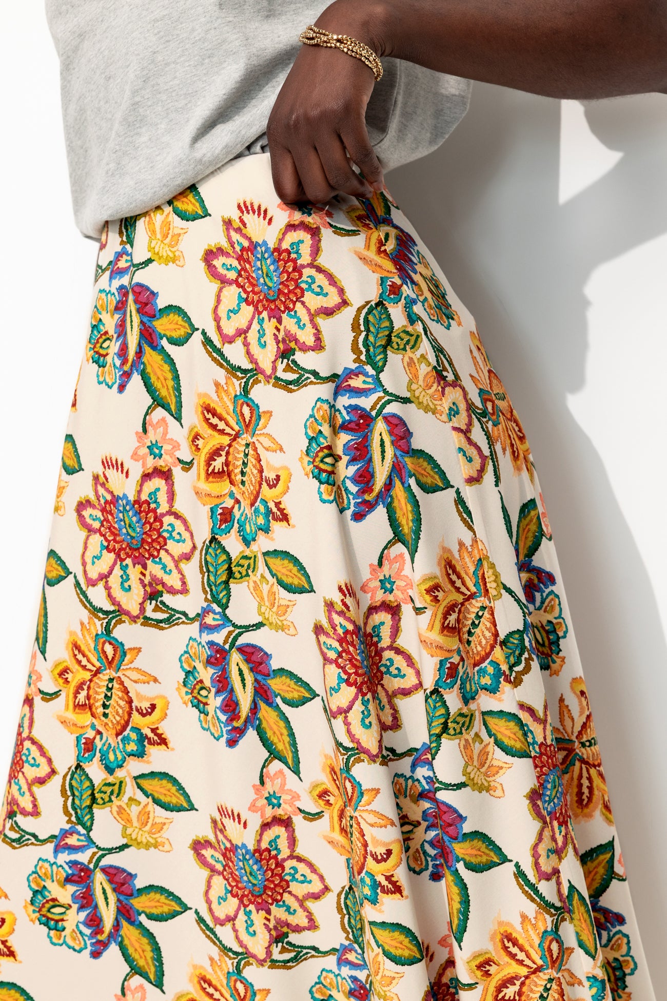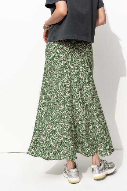 Dessiné par Laura - notre illustratrice textile - ce motif est une création originale PROMOD !Cette jupe mi-longue et évasée traverse les saisons et suit le rythme de nos vies ! Avec ou sans collants. Elle aime le mouvement... perpétuel ! Tissu doux et léger. Taille élastiquée cachée. Base arrondie. Finition piquée. Cette jupe est en 100% viscose issue de pulpe de bois provenant de forêts gérées