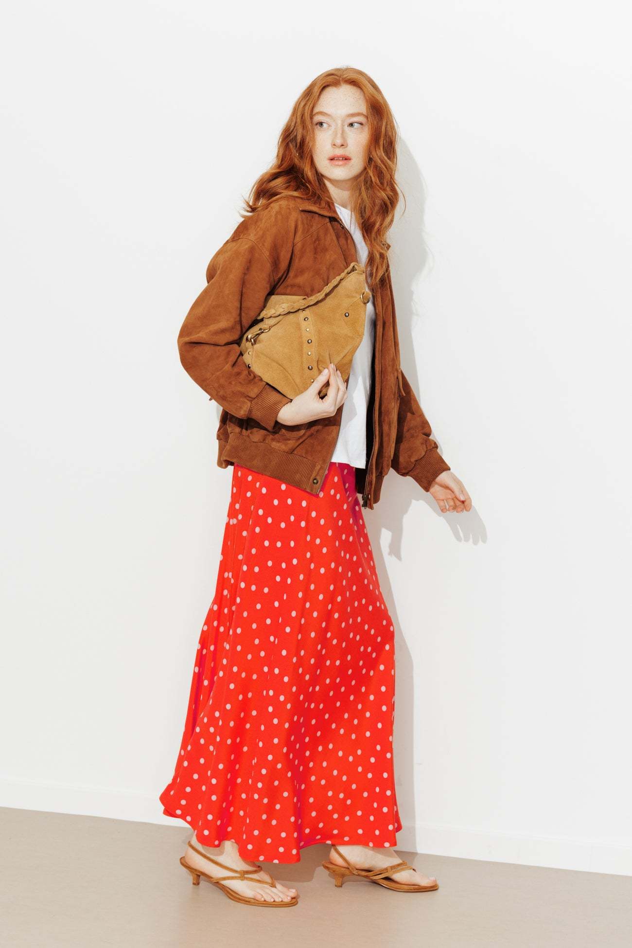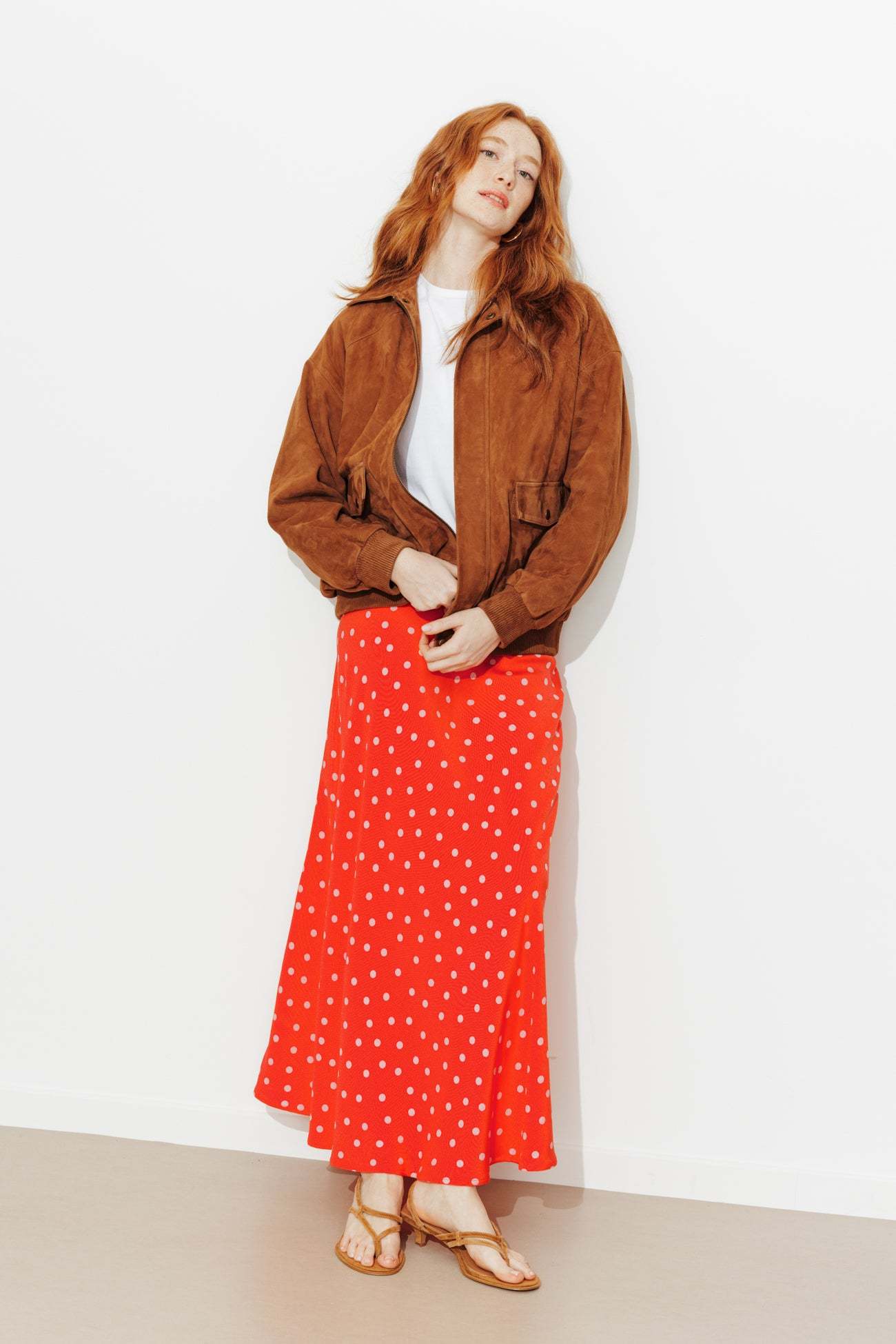 Jupe midi à pois Femme