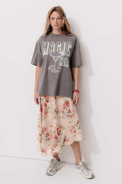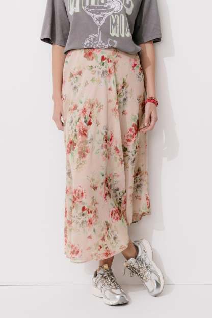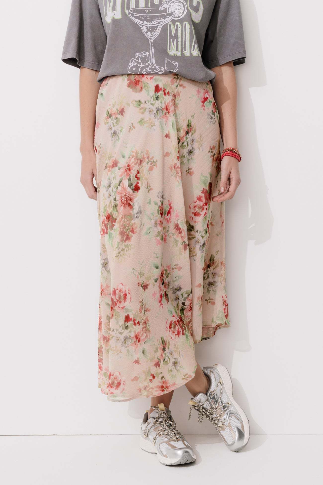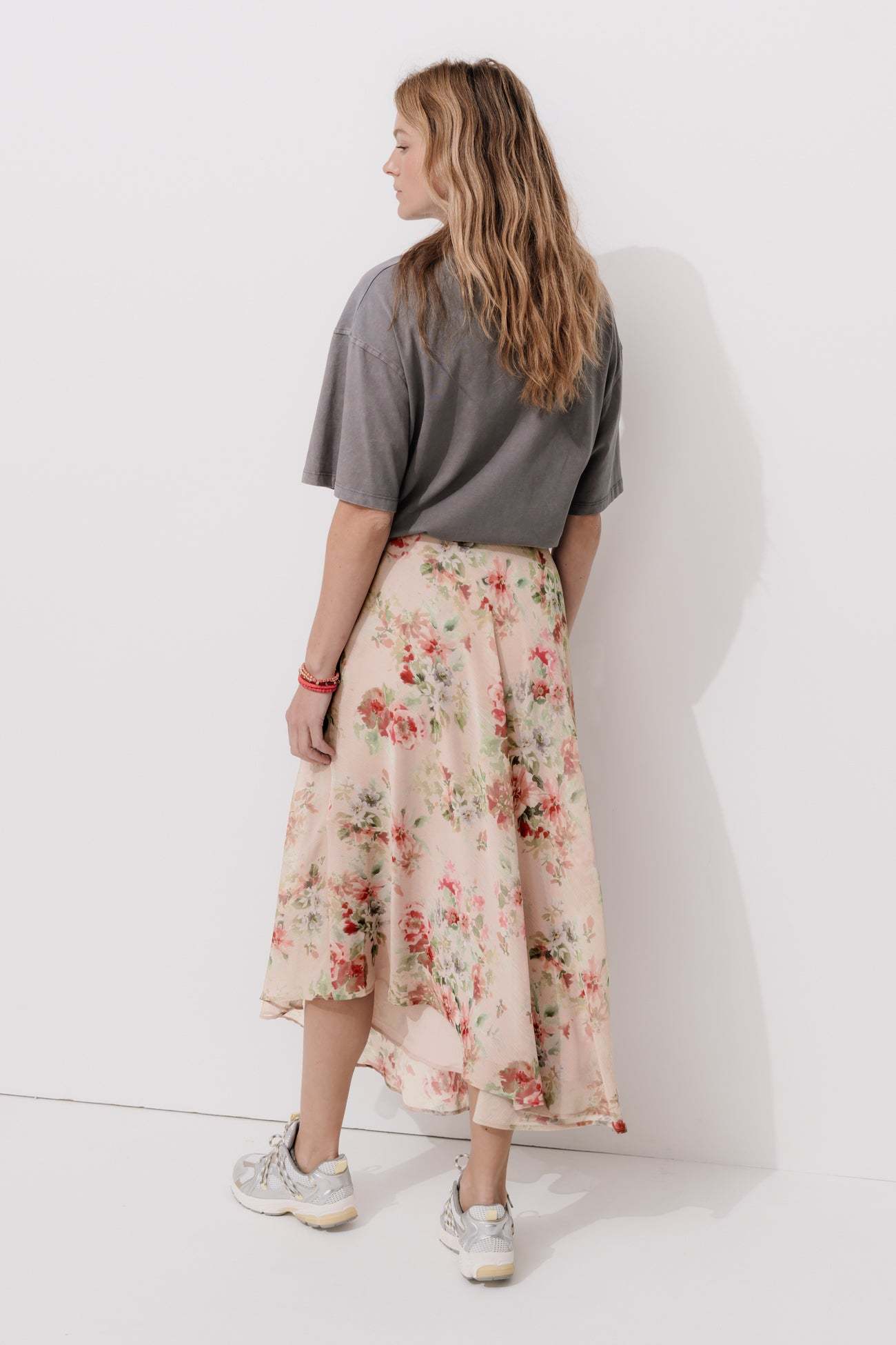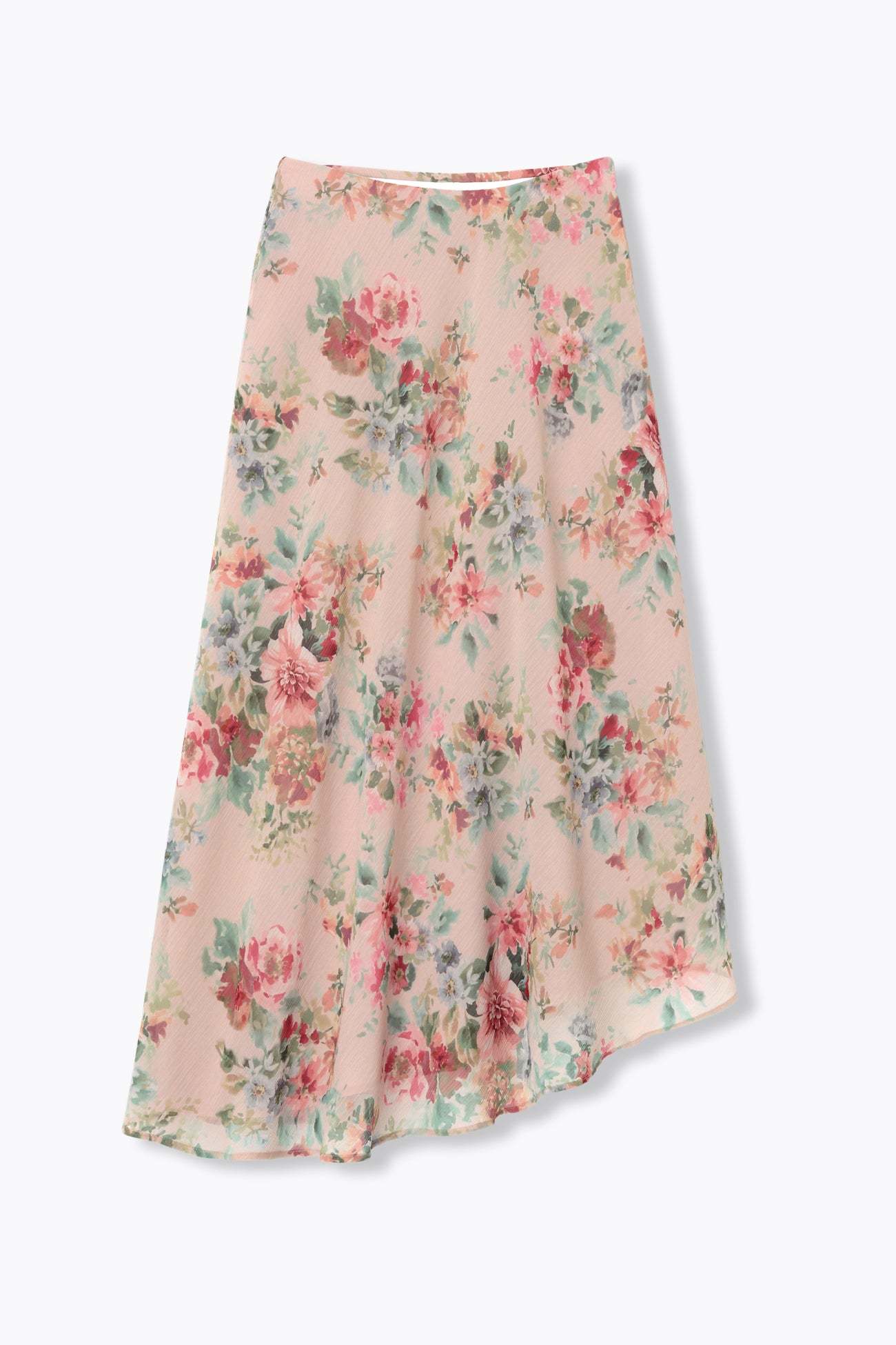 Un voile crêpé ultra-léger (et doublé), des fleurs façon aquarelle... il y a de la poésie dans l'air et une furieuse envie de danser avec cette jupe asymétrique ! A imaginer avec un pull moelleux en hiver. A associer à un top uni en été. Coupe évasée, bas légèrement trompette. Taille élastiquée cachée. Finition piquée. Cette jupe femme contient des fibres recyclées.
