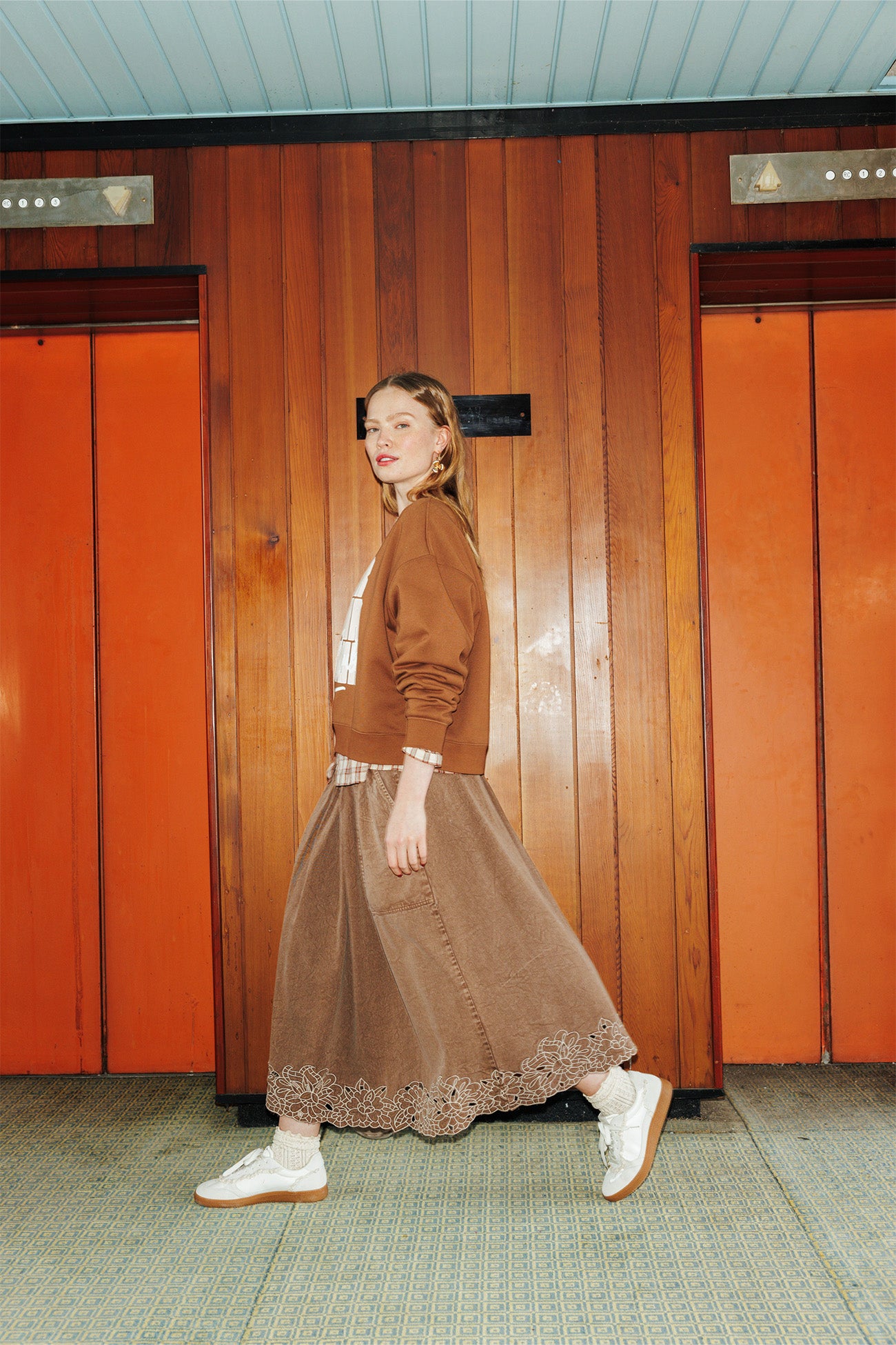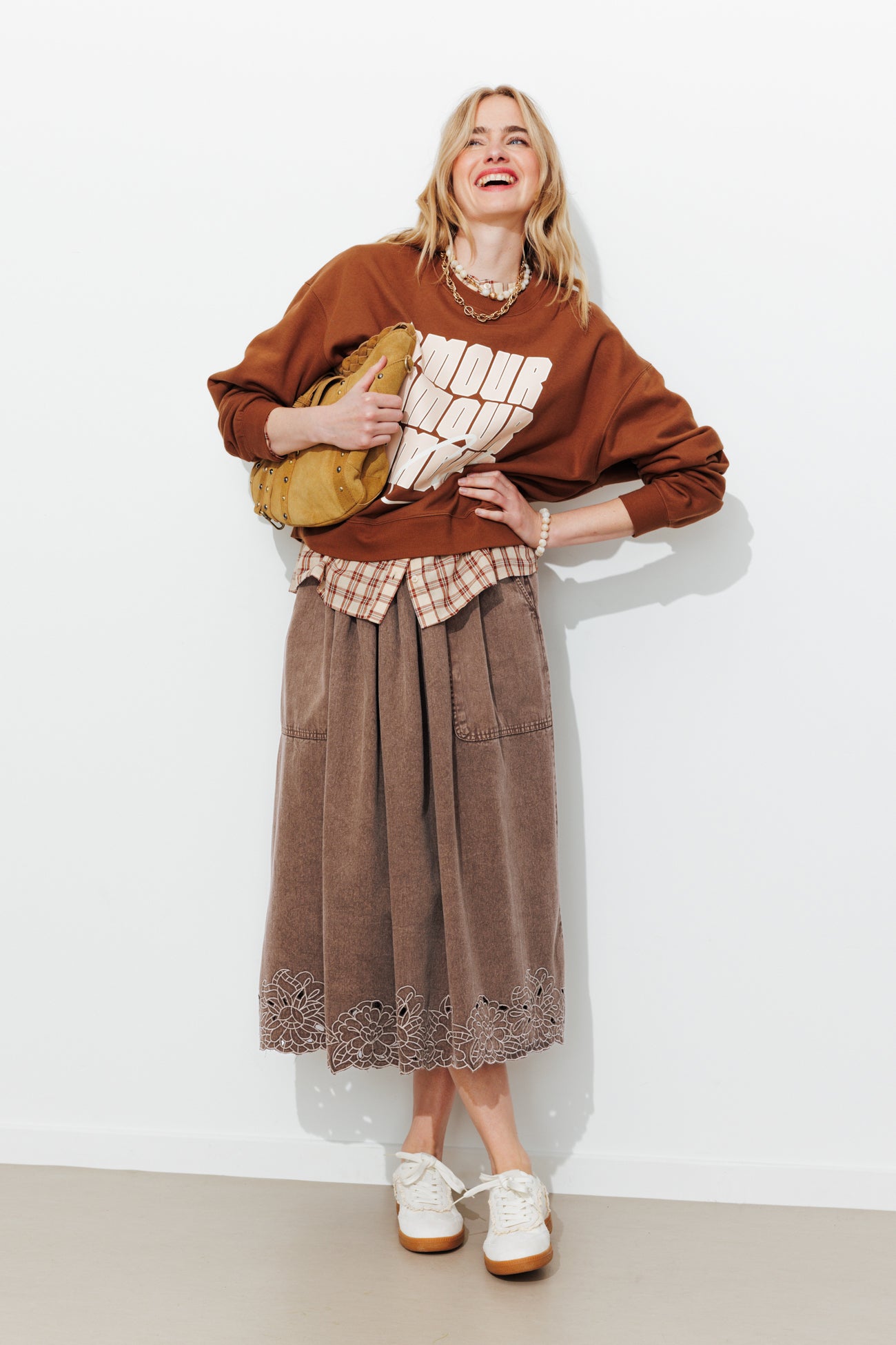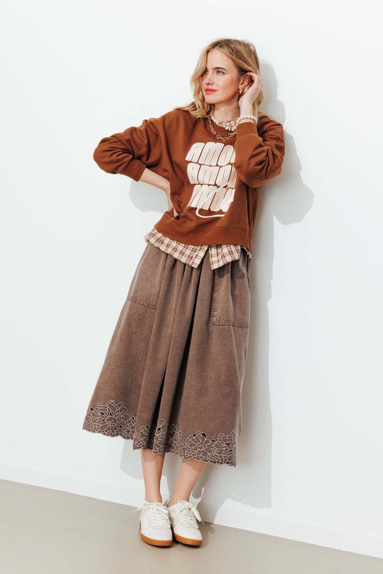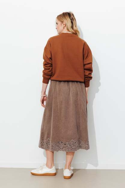 Jupe midi brodée Femme