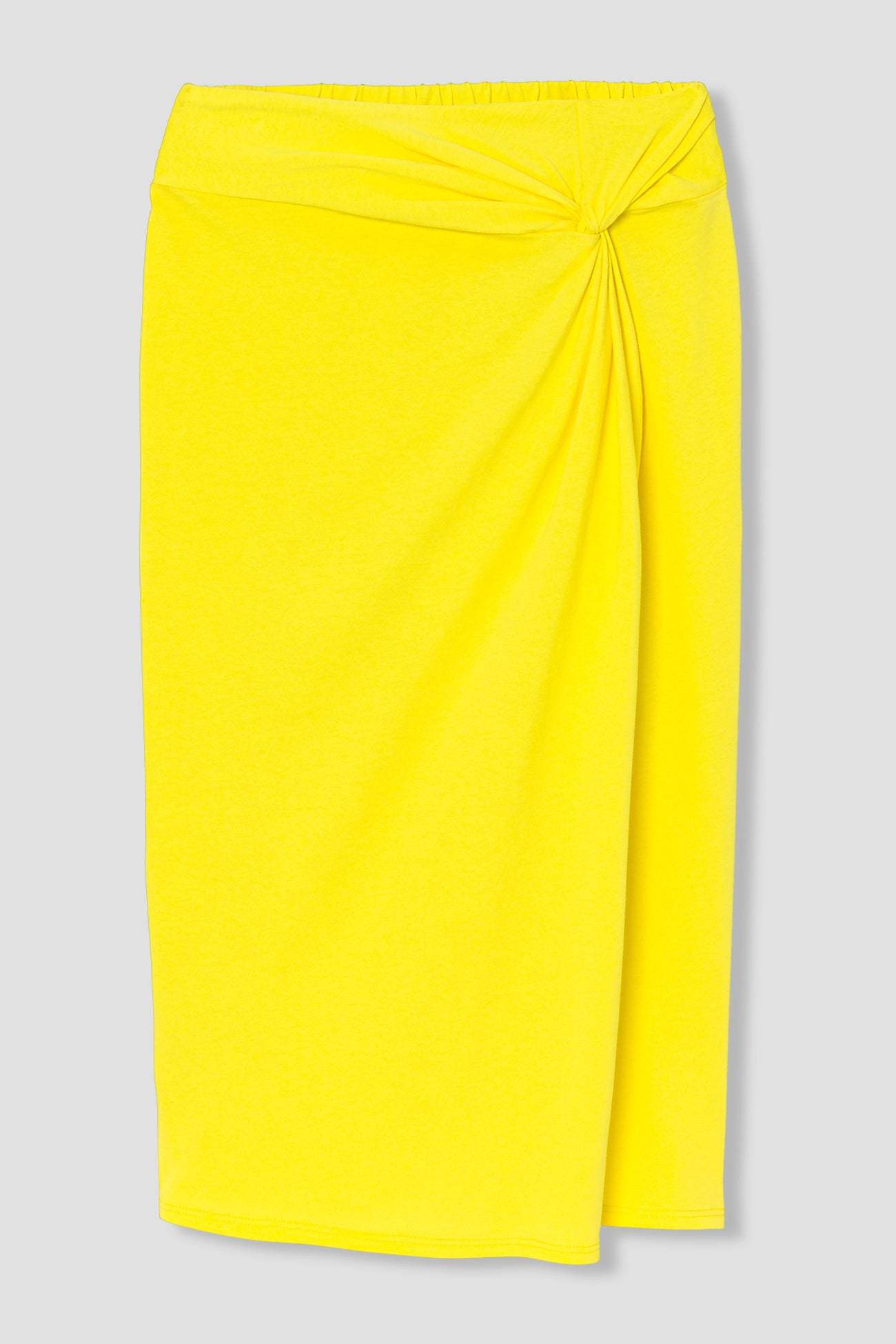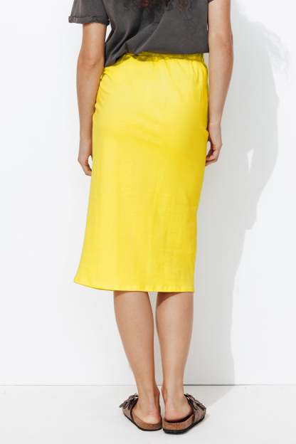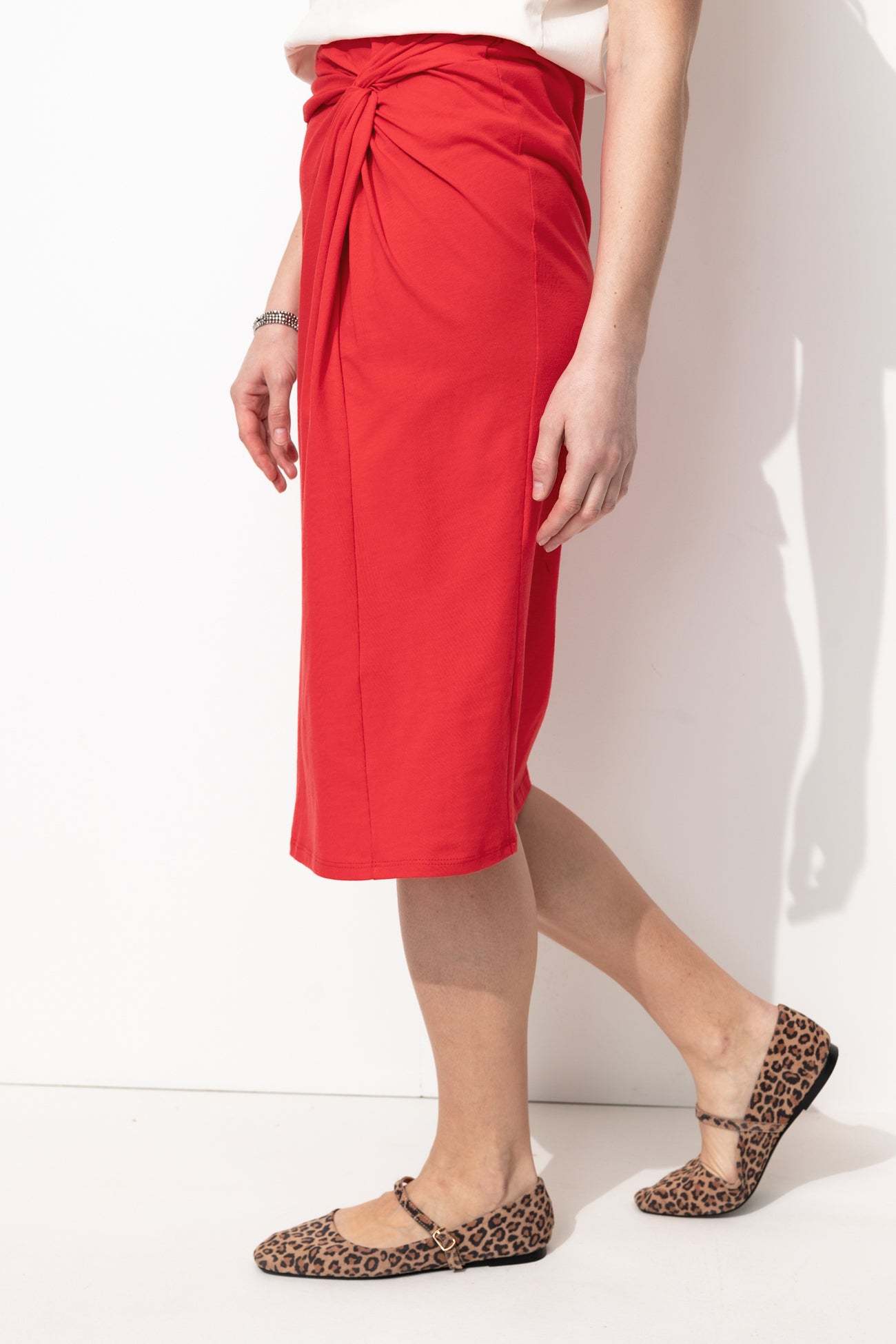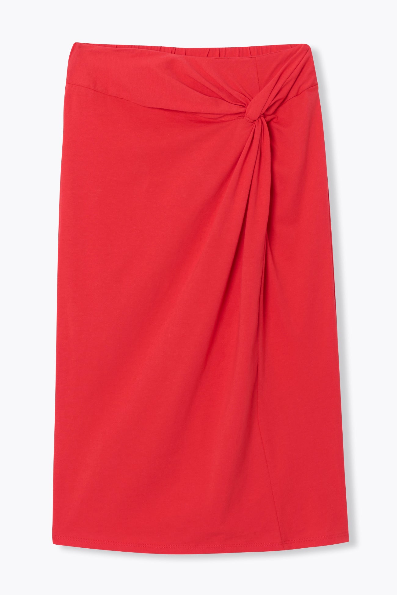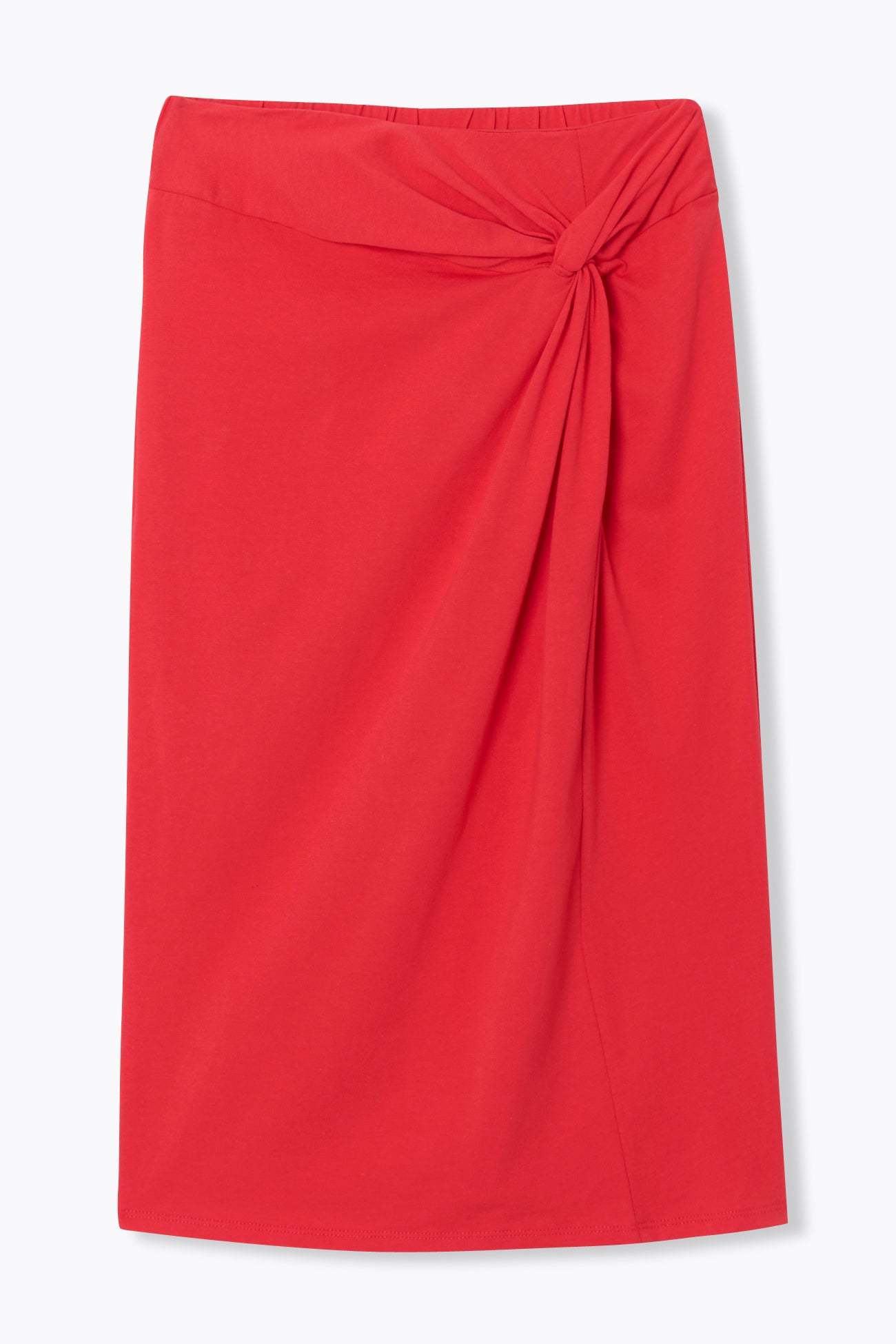 Un effet noué pour tout changer. Un jersey de coton pour le cool. Cette jupe midi passe sa vie au soleil... et sort les soirées d'été ! Coupe crayon. Taille élastiquée. Base arrondie. Finition surpiquée. Contient du coton issu de l'agriculture biologique. Douce et absorbante, cette matière naturelle est cultivée sans pesticides, ni engrais chimiques, ni OGM afin de préserver la biodiversité.