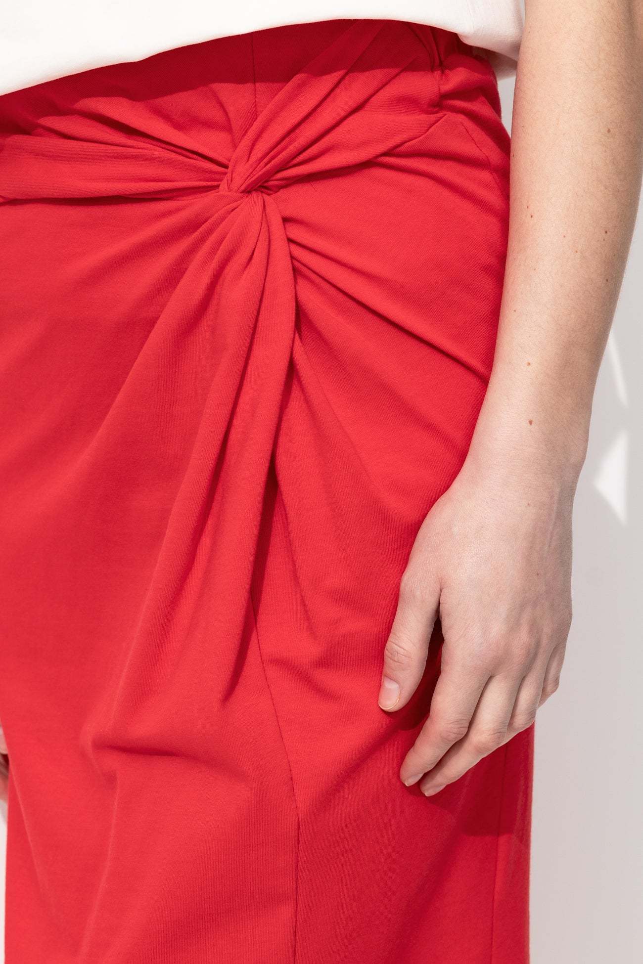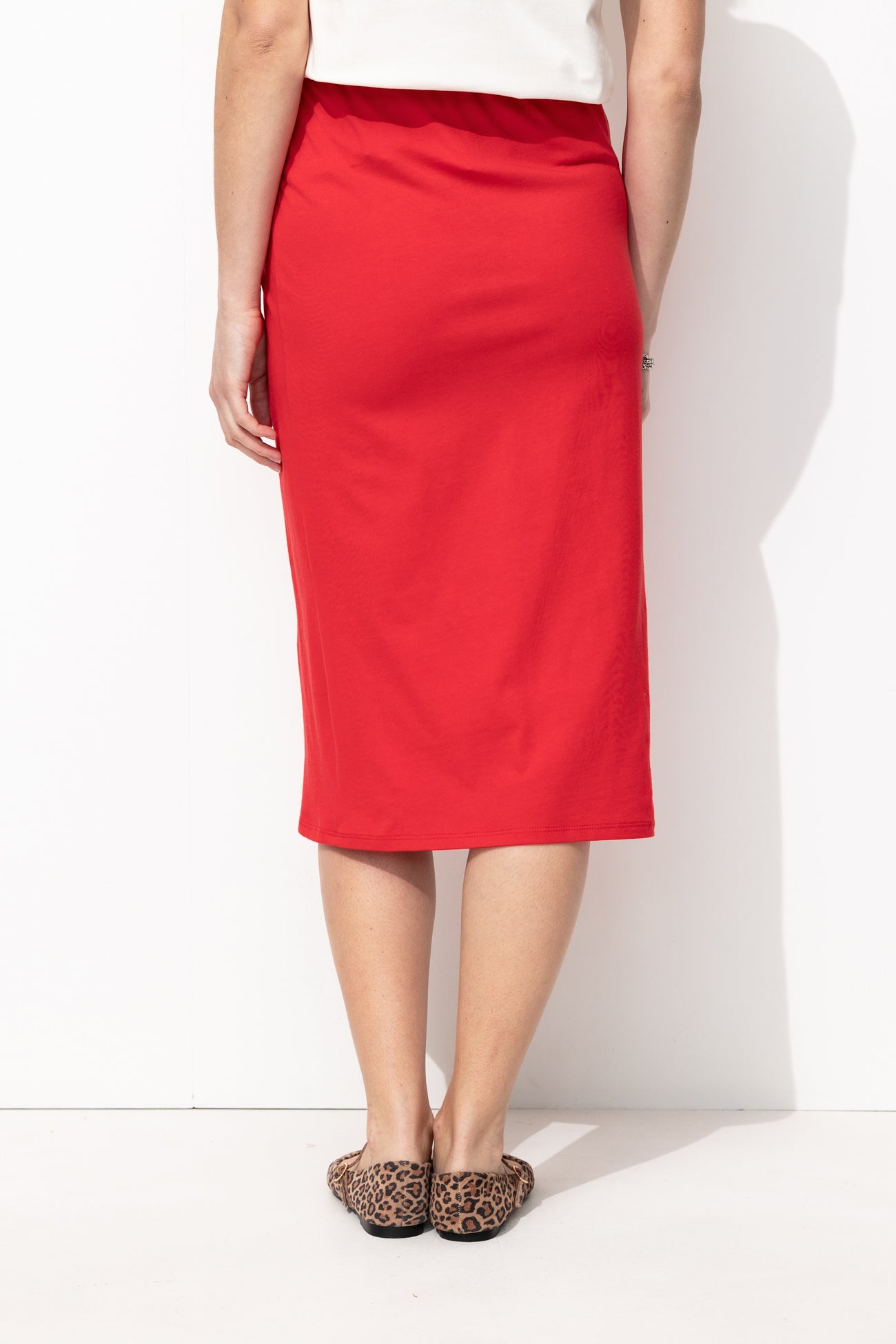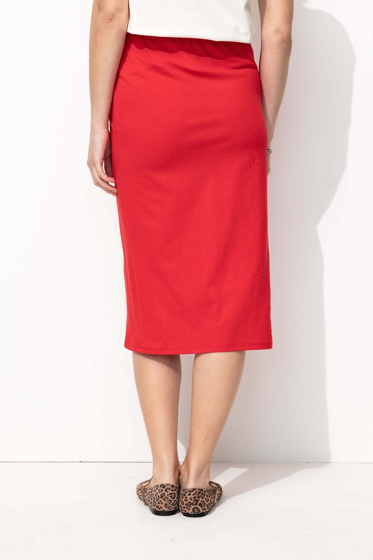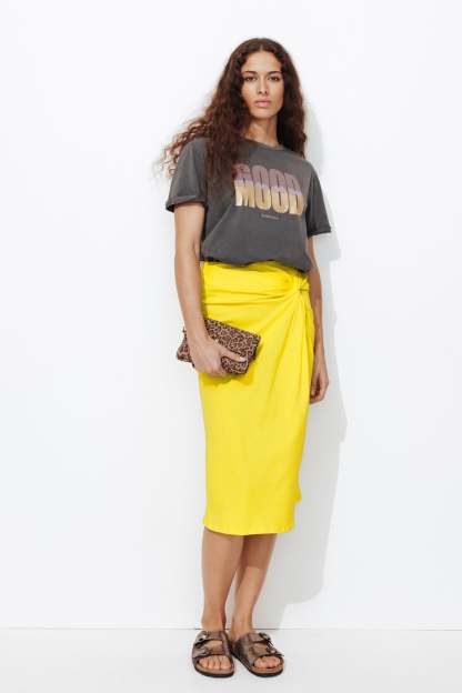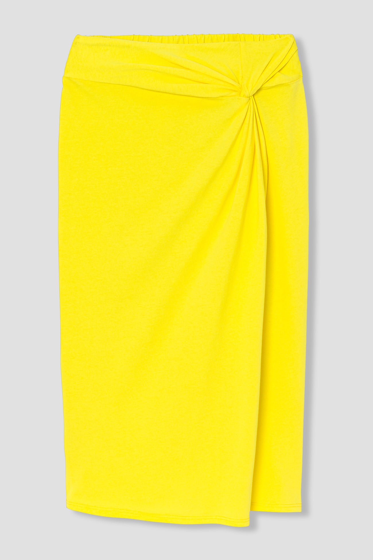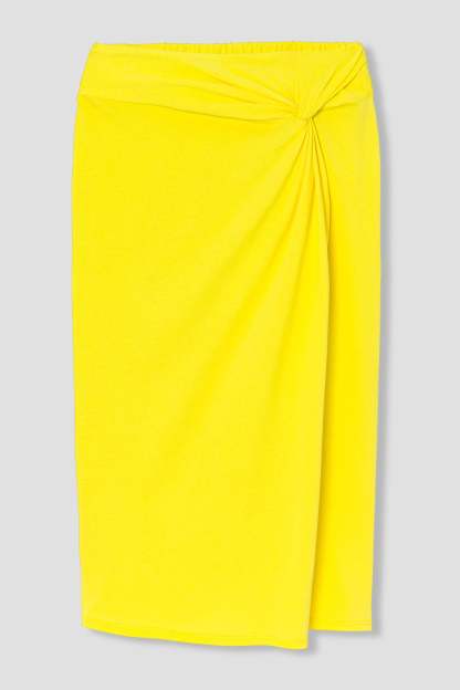 Un effet noué pour tout changer. Un jersey de coton pour le cool. Cette jupe midi passe sa vie au soleil... et sort les soirées d'été ! Coupe crayon. Taille élastiquée. Base arrondie. Finition surpiquée. Contient du coton issu de l'agriculture biologique. Douce et absorbante, cette matière naturelle est cultivée sans pesticides, ni engrais chimiques, ni OGM afin de préserver la biodiversité.