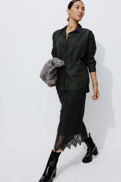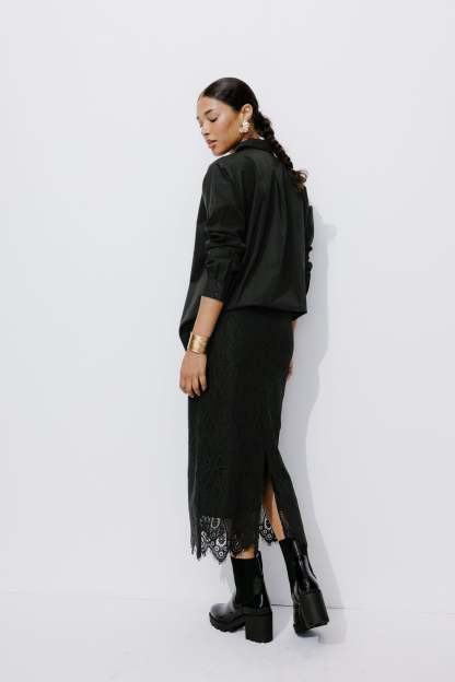 Rétro chic & nouveau romantisme - La jupe midi est encore plus désirable en version dentelle ! On la porte en total look dentelle, ou avec un simple t-shirt blanc ou noir. On l'aime en talons hauts, avec ou sans collants. Coupe près du corps. Ouverture par zip invisible côté. Fente d'aisance dos. Doublure. Cette jupe femme contient des fibres recyclées.