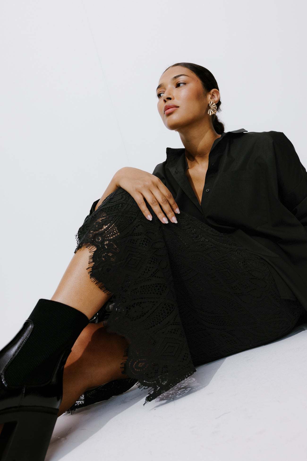 Jupe midi en dentelle Femme