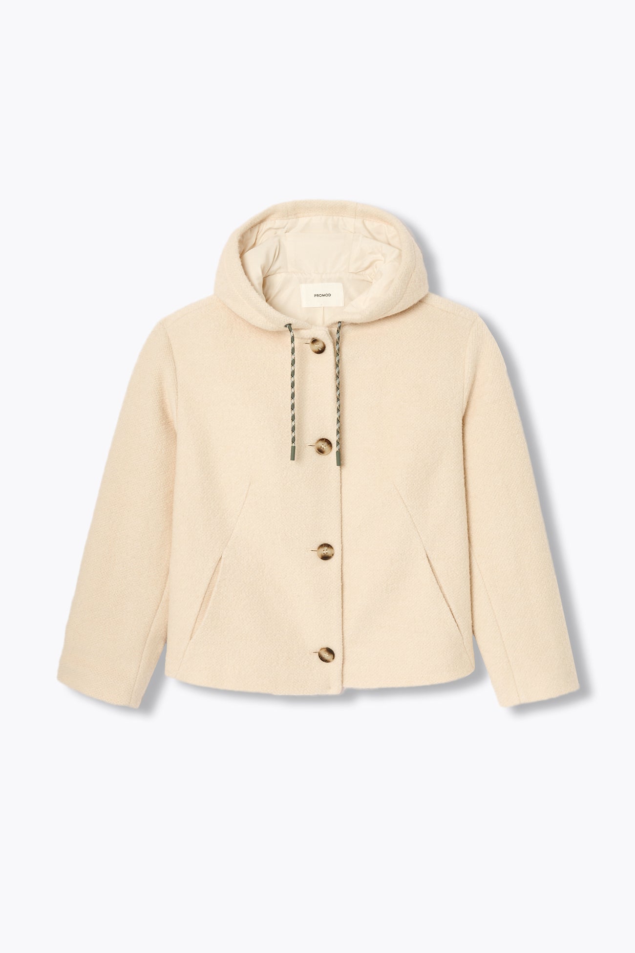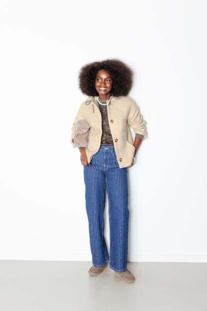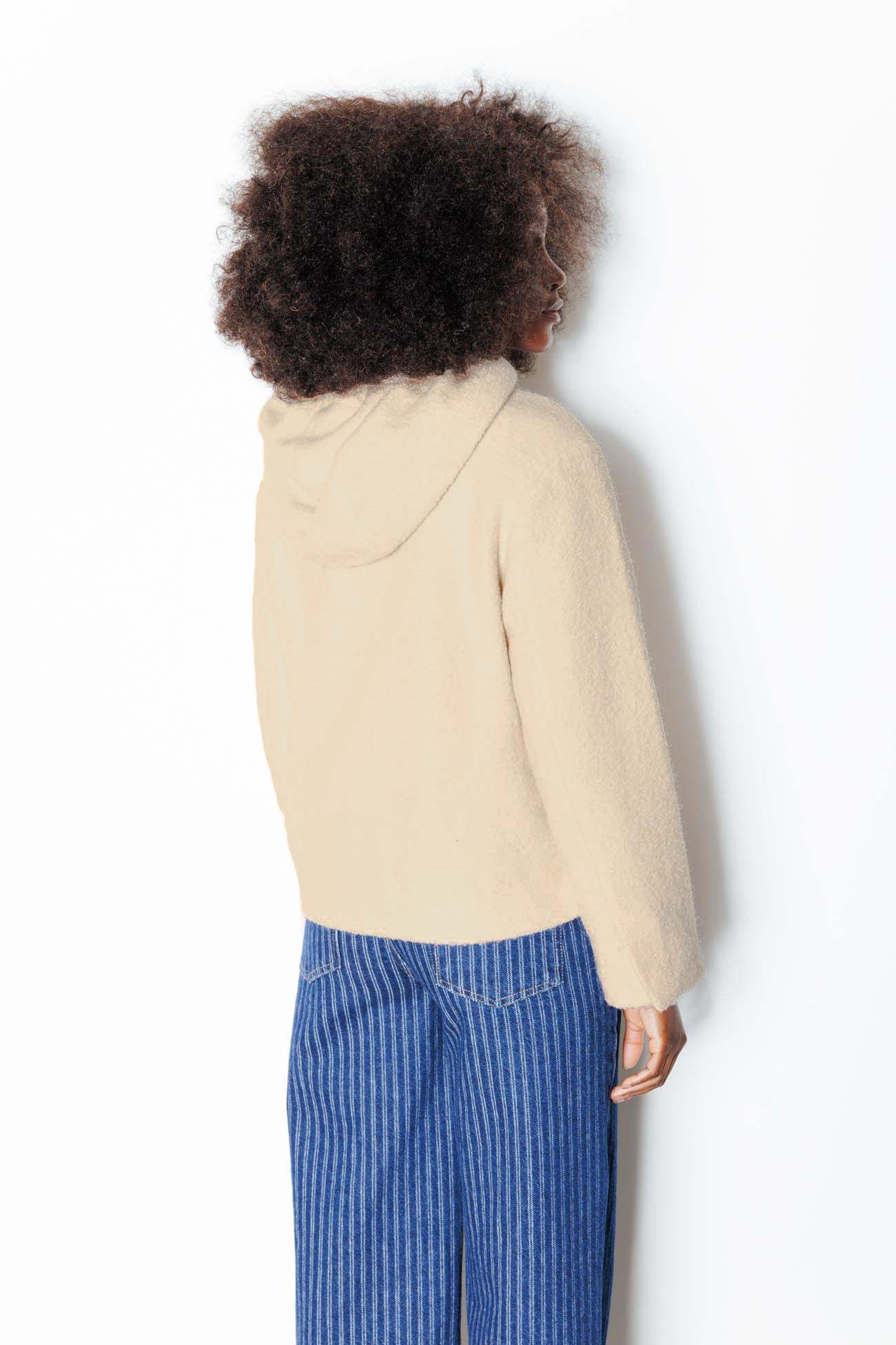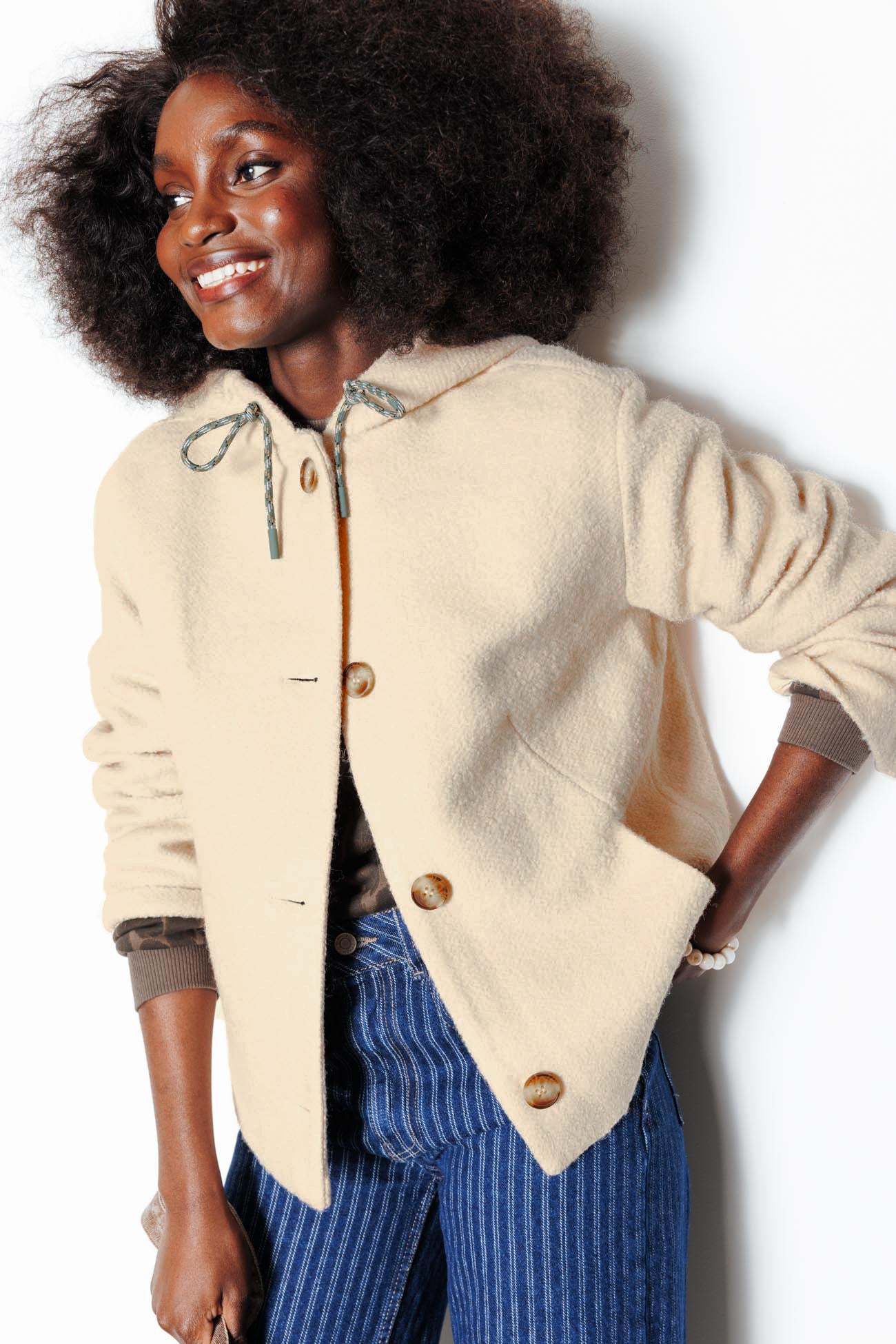 Vive allure & esprit College ! On se balade avec ou sans la capuche sur la tête mais avec toujours une idée précise : faire la différence dans le paysage-mode ! Effet bouclettes. Coupe droite et courte. Capuche avec cordon sous œillets métal. Ouverture boutonnée devant. 2 poches en biais devant. Manches longues. Base légèrement arrondie. Doublure. Cette veste femme contient des fibres recyclées.