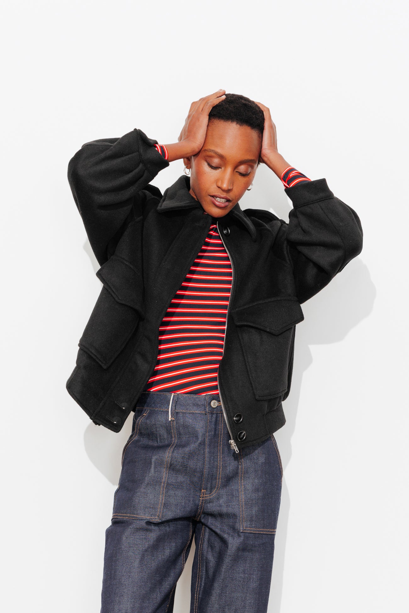 Manteau court laine mélangée