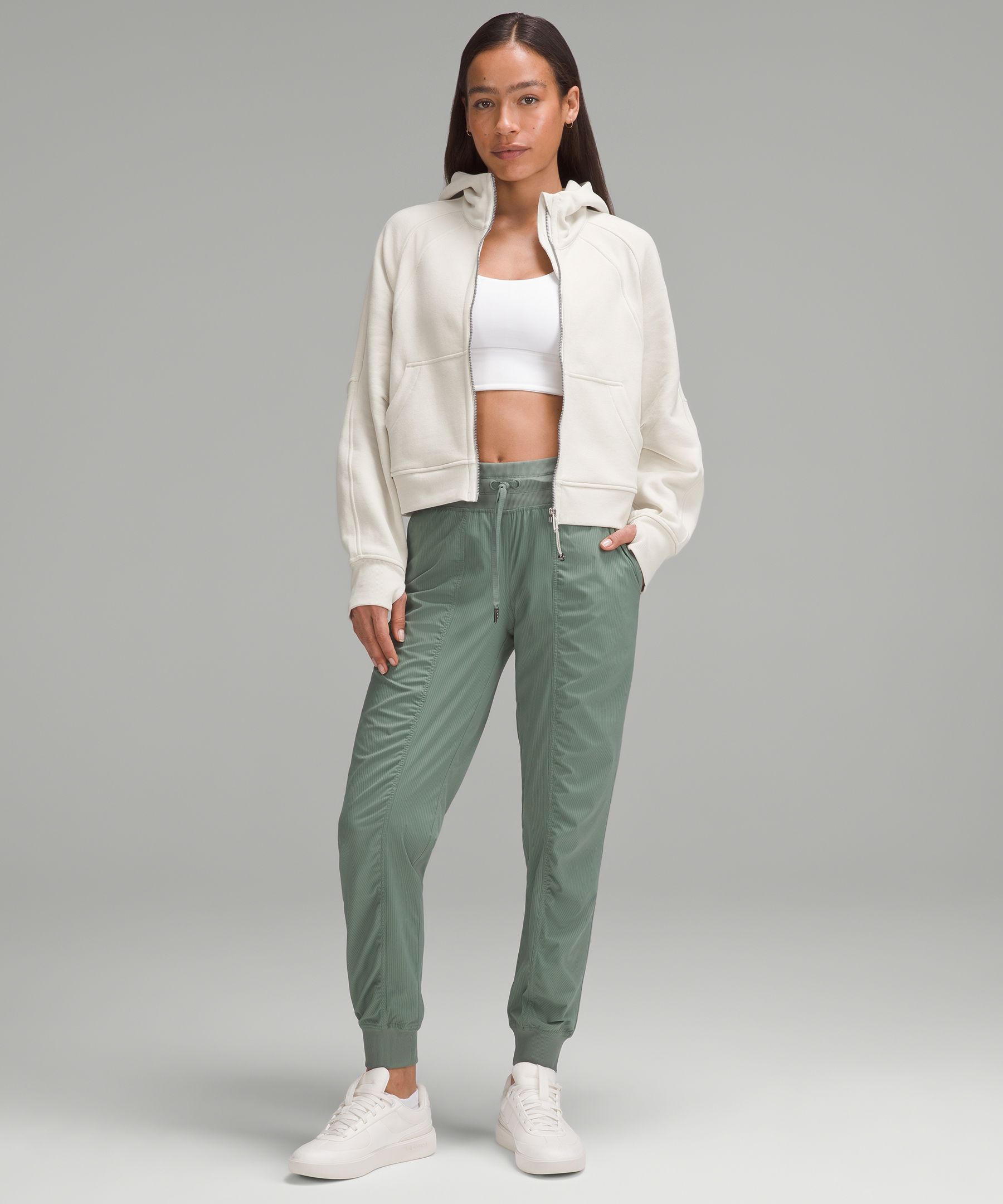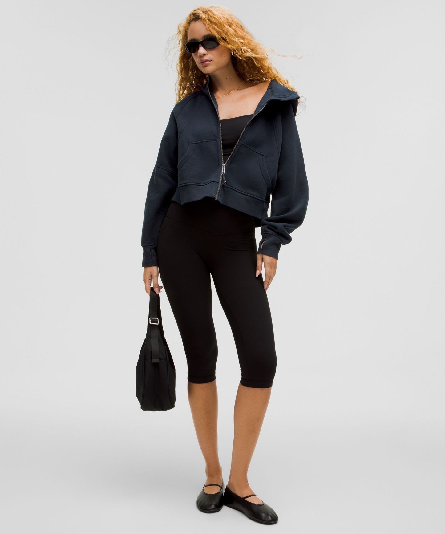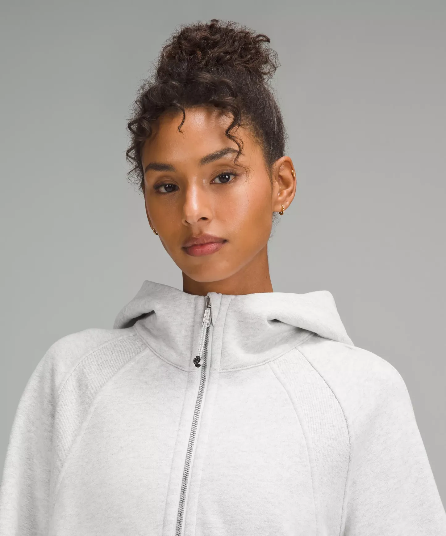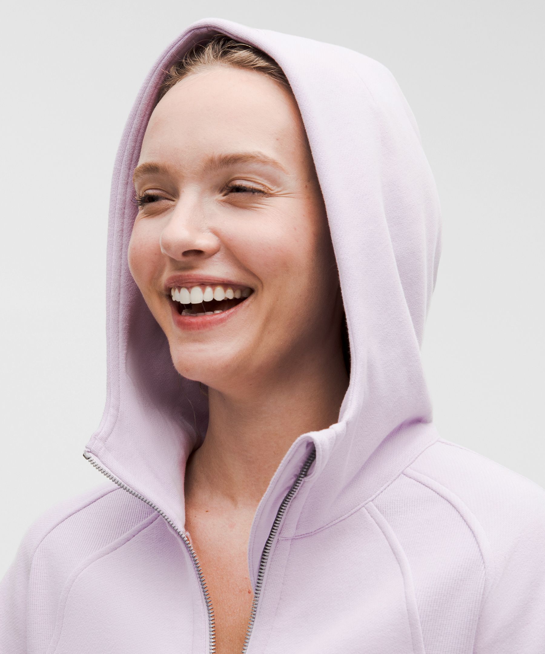 - Elastic zipper pull doubles as an emergency hair tie