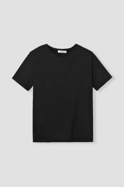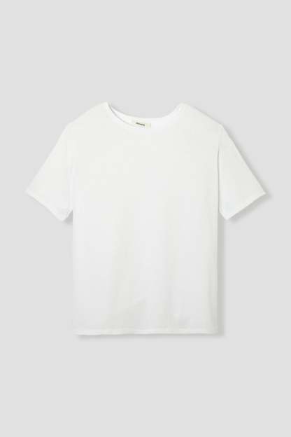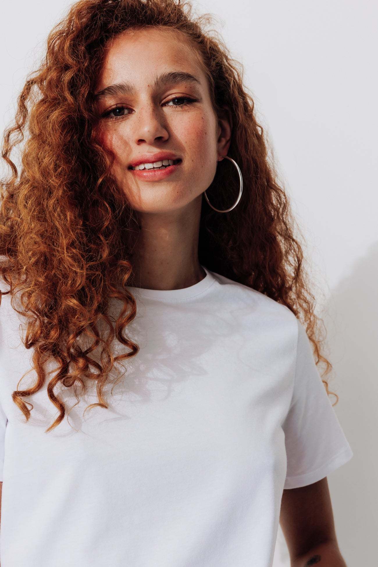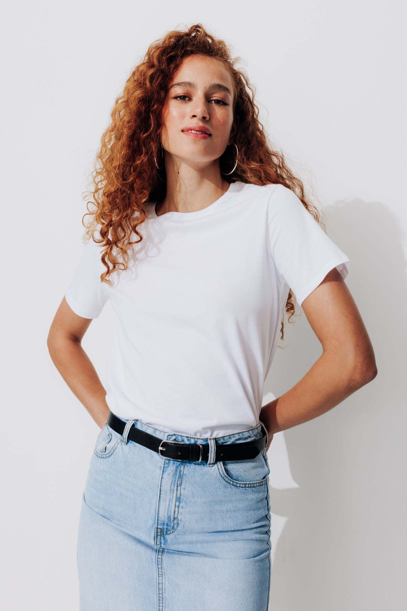 Bon basique toutes générations. A twister avec des bijoux, un sac, un foulard ou une veste... Jersey de coton issu de l'agriculture biologique. Coupe droite. Col rond. Manches courtes. Base droite.
