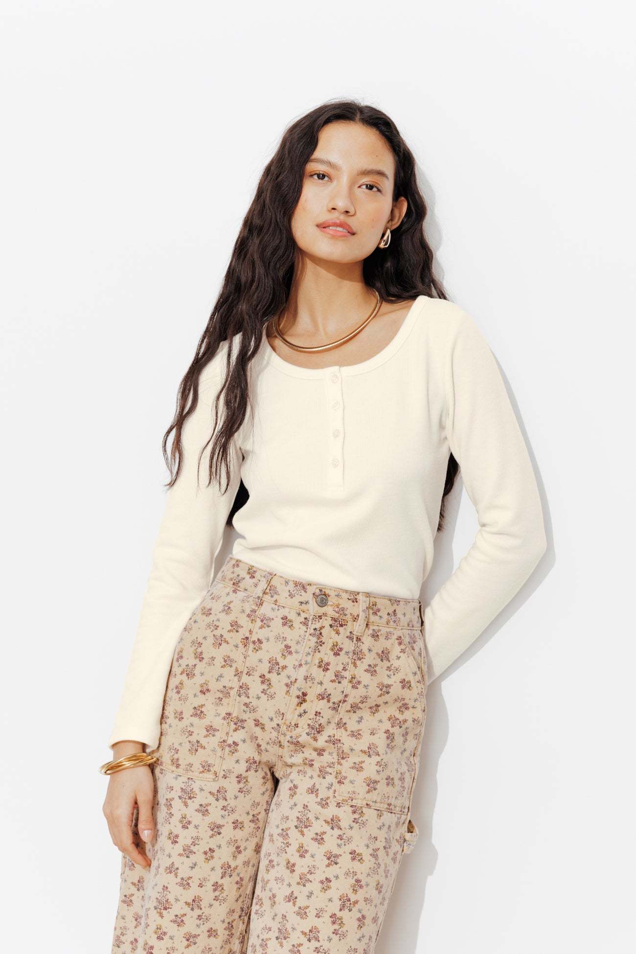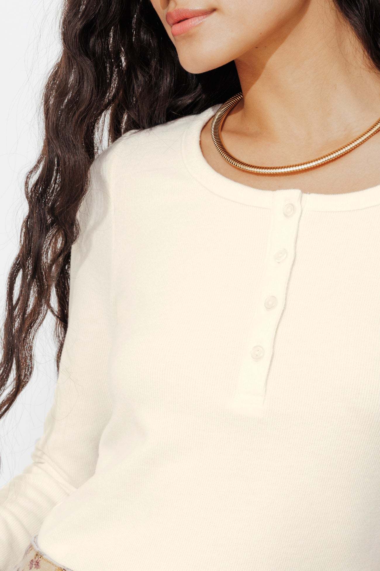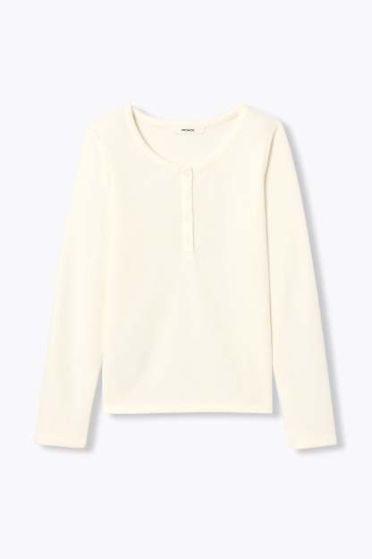 Douceur. Confort. Simplicité. Ce t-shirt est un bon basique du dressing, à avoir absolument ! On le porte sous une veste ou en solo avec quelques bijoux. On ouvre les boutons devant ou pas. On le coordonne autant avec un jean qu'un jogging. Jersey doux. Col rond. Manches longues. Contient du coton issu de l'agriculture biologique, cultivé sans pesticides, ni engrais chimiques, ni OGM.