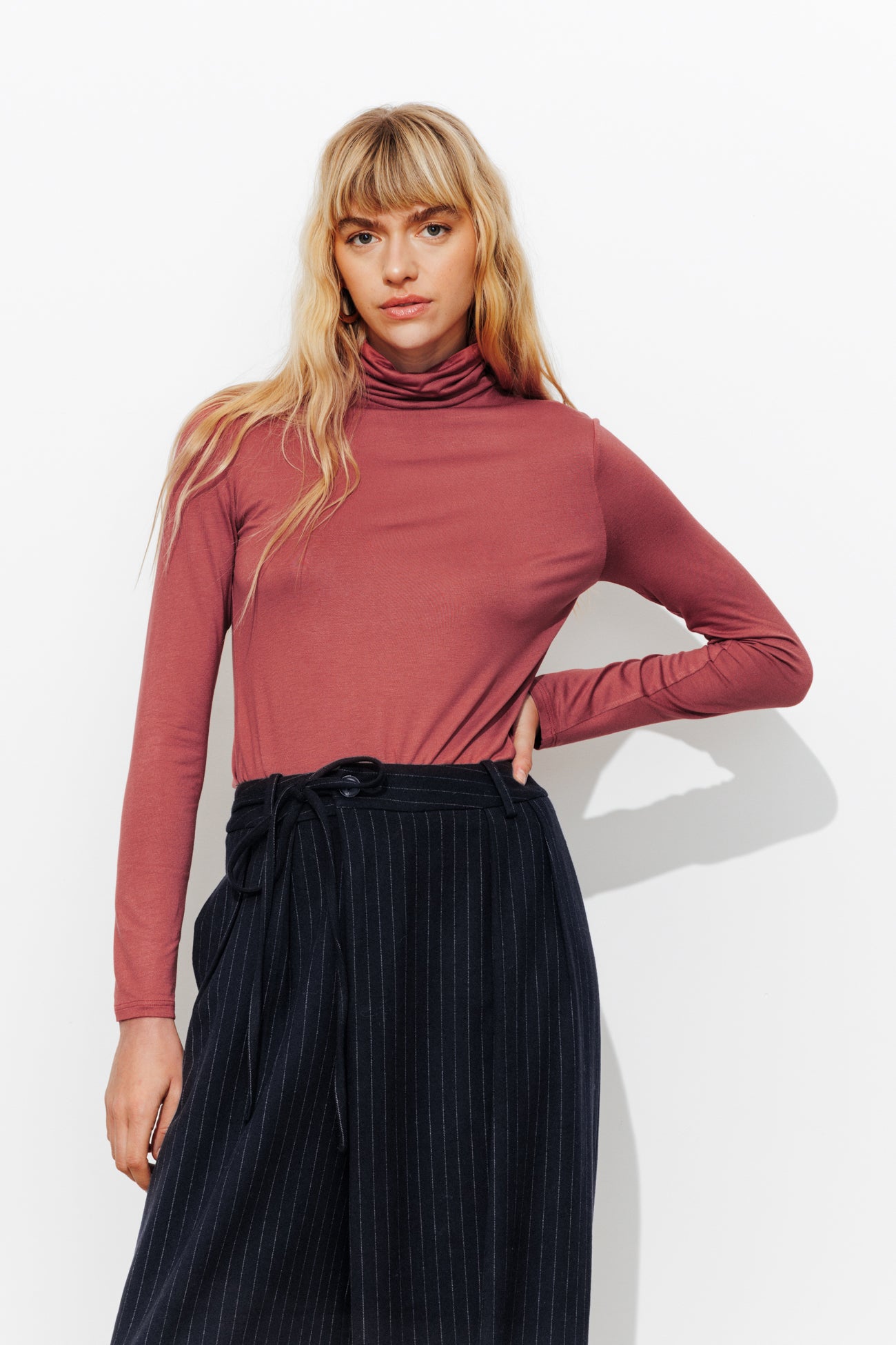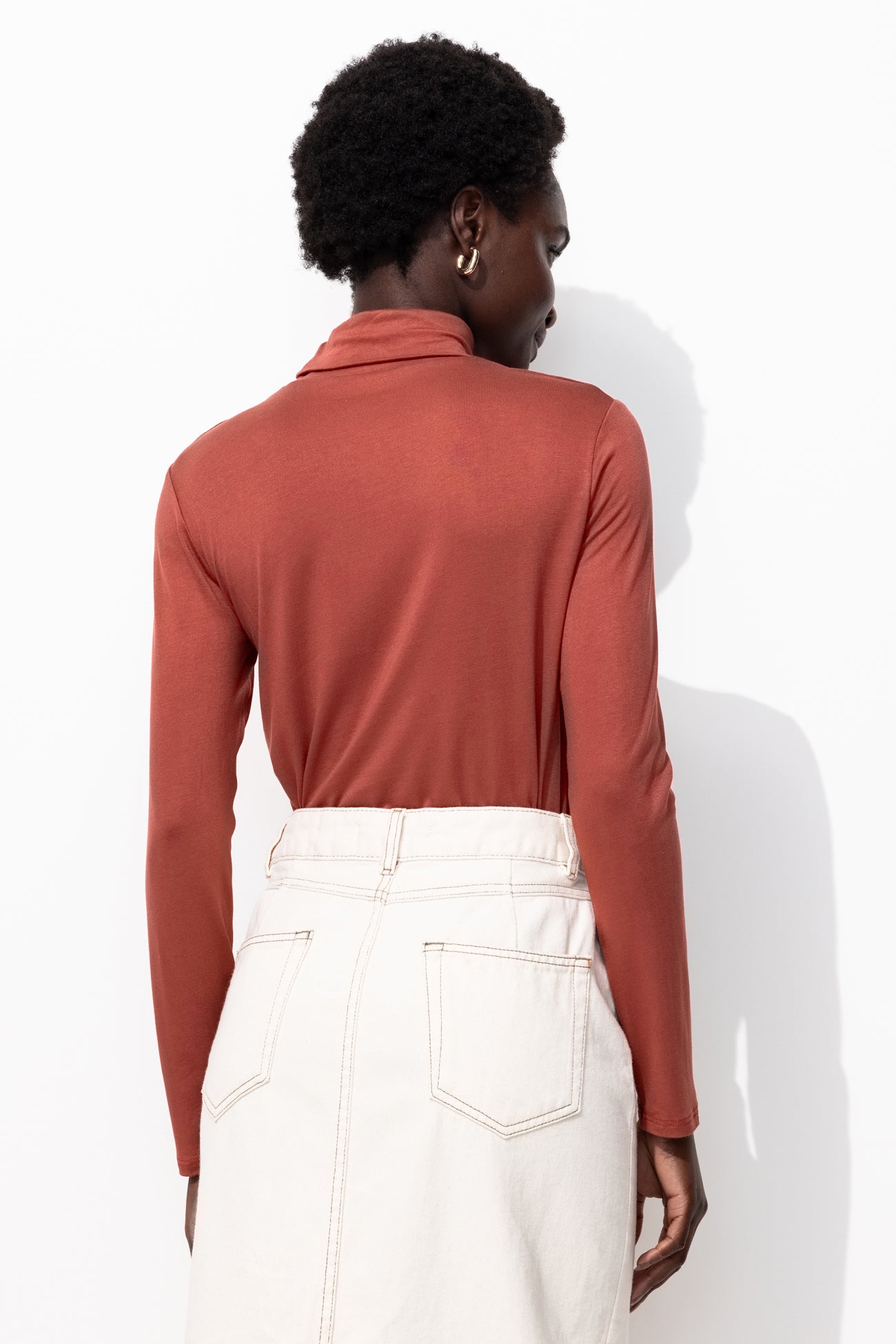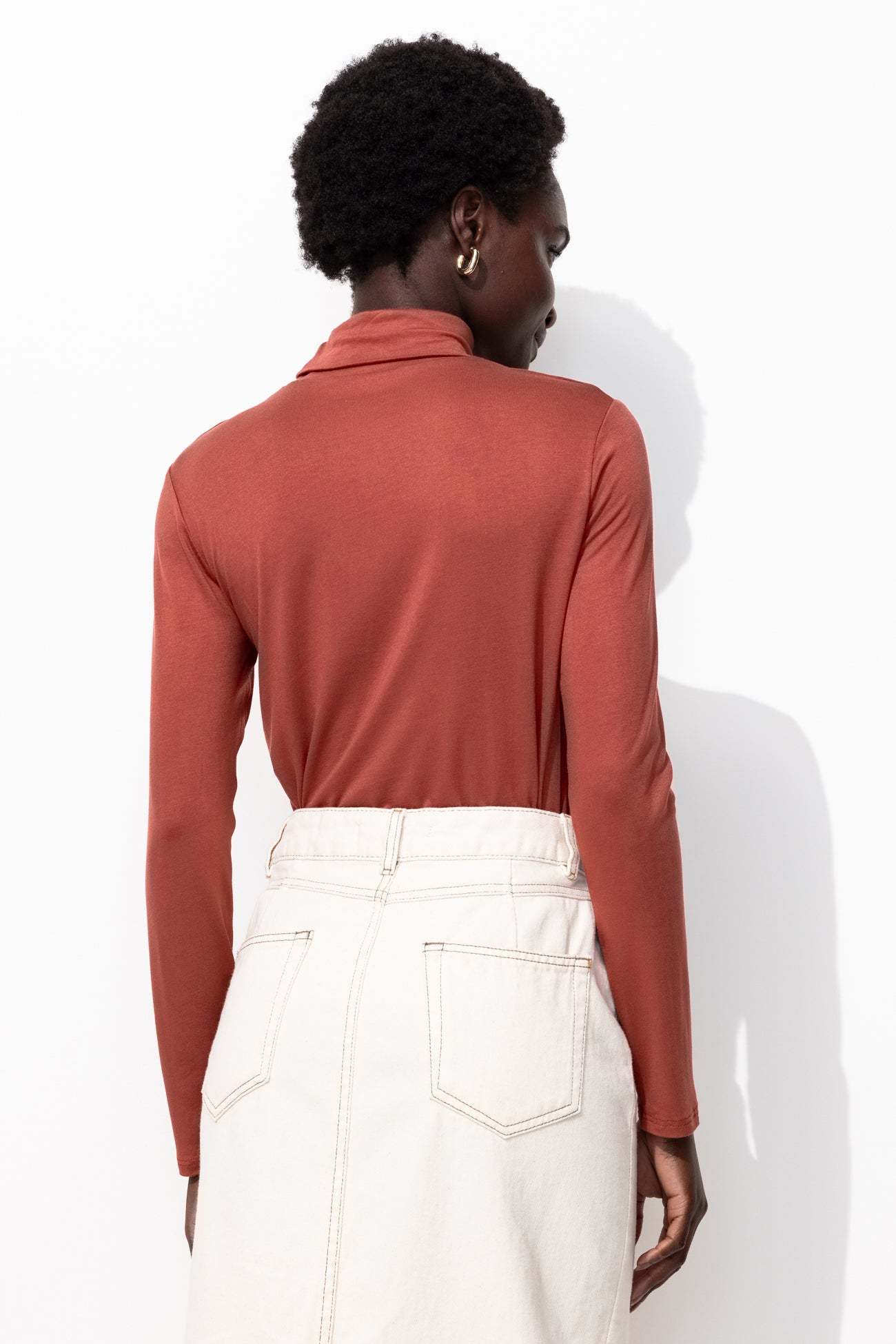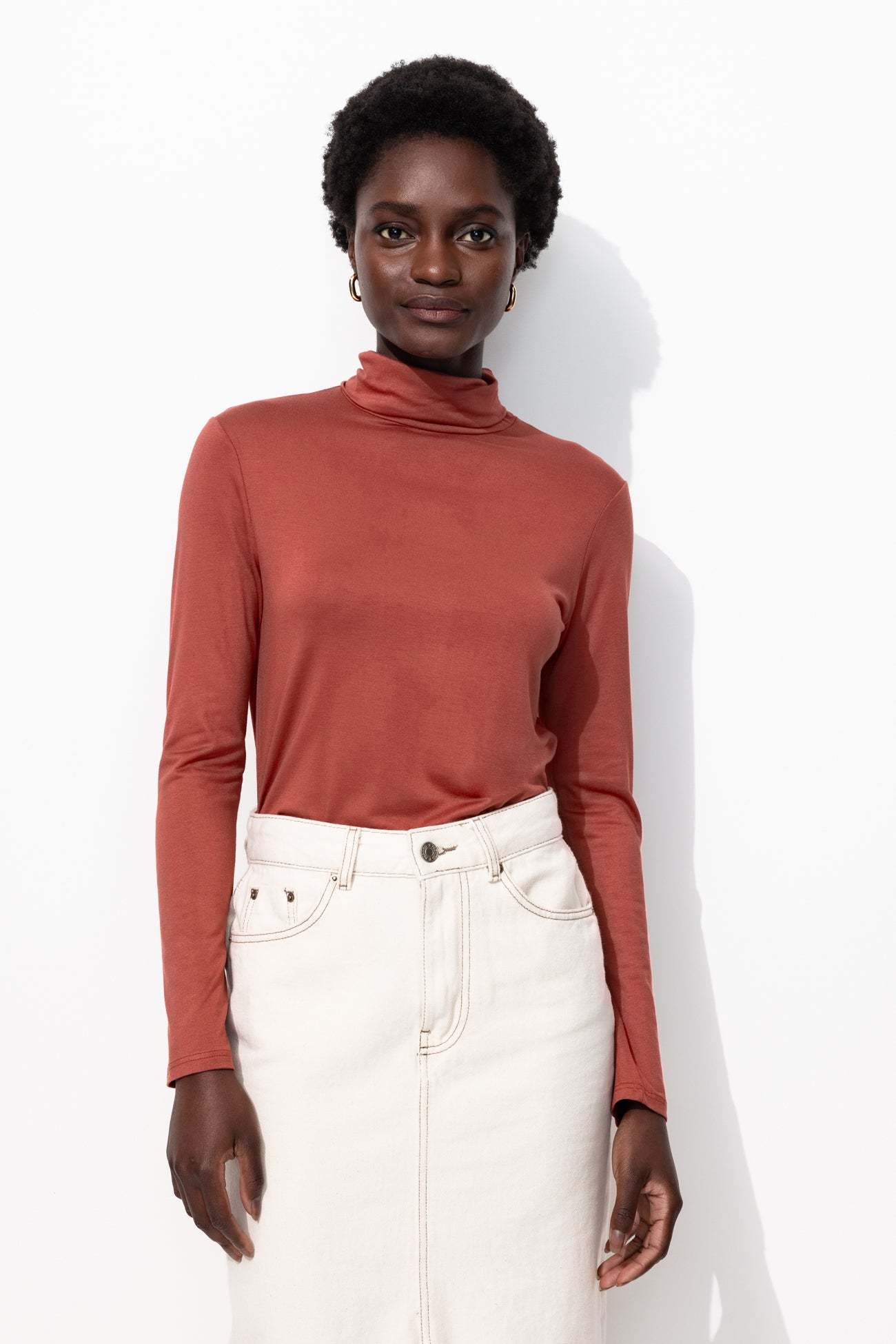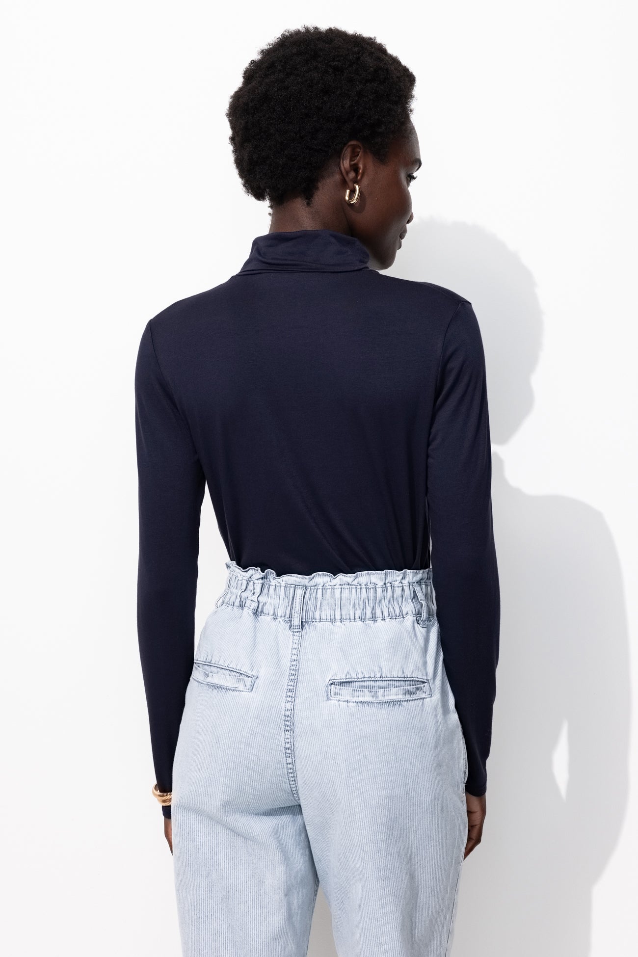 Bon basique, absolument indispensable dans un dressing ! Le sous-pull col roulé forme une série de duos faciles à imaginer : avec un blazer, un bomber, un cardigan Mademoiselle, un pull sans manches... Jersey doux et extensible, agréable à porter. Coupe près du corps. Manches longues. Base droite. Ce t-shirt femme contient de la viscose issue de pulpe de bois provenant de forêts gérées.