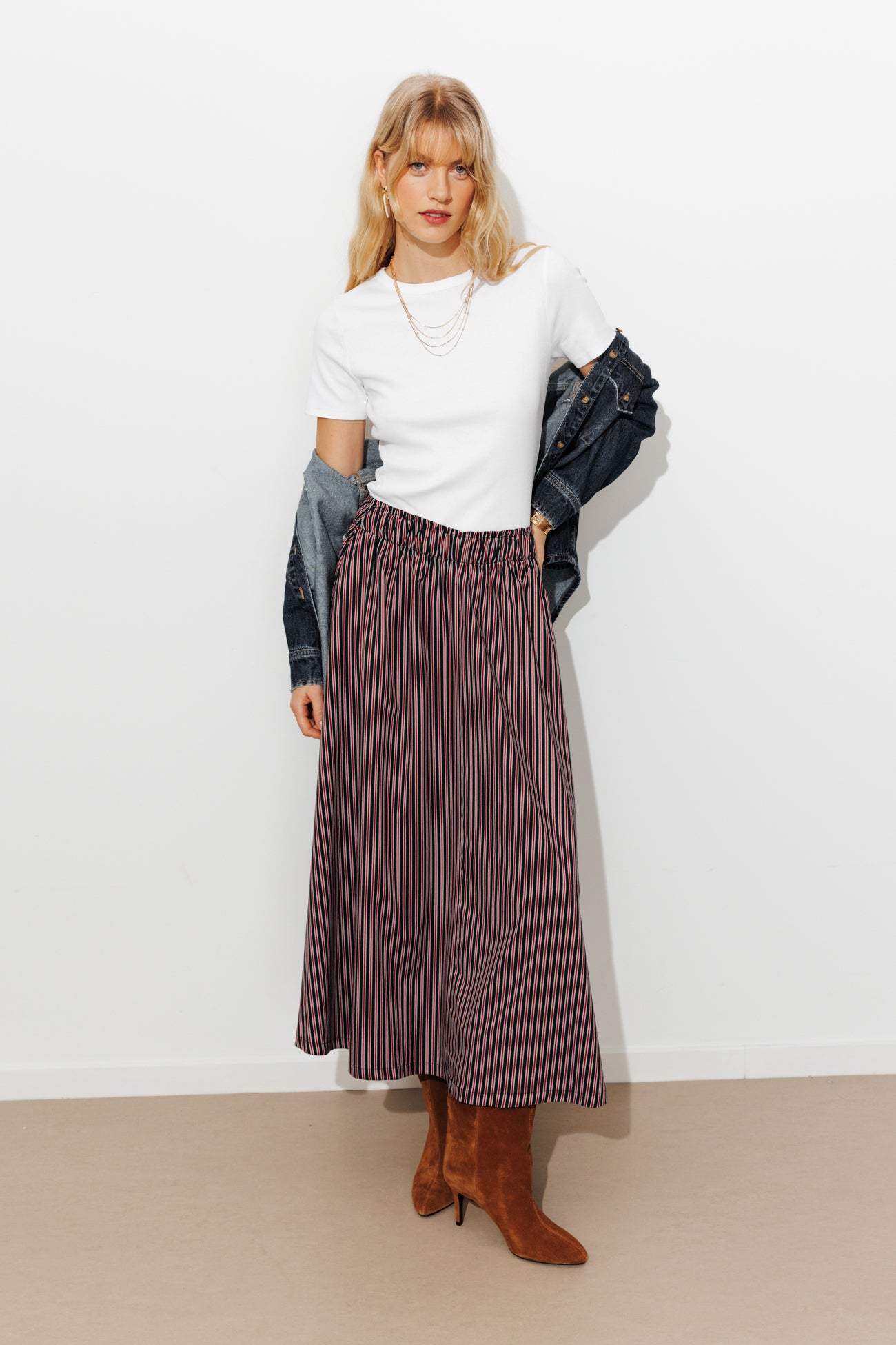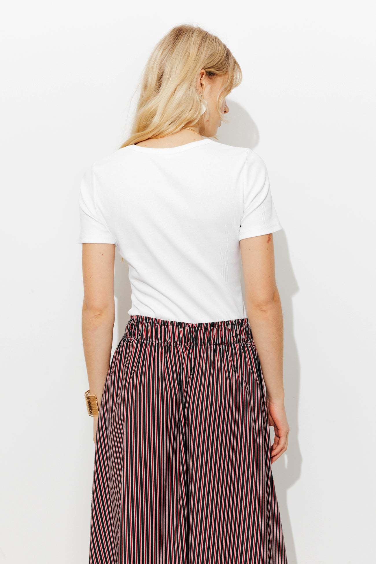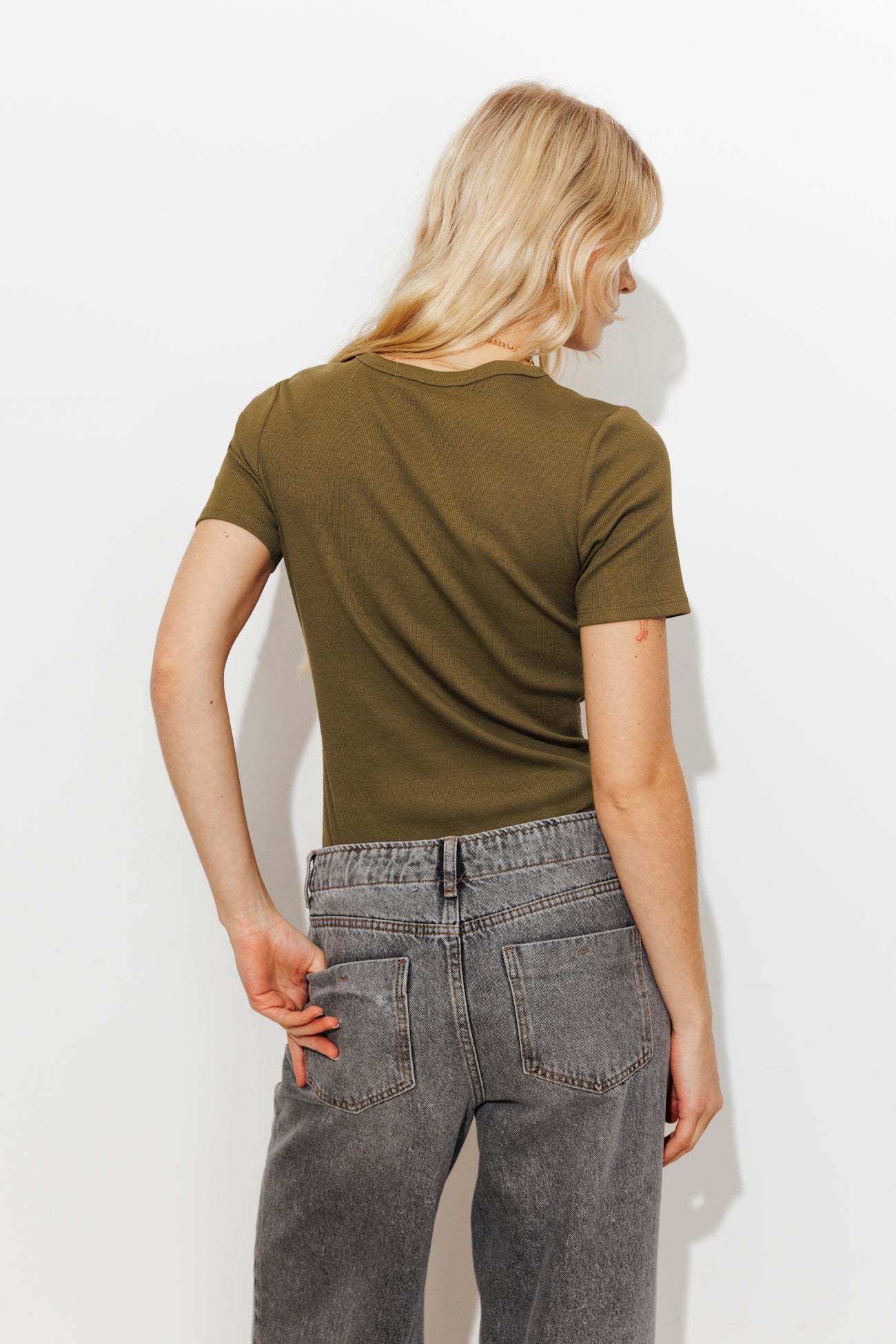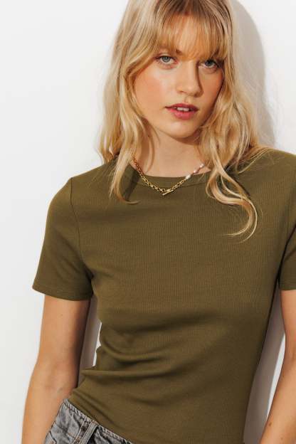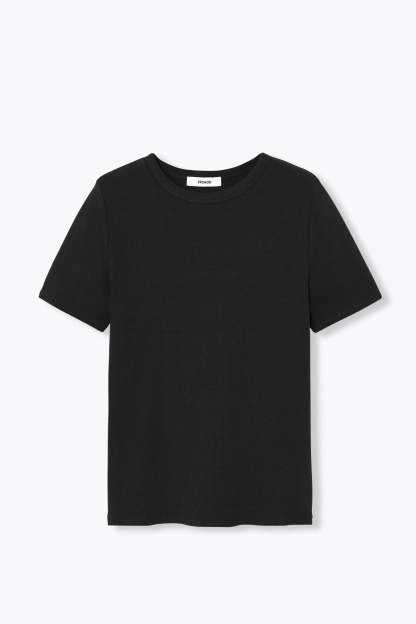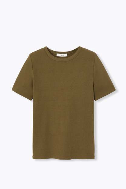 Dans la série des bons basiques... on demande le t-shirt en coton côtelé. Il est coupé près du corps. Et sait très bien passer d'une situation à une autre : voyage, vacances, sport et même soirée, porté sous une veste de tailleur. Col rond, bord côtelé. Manches courtes. Base droite. Contient du coton issu de l'agriculture biologique, cultivé sans pesticides, ni engrais chimiques, ni OGM.
