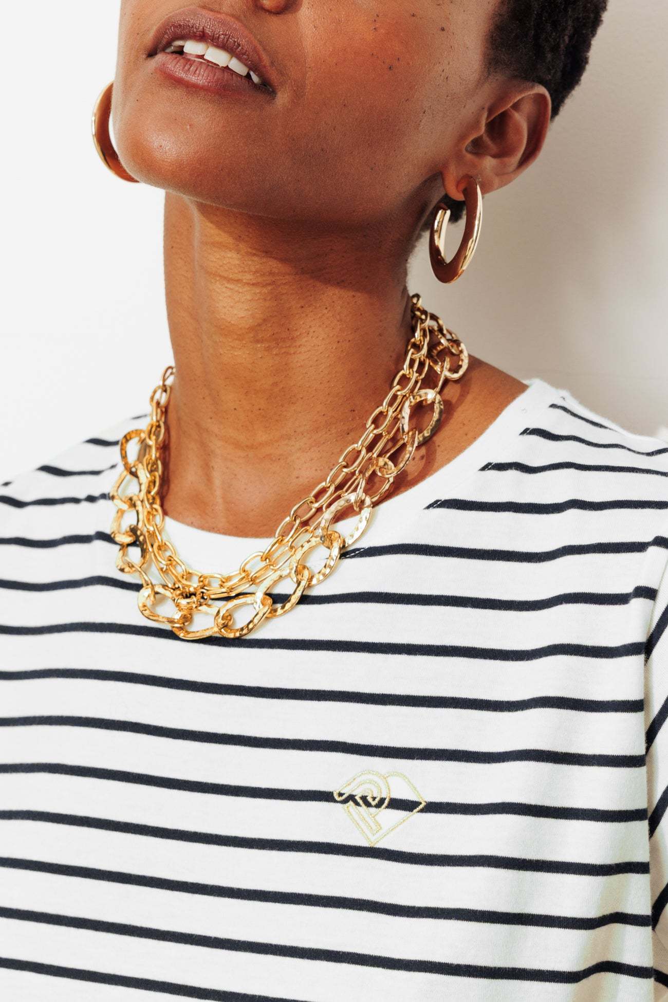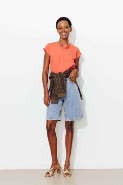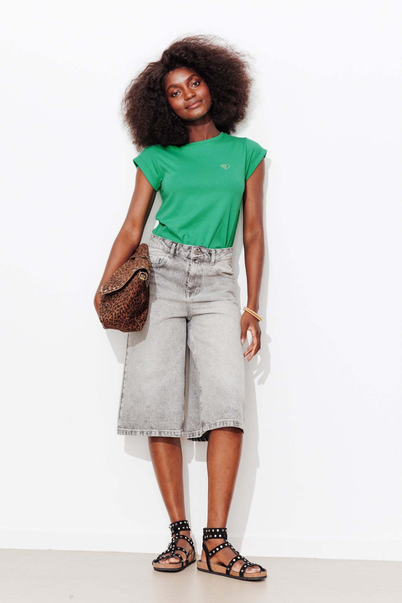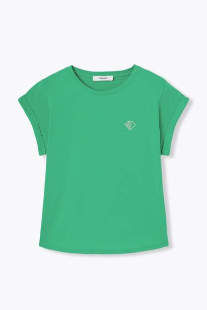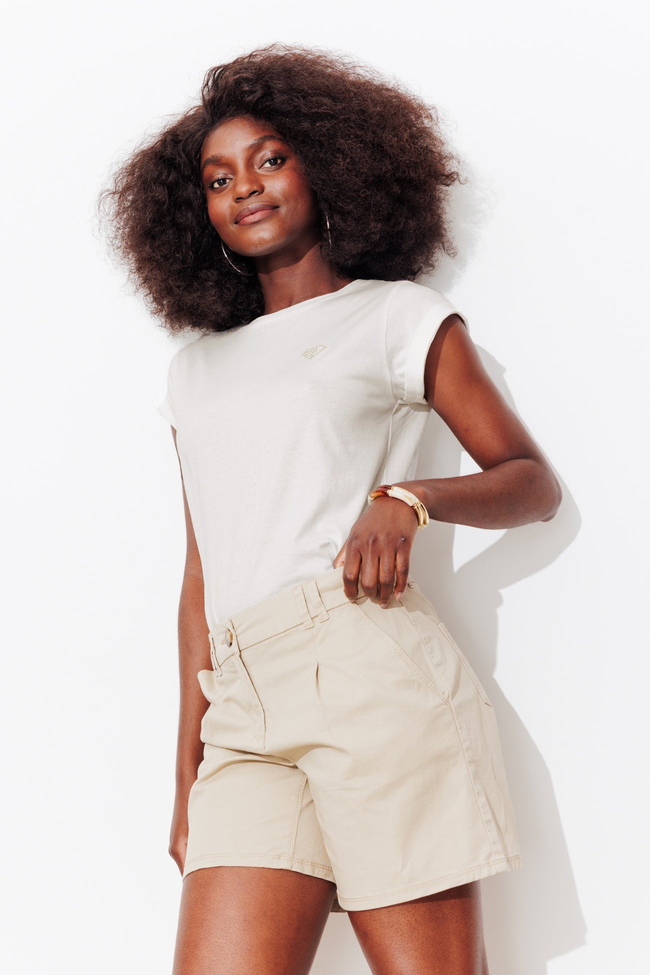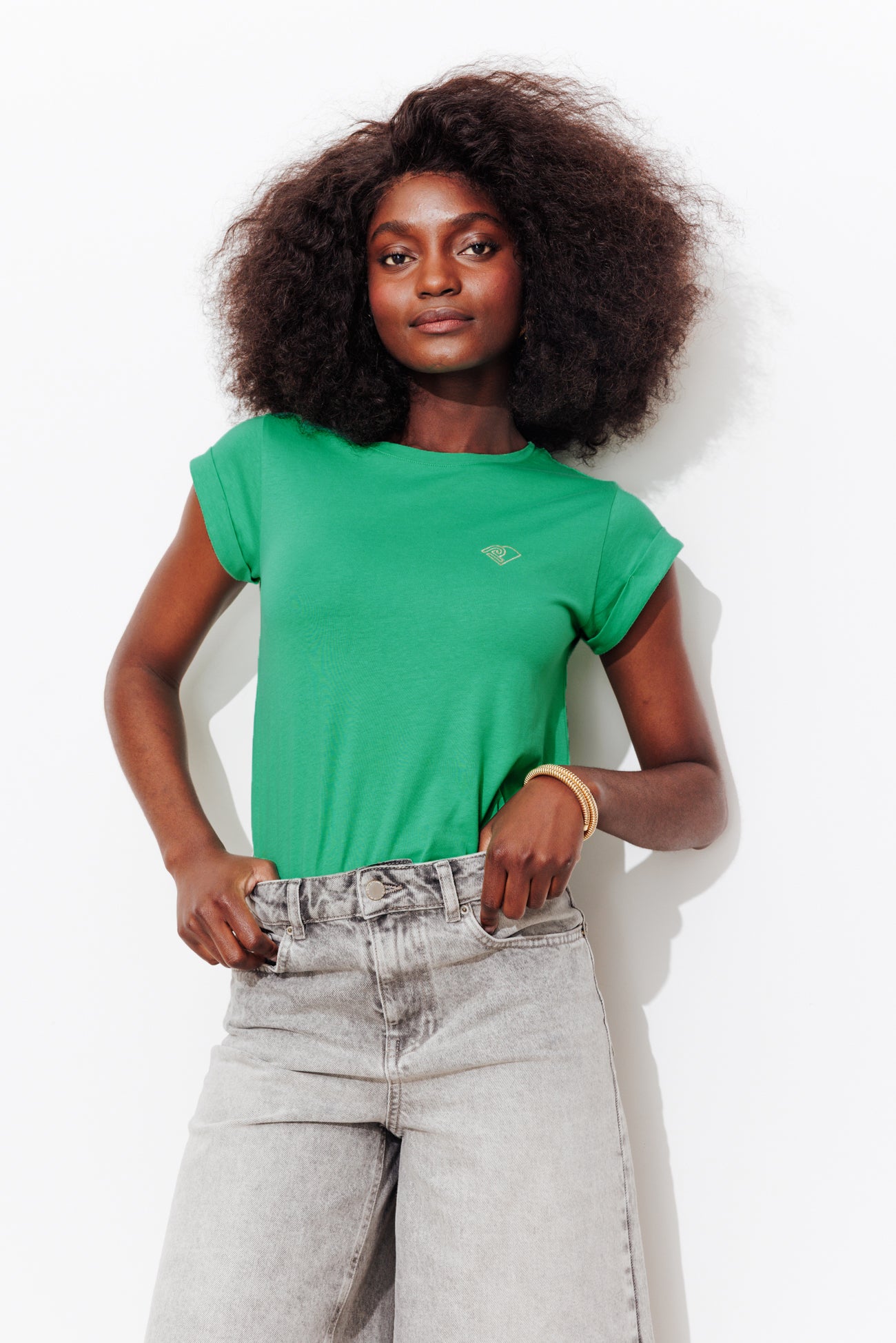 Pour affirmer votre amour pour Promod, portez fièrement ce t-shirt à logo brodé ! A collectionner ! Jersey de coton doux. Coupe droite. Motif brodé poitrine, dos uni. Col rond. Manches très courtes à revers piqués. Base légèrement arrondie. Ce t-shirt femme contient du coton issu de l'agriculture biologique, cultivé sans pesticides, ni engrais chimiques, ni OGM afin de préserver la biodiversité