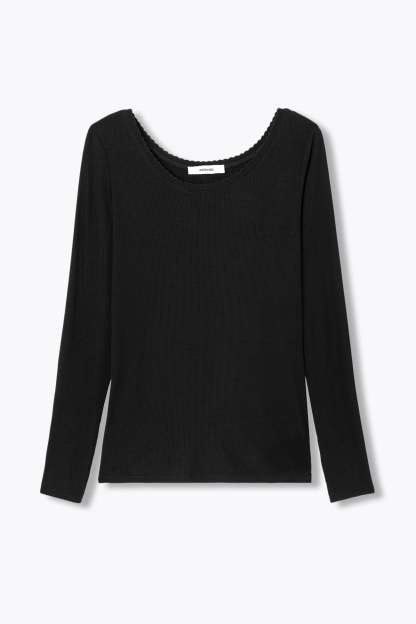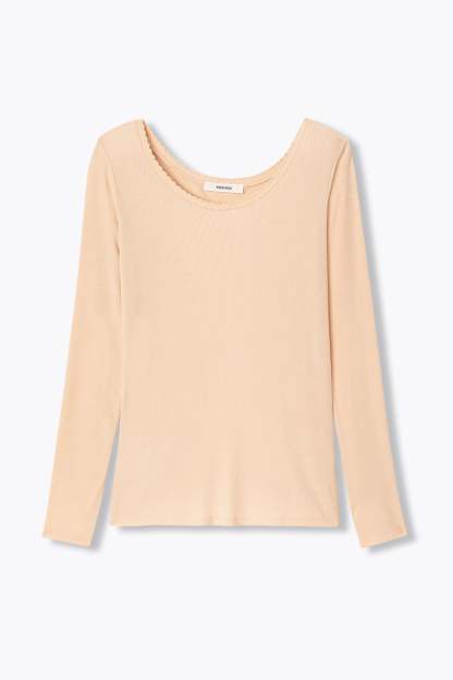 CHALEUREUSEMENT : c'est une matière douce et réconfortante en jersey côtelé léger ! Ce t-shirt manches longues protège du froid, retient la chaleur corporelle, laisse respirer la peau, ne se froisse pas et épouse les formes tout en souplesse. Coupe près du corps. Encolure arrondie dégagée. Finition picot. Ce top femme contient de la viscose issue de pulpe de bois provenant de forêts gérées.