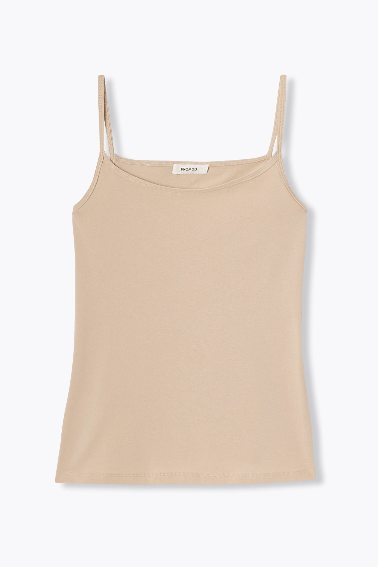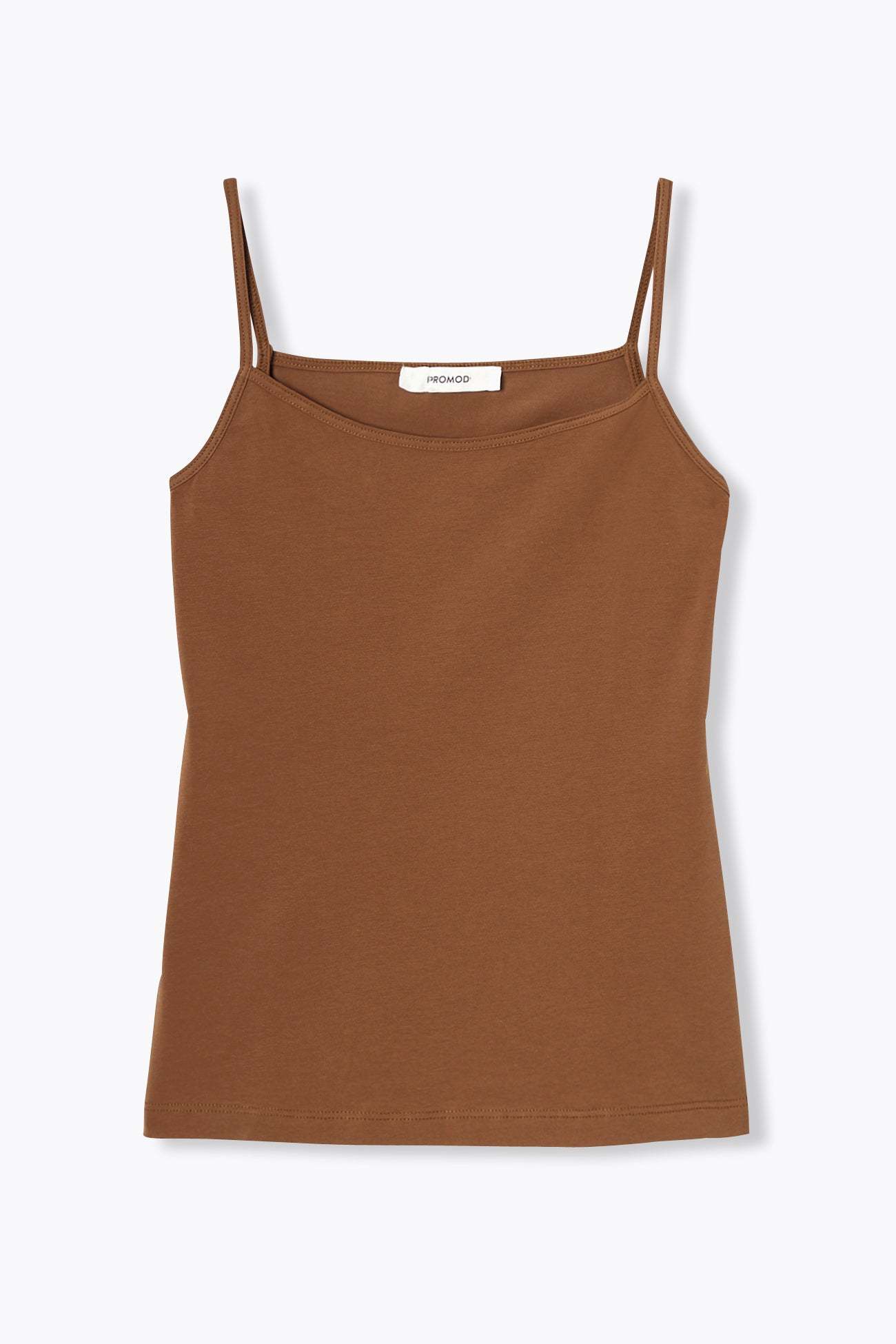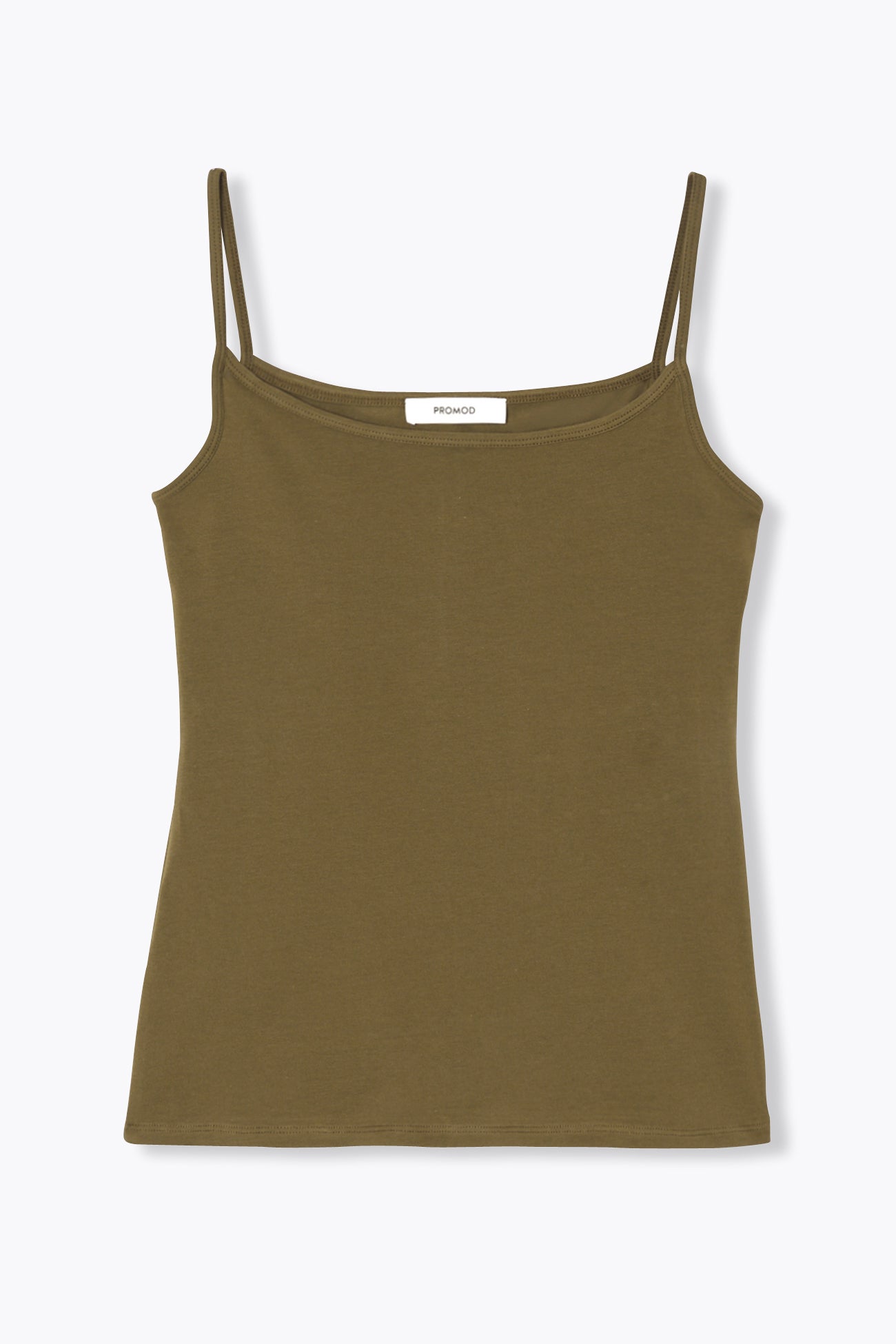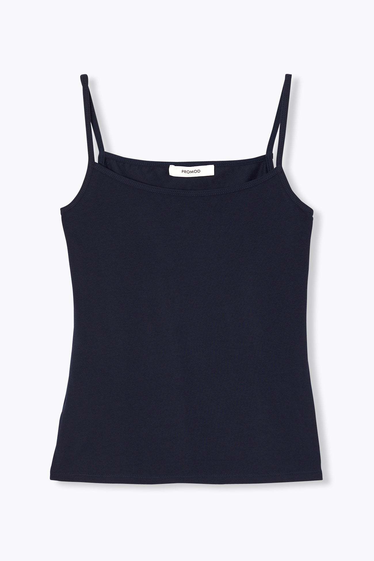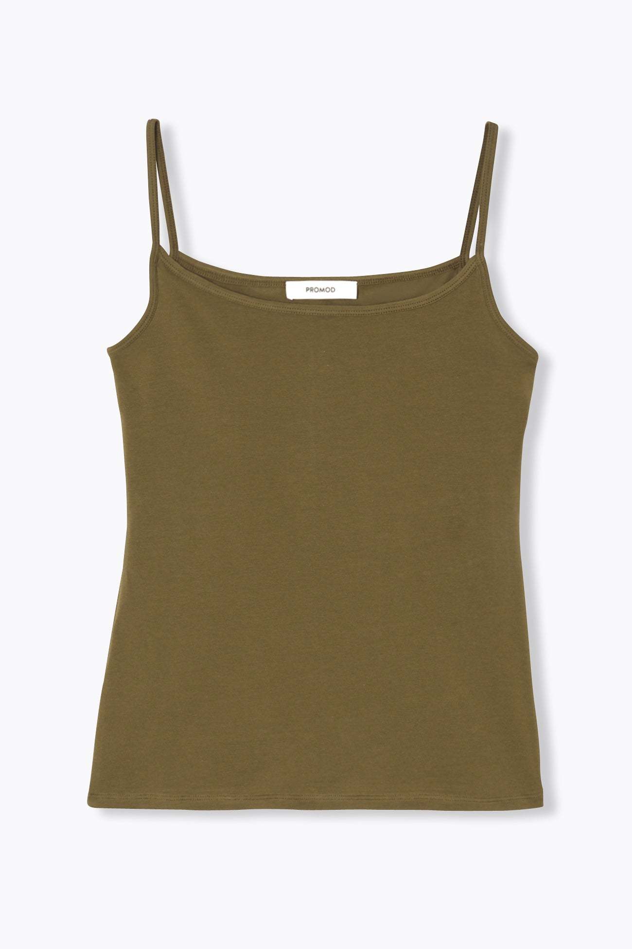 Must-have, toutes saisons confondues. A collectionner dans plusieurs coloris. Il complète un pull, un cardigan, un sweat. Il accompagne une veste ou sort en solo sous le soleil ! On l'aime aussi cocoon à la maison. Coupe ajustée. Fines bretelles. Encolure arrondie devant et dos. Base droite. Contient du coton issu de l'agriculture biologique, cultivé sans pesticides, ni engrais chimiques, ni OGM.