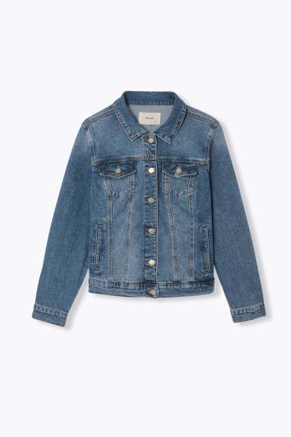 Les puristes du jean sont formelles : le blouson en denim est un must-have, symbole d’authenticité et de durabilité, toutes générations et saisons confondues ! Coupe ajustée légèrement extensible. Col à revers. Ouverture par boutons clou. 2 poches poitrine, 2 poches devant. Manches longues, poignets boutonnés. Base droite. Surpiqûres contrastées. Cette veste femme contient du coton recyclé.
